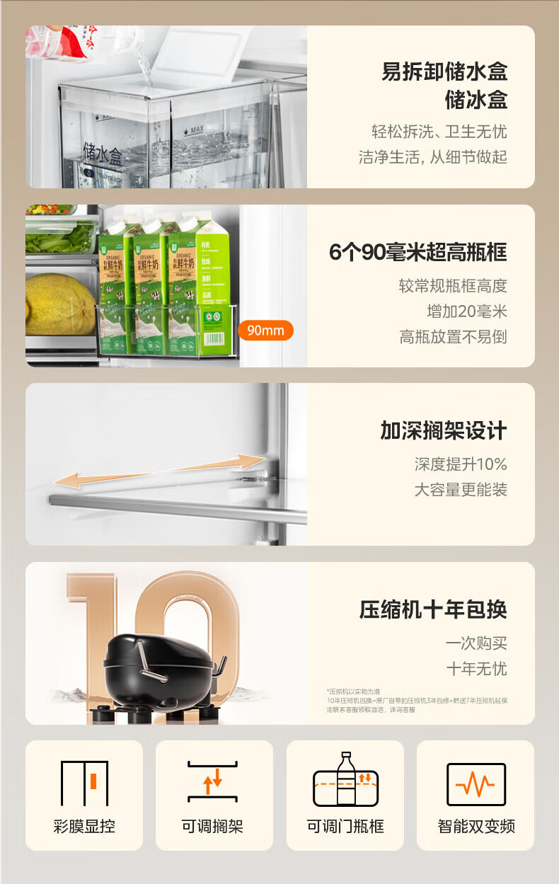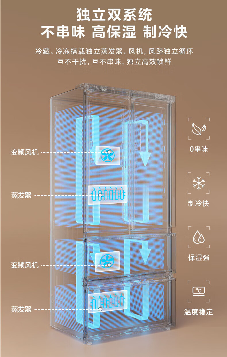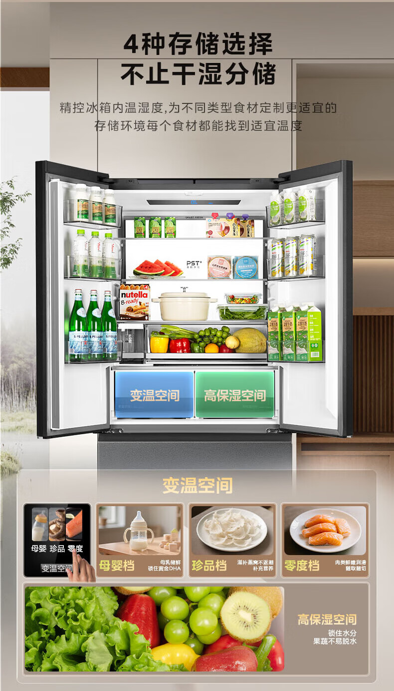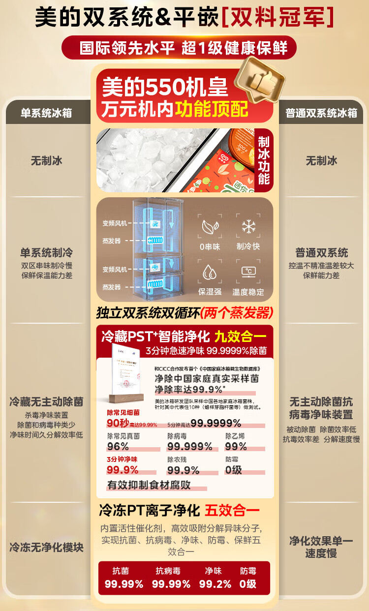 美的(Midea)冰箱M60系列 550机皇法式冰箱 多门四开门纯平全嵌双系统双循环自动制冰 一体机大容量一级能效 双系统|制冰除菌|零嵌机皇-曦云白