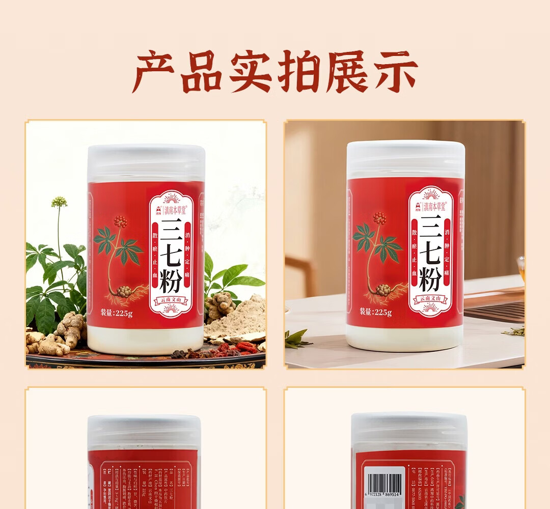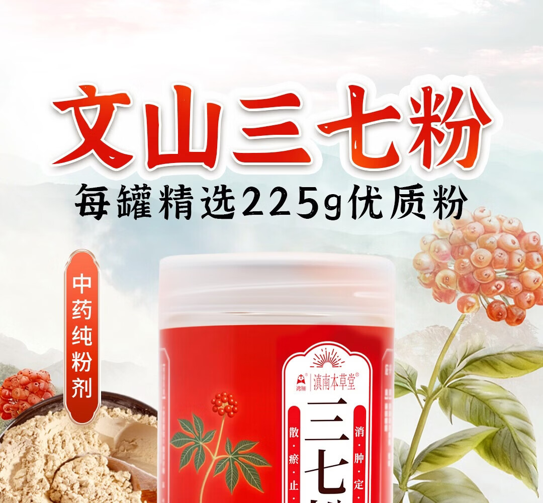 鸿翔三七粉地道药材 中药饮片 一心堂 滇南本草堂 塑瓶225g 云南文山 散瘀止血 消肿定痛 1罐【中药饮片、散瘀止血、消肿定痛、225g