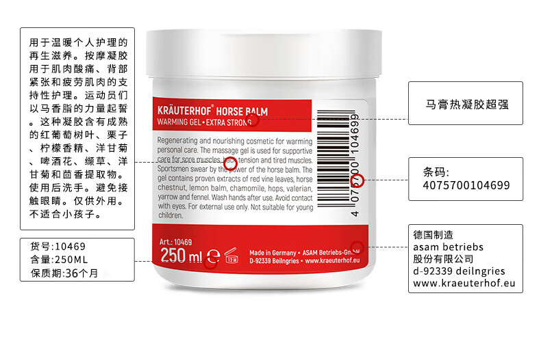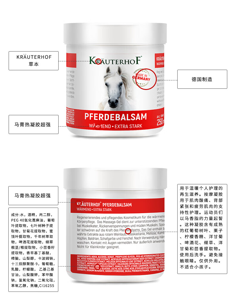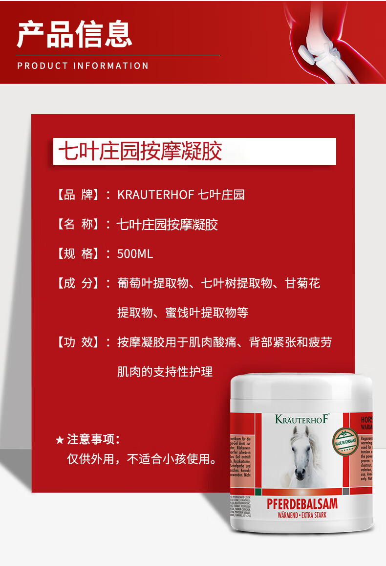 Krauterhof德国马膏原装进口七叶庄园按摩凝胶马栗疏通乐活经络精油膝关节膏 修护升级版 500ml