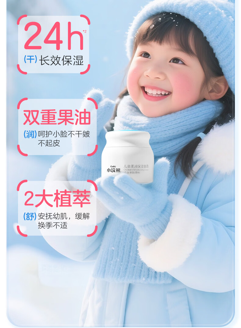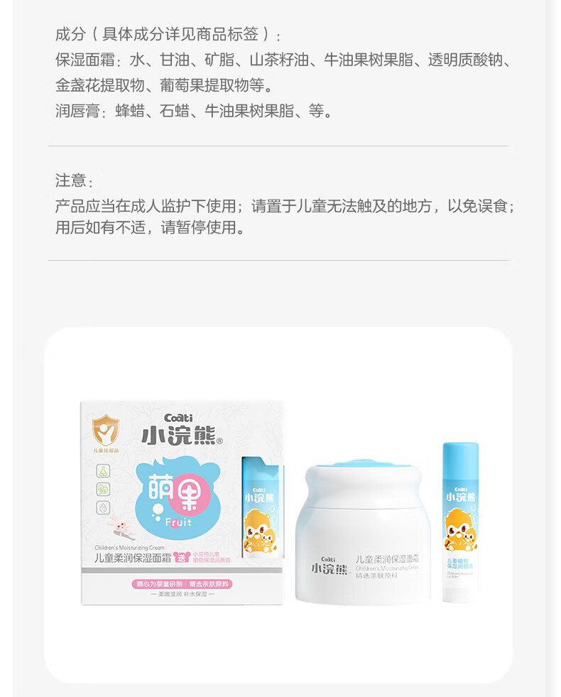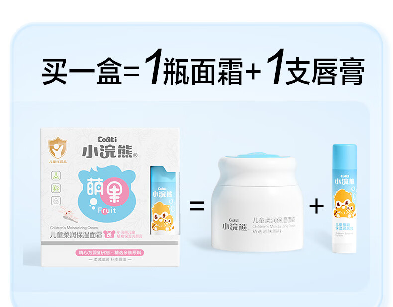 小浣熊儿童保湿霜30g儿童面霜润护唇膏护手霜套装宝宝润肤乳 儿童保湿霜30g+唇膏2.5g