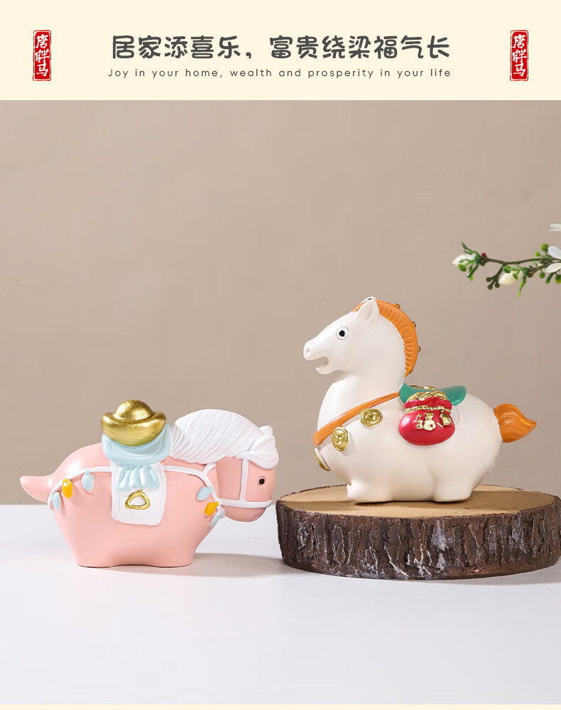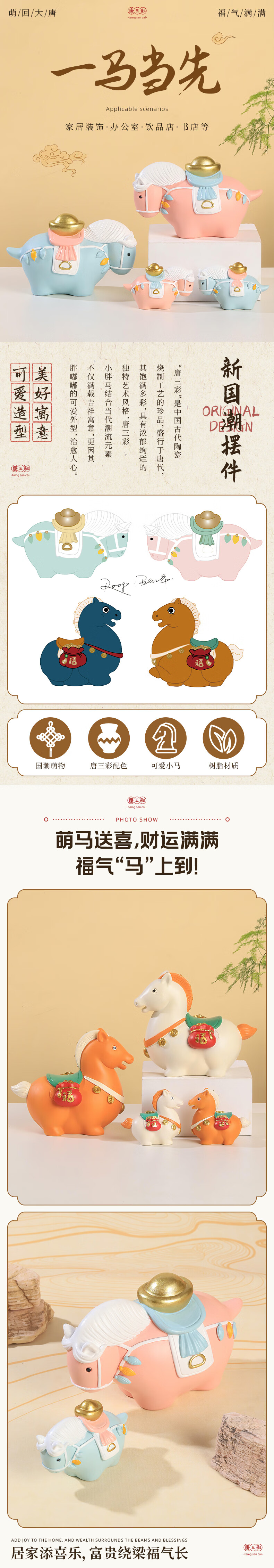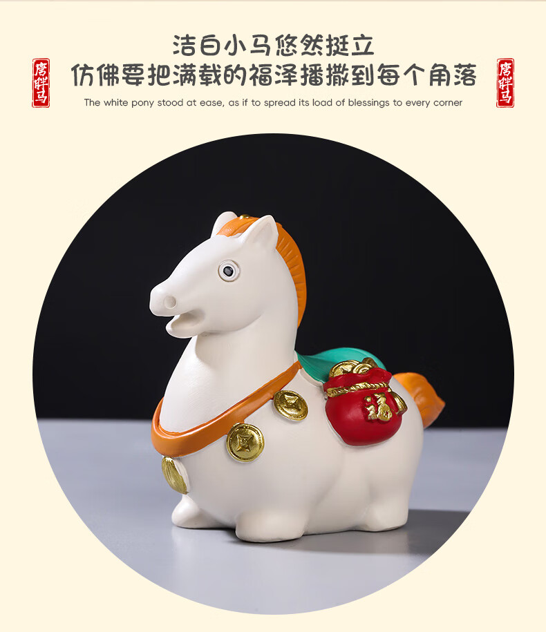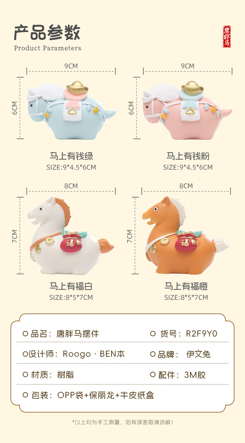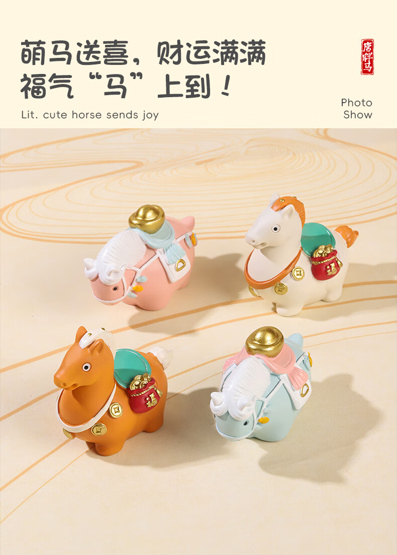 伊文兔(THE RABBIT IVEN)唐胖马摆件可爱生肖马摆件办公室小马摆件马年文创伴手礼新年礼物 神马好运摆件全套4个-送礼袋