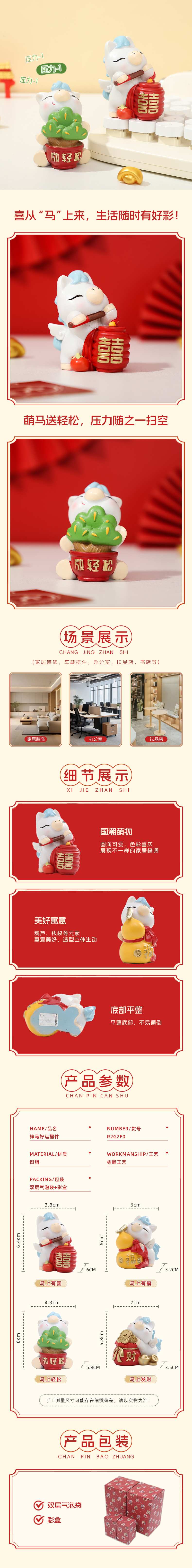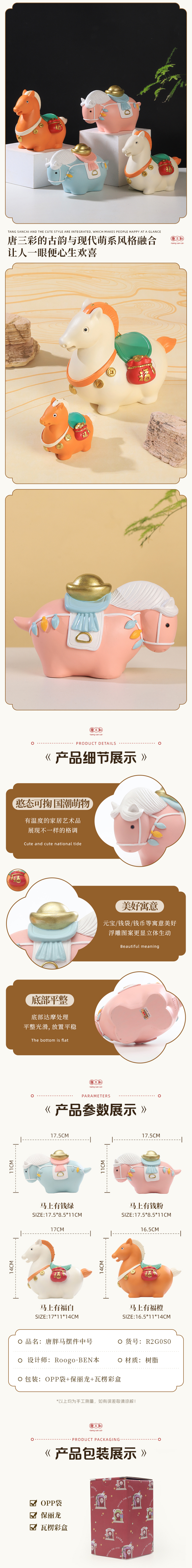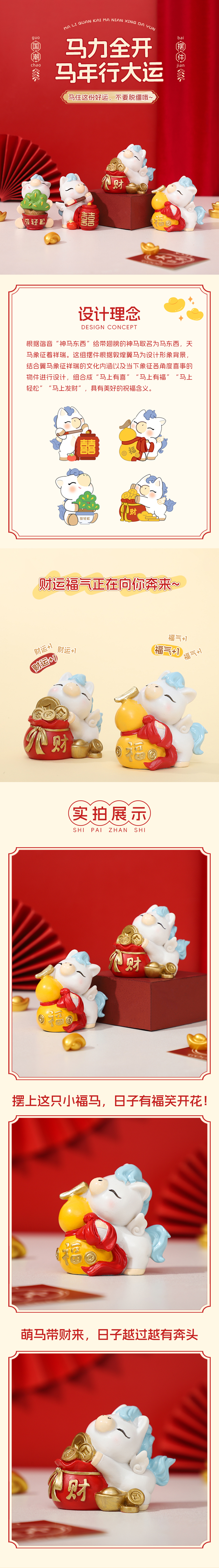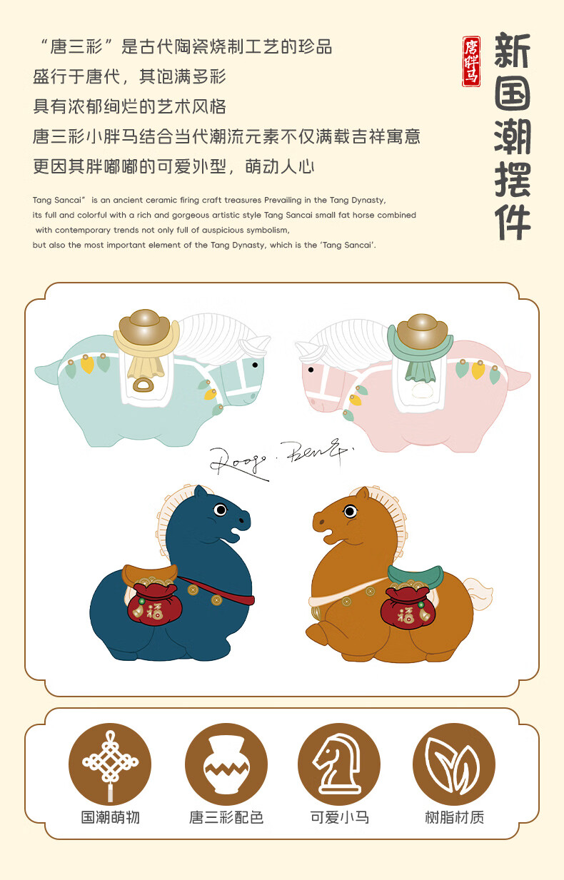 伊文兔(THE RABBIT IVEN)唐胖马摆件可爱生肖马摆件办公室小马摆件马年文创伴手礼新年礼物 神马好运摆件全套4个-送礼袋