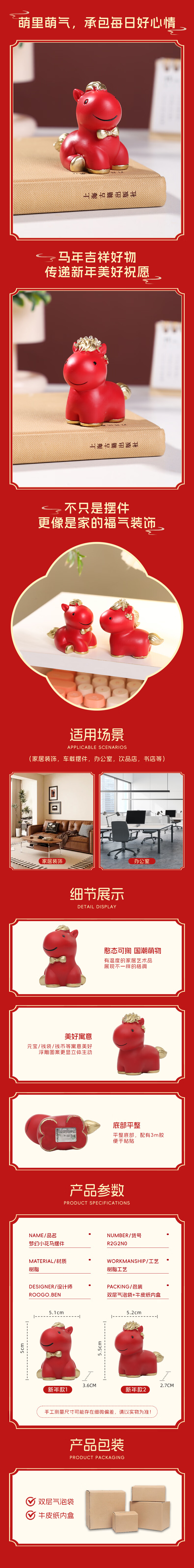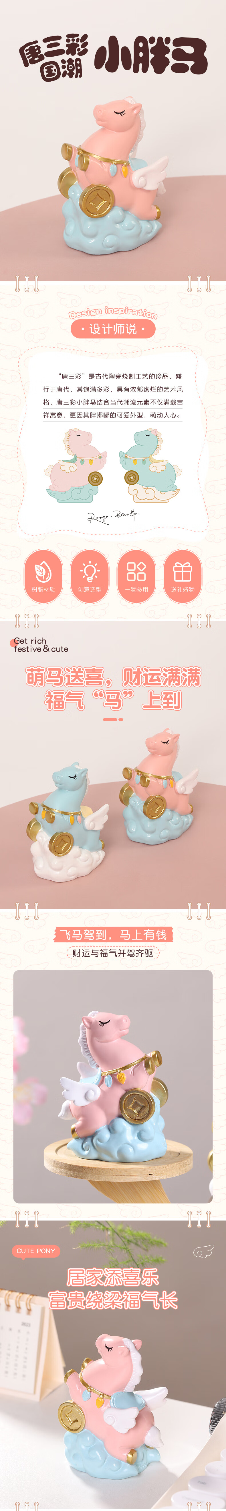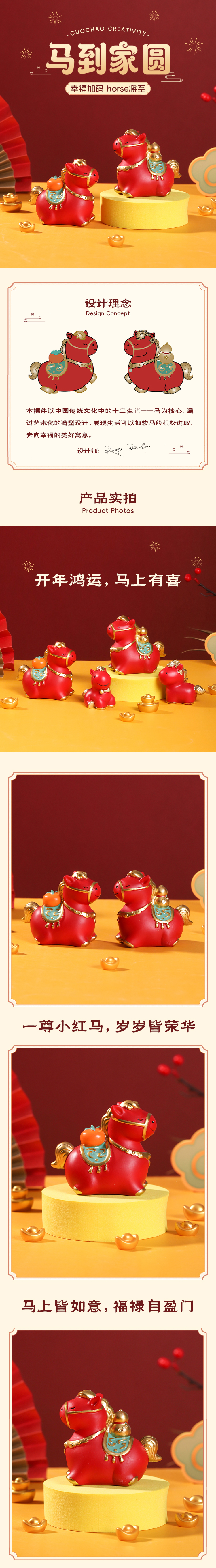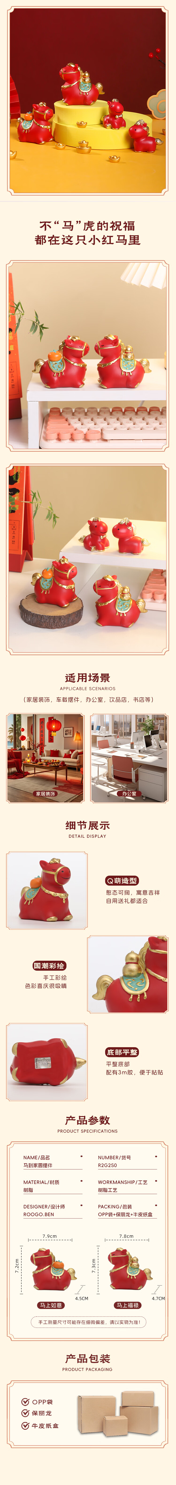 伊文兔(THE RABBIT IVEN)唐胖马摆件可爱生肖马摆件办公室小马摆件马年文创伴手礼新年礼物 神马好运摆件全套4个-送礼袋