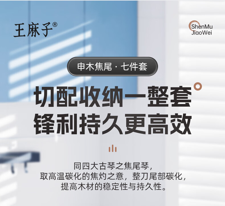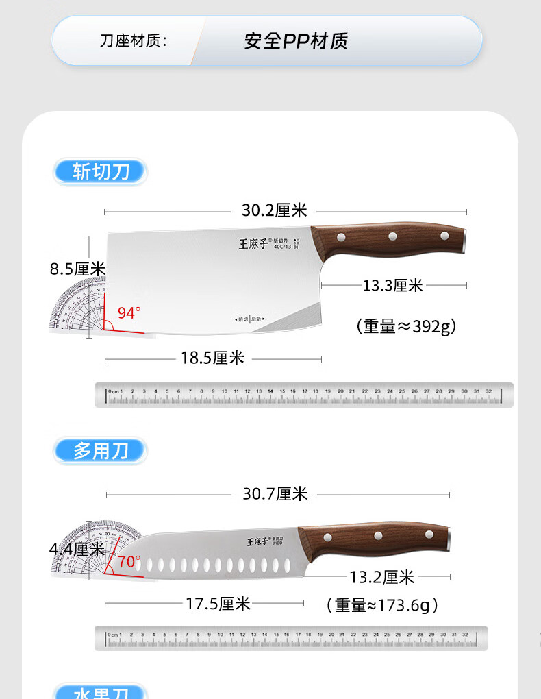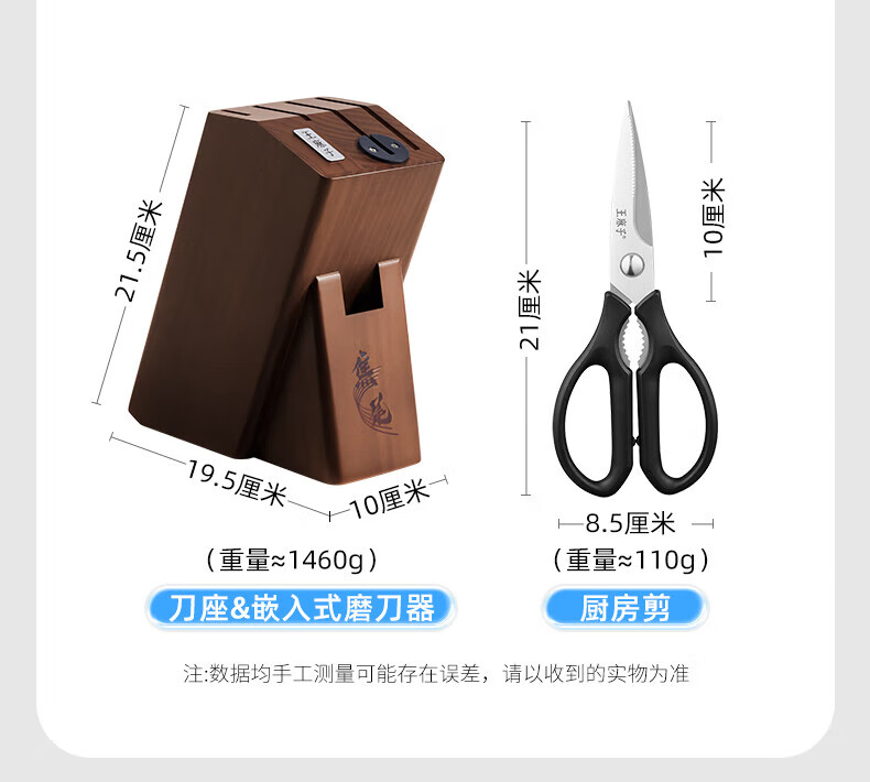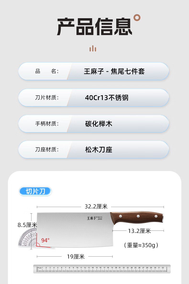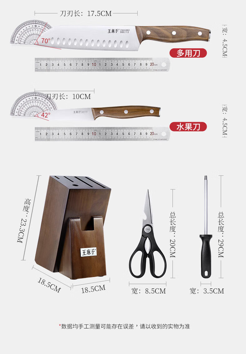 王麻子刀具全套 菜刀家用厨具菜板切菜刀水果刀剪刀厨房刀具套装 【40Cr钢】升级款焦尾 7件套