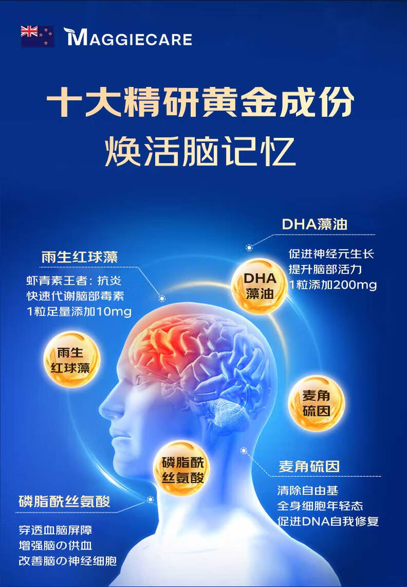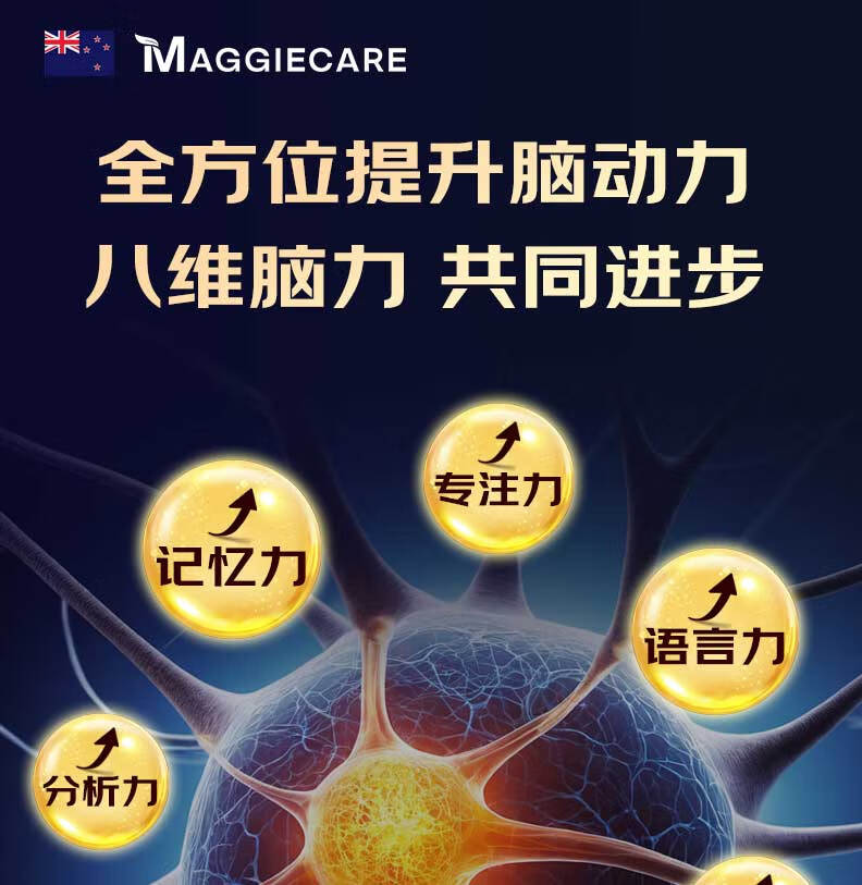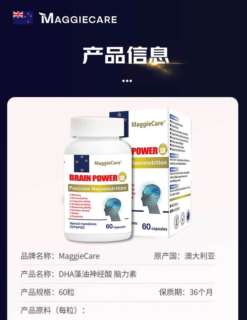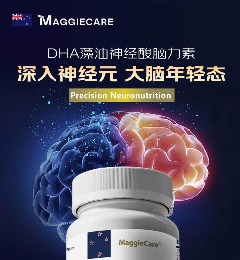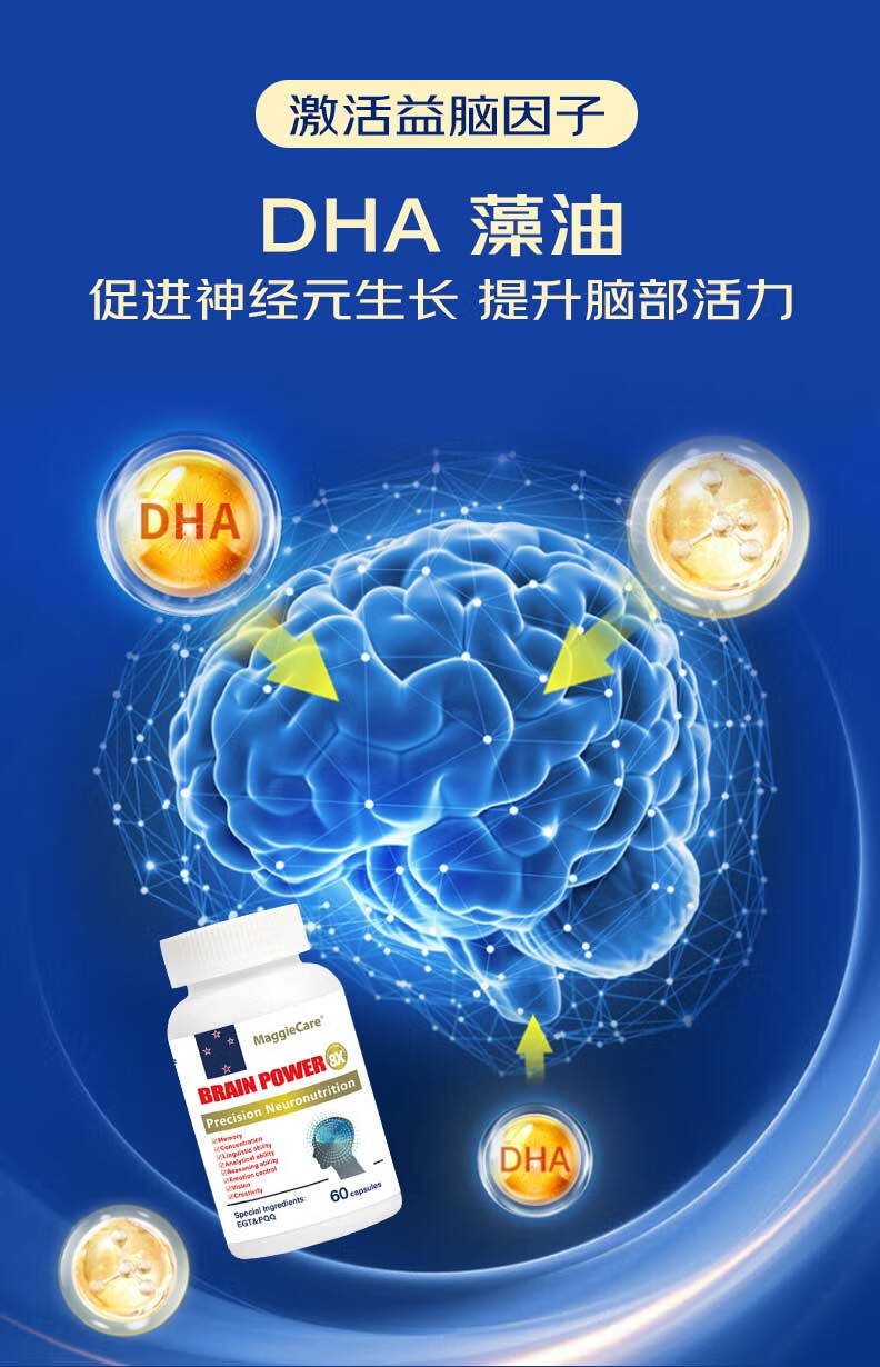 MaggieCareDHA藻油神经酸PQQ补脑增强记忆脑黄金学霸素澳洲进口健脑保健品 单瓶装60粒