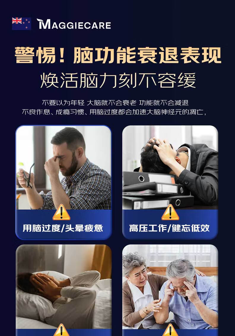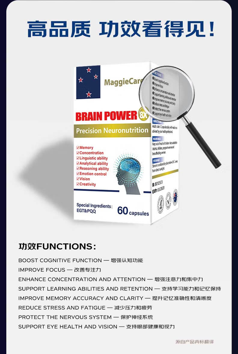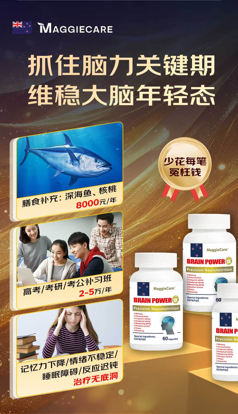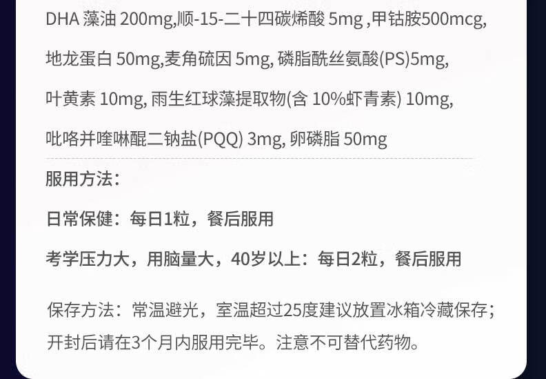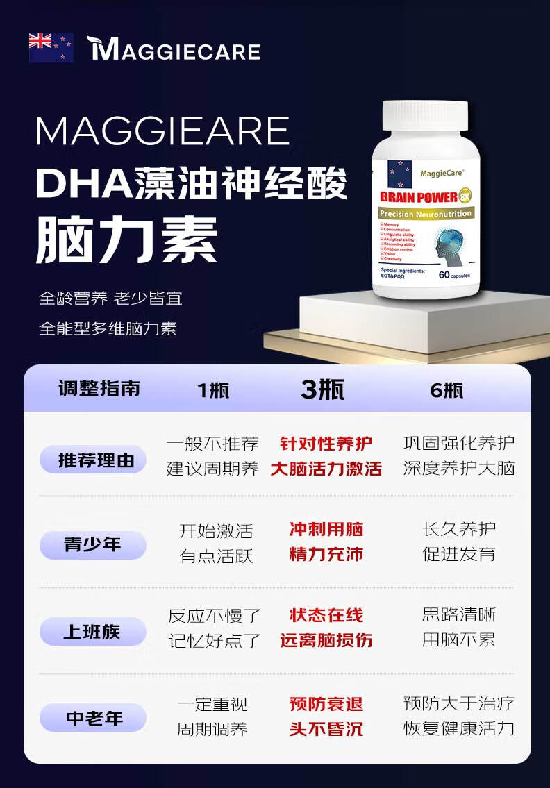 MaggieCareDHA藻油神经酸PQQ补脑增强记忆脑黄金学霸素澳洲进口健脑保健品 单瓶装60粒