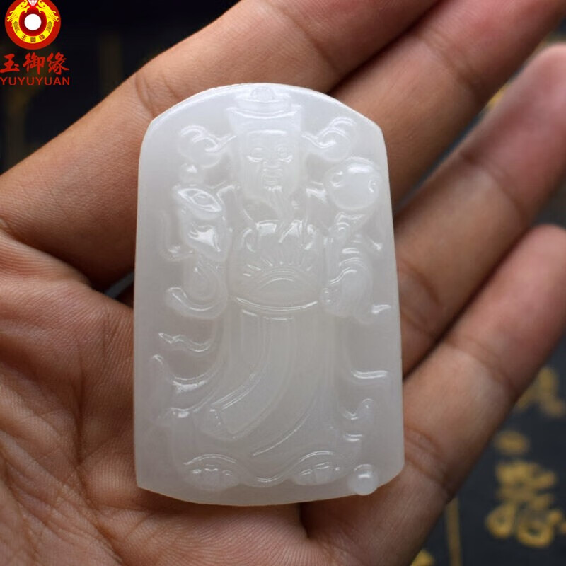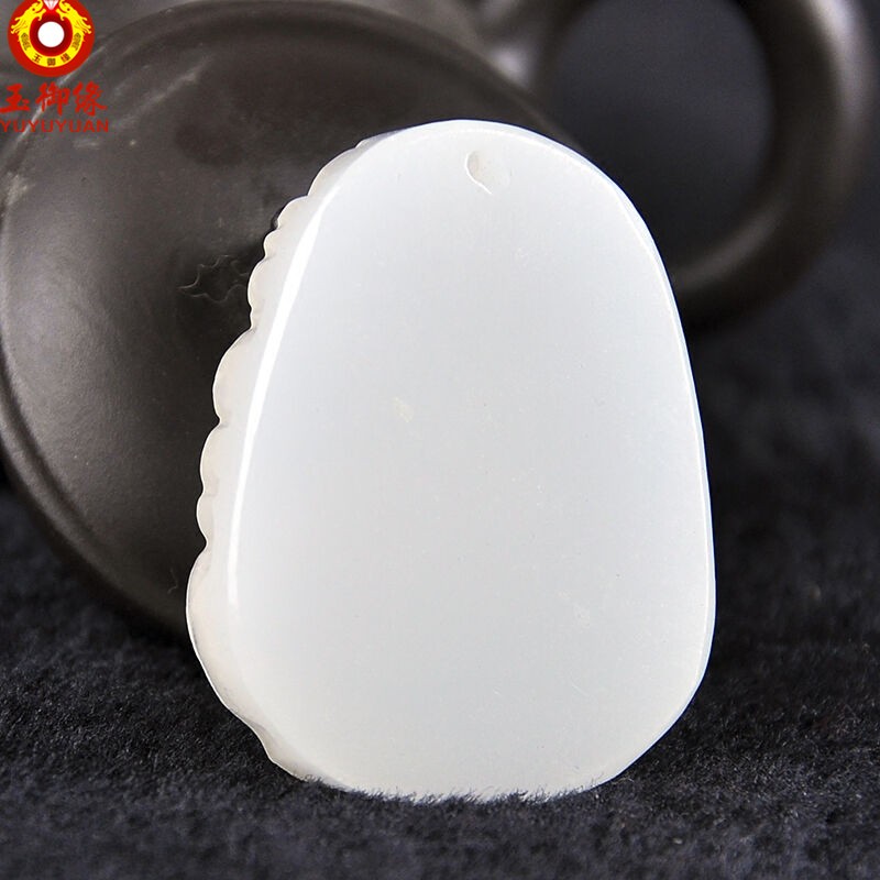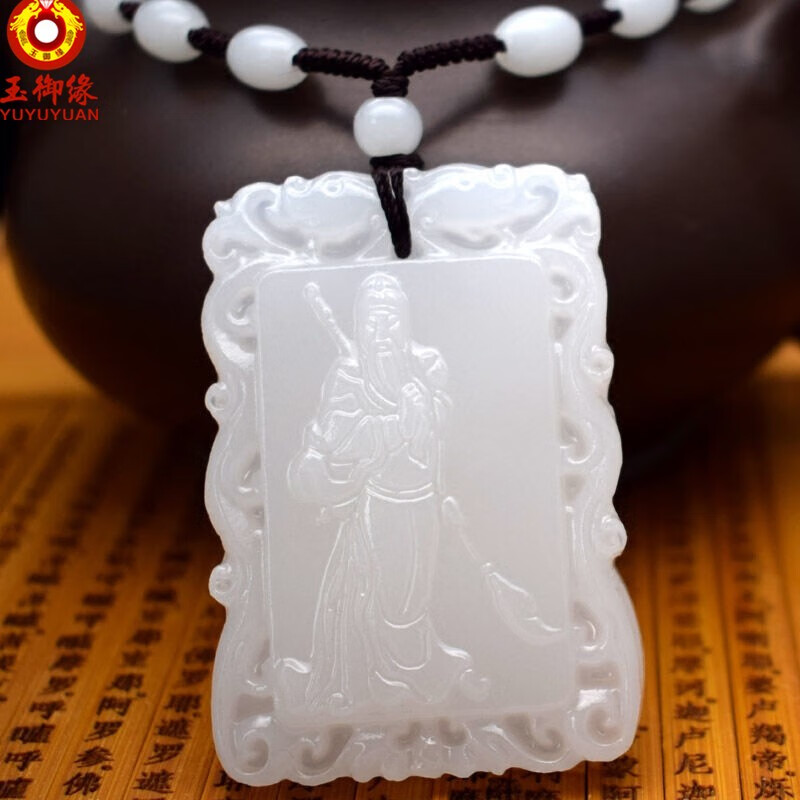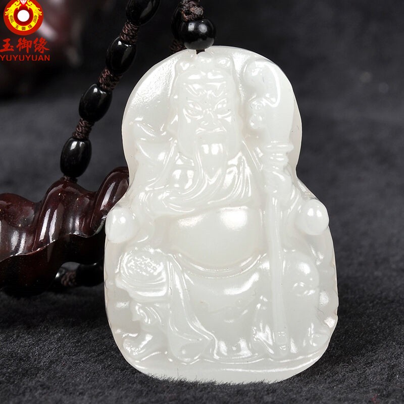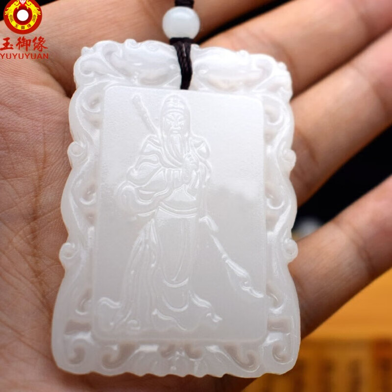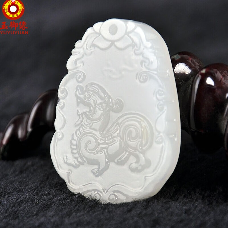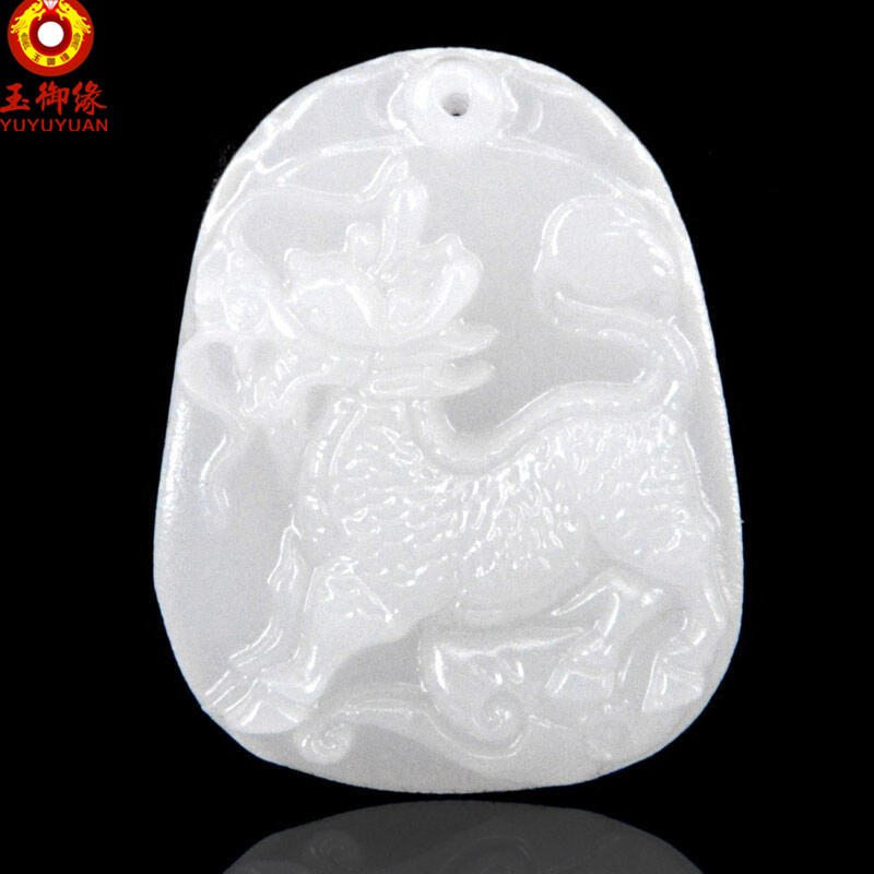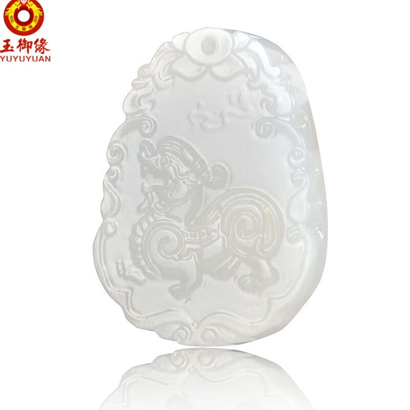 玉御缘 白玉玉石麒麟吊坠男款麒麟挂件玉牌玉坠玉佩送证书 免费刻字 武财神吊坠