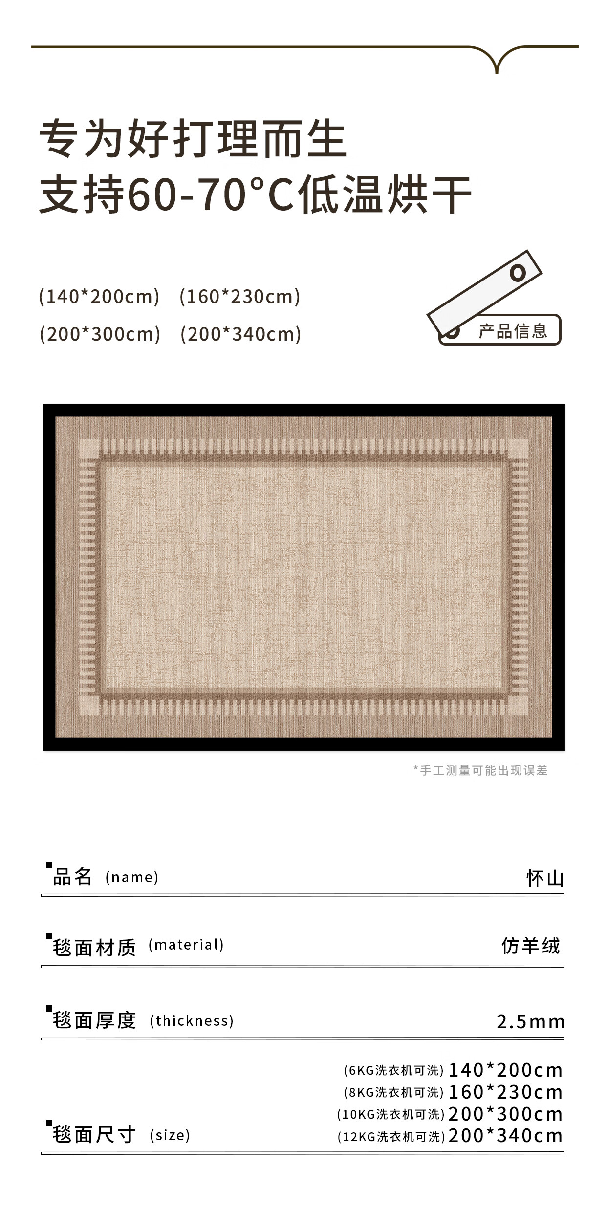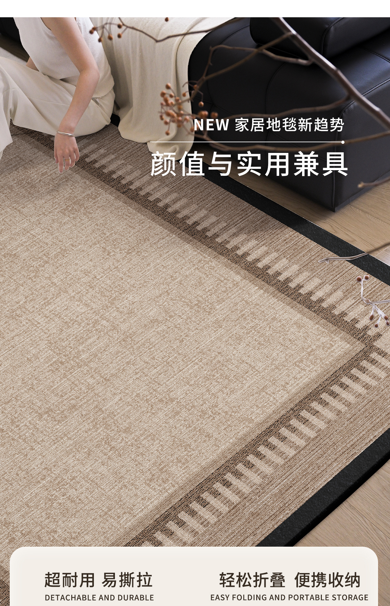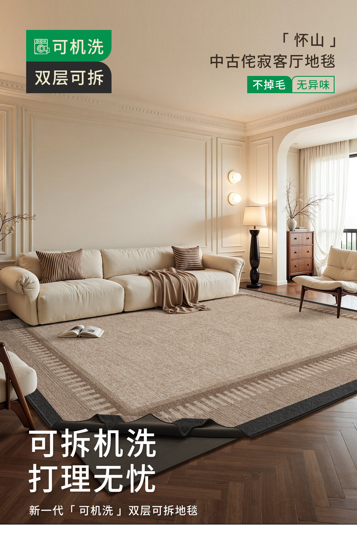 著忆可拆洗客厅地毯2026新款高级感可机洗侘寂中古茶几沙发卧室地垫厚 可拆洗仿羊绒-怀山 定制联系客服,不退不换