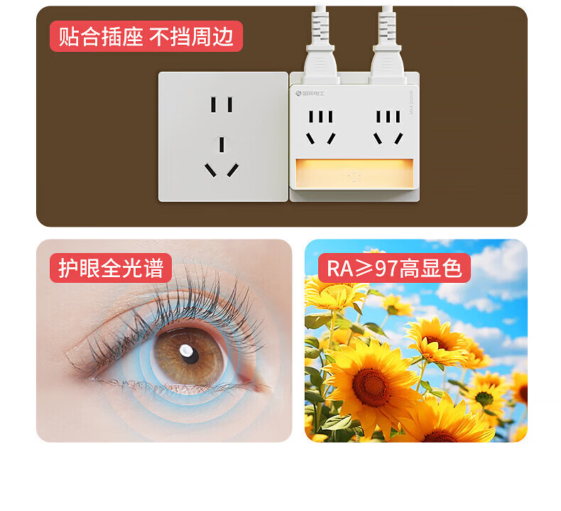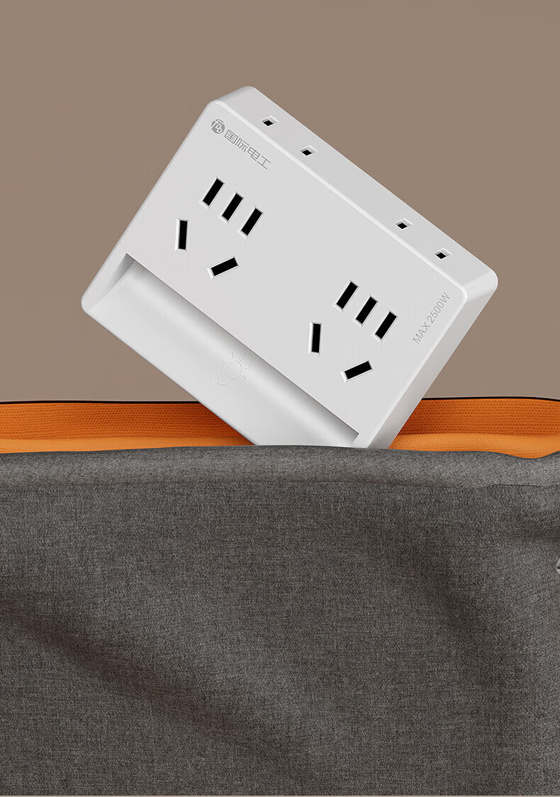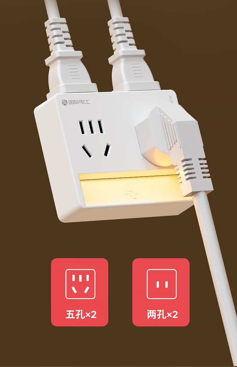 国际电工智能插座转换器家用多孔电源多功能一转四位孔无线小夜灯直插插头 奶油白新款【升级触摸夜灯】一转四