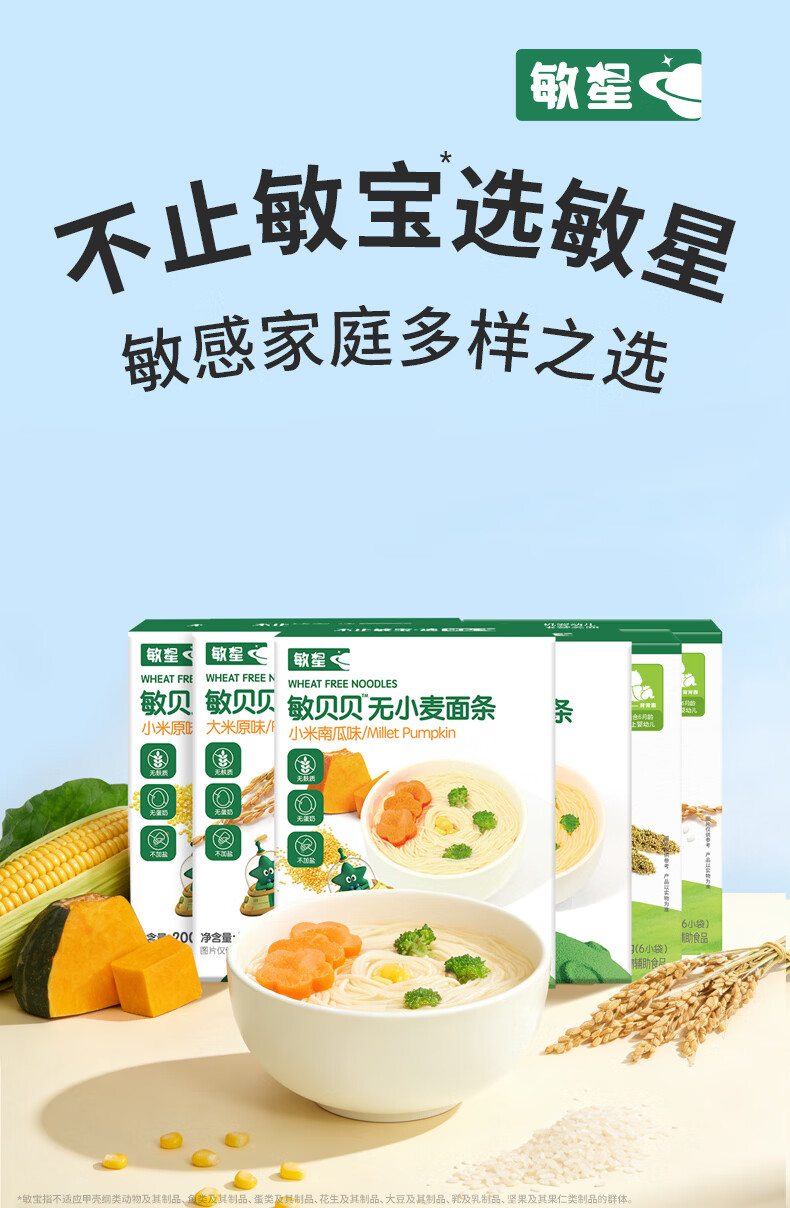 敏星大米小米玉米面条无小麦麸质不加鸡蛋牛奶盐送婴儿童宝宝辅食谱 小米原味200g*1盒