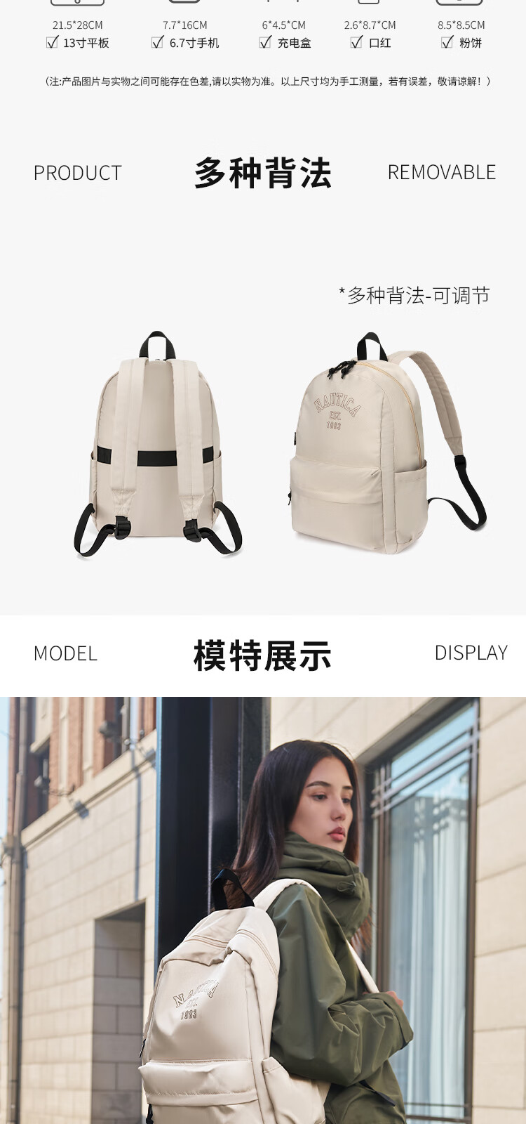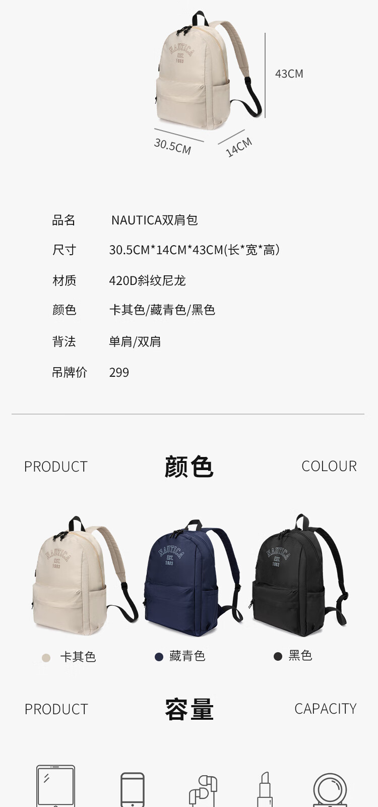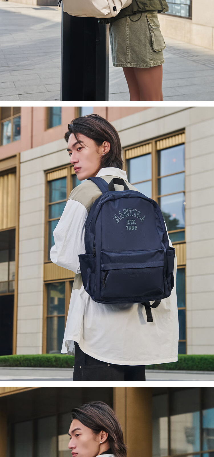 诺帝卡诺帝卡男女双肩包大容量商务通勤笔记本电脑包时尚潮流背包书包 卡其色