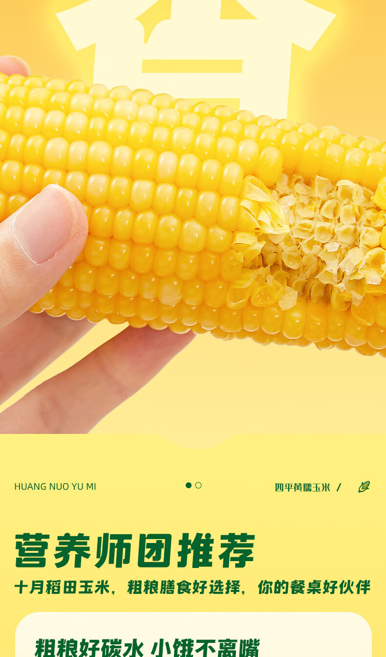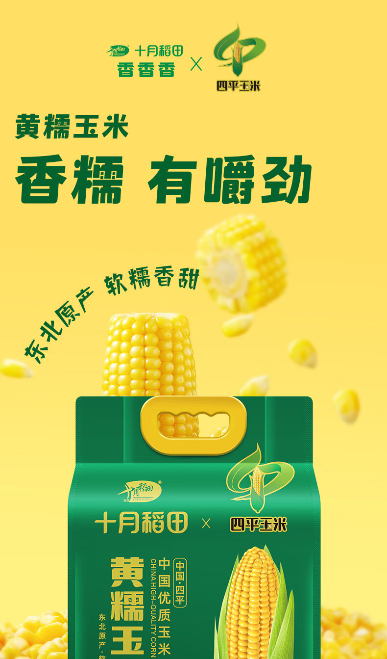 十月稻田 四平黄甜糯玉米 8根 3.52斤 东北黏玉米棒 真空包装 非转基因