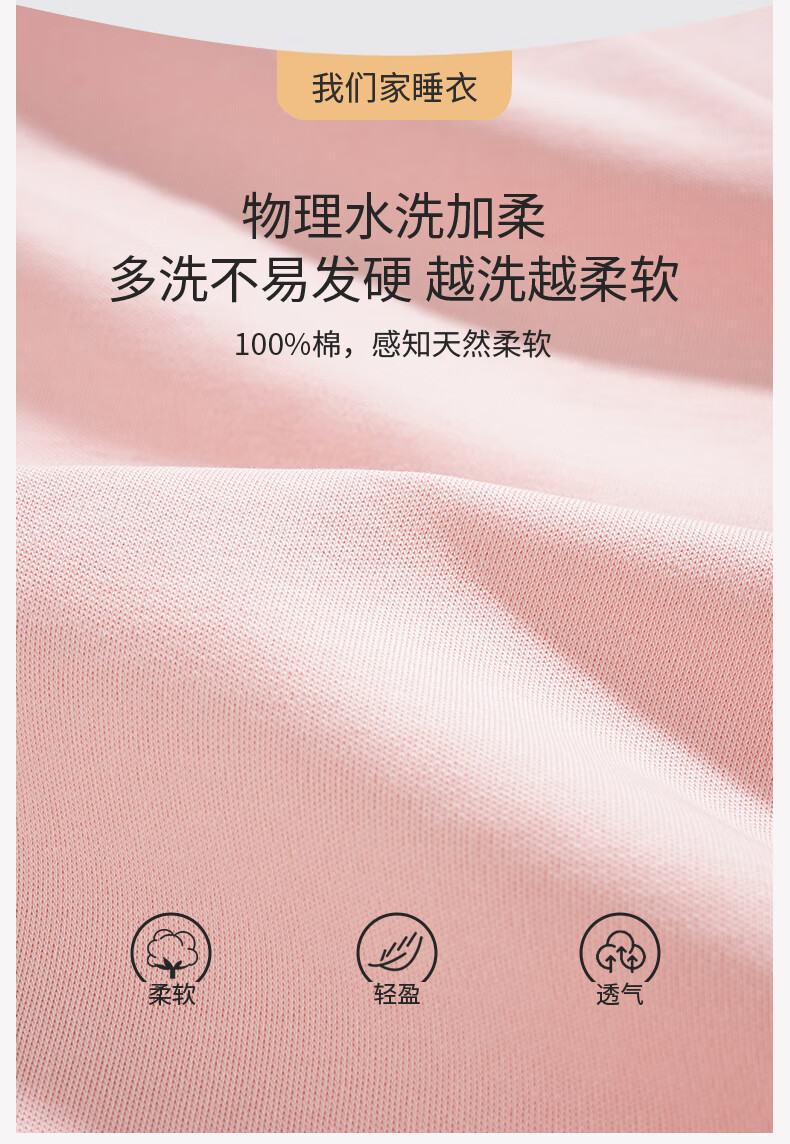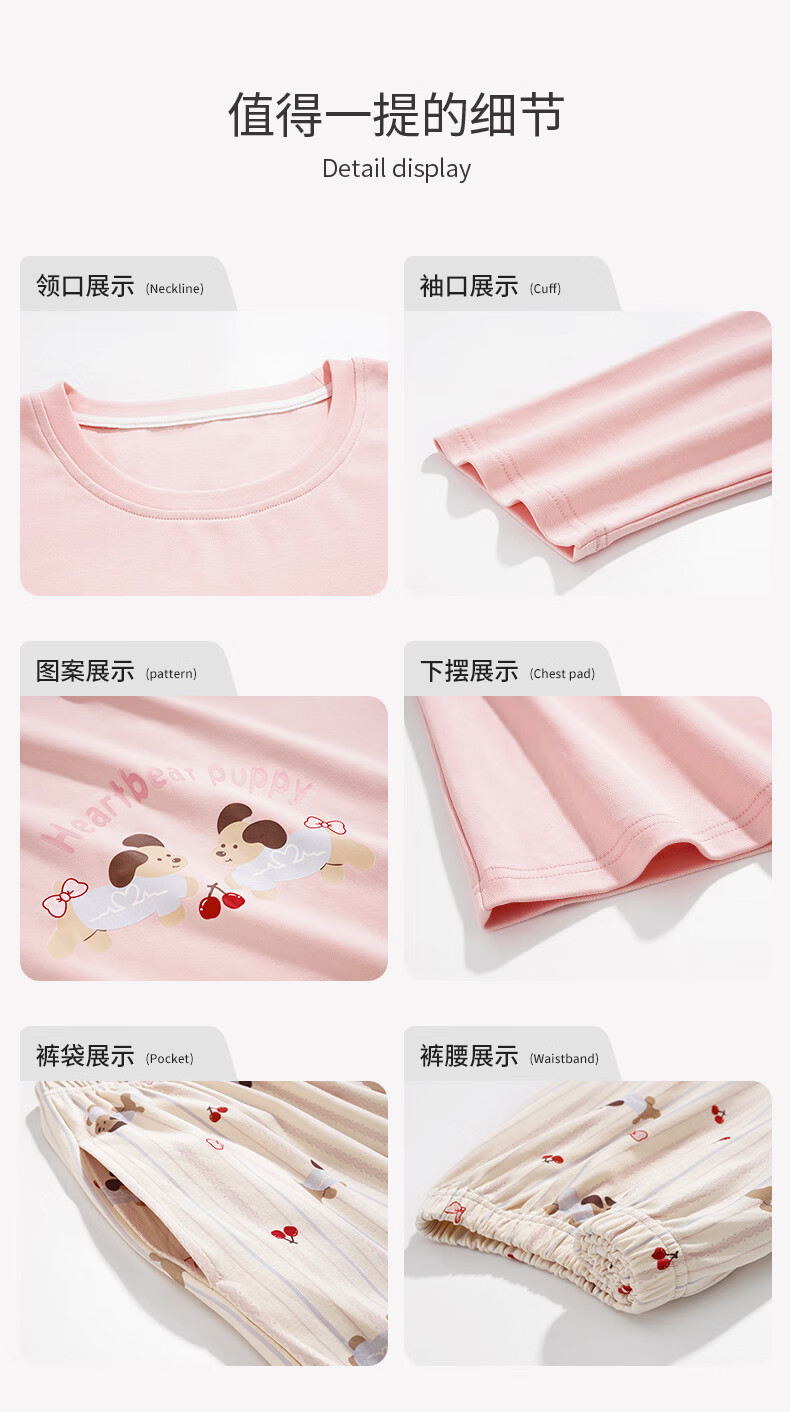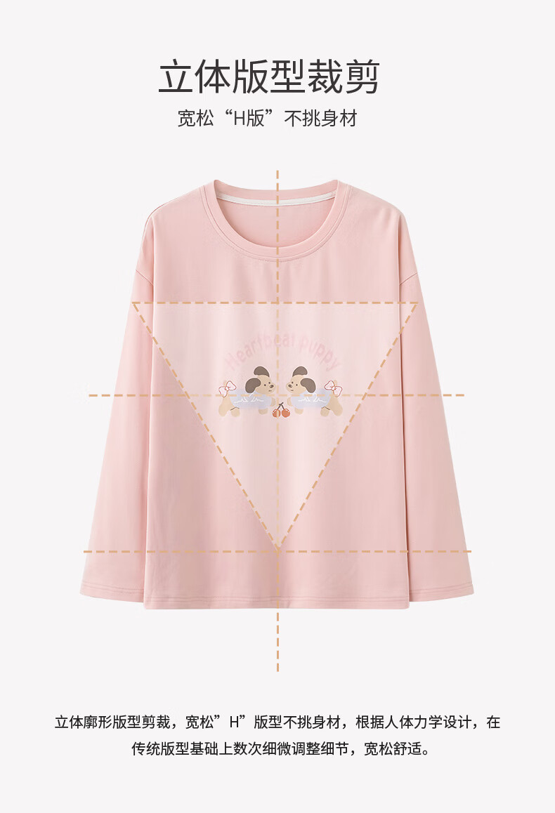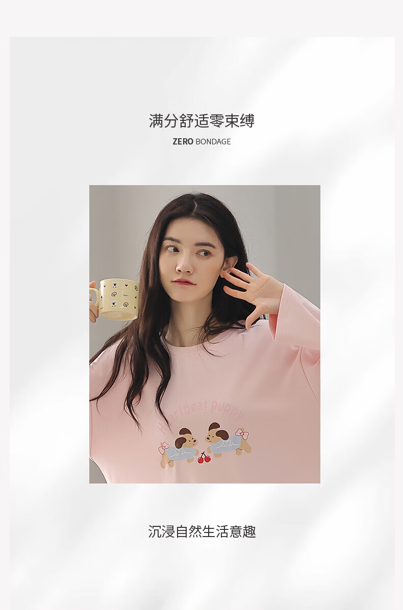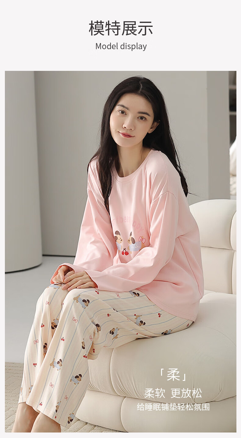芬腾睡衣女【100%纯棉】秋冬新款圆领长袖卡通睡衣女家居服套装 粉色 L