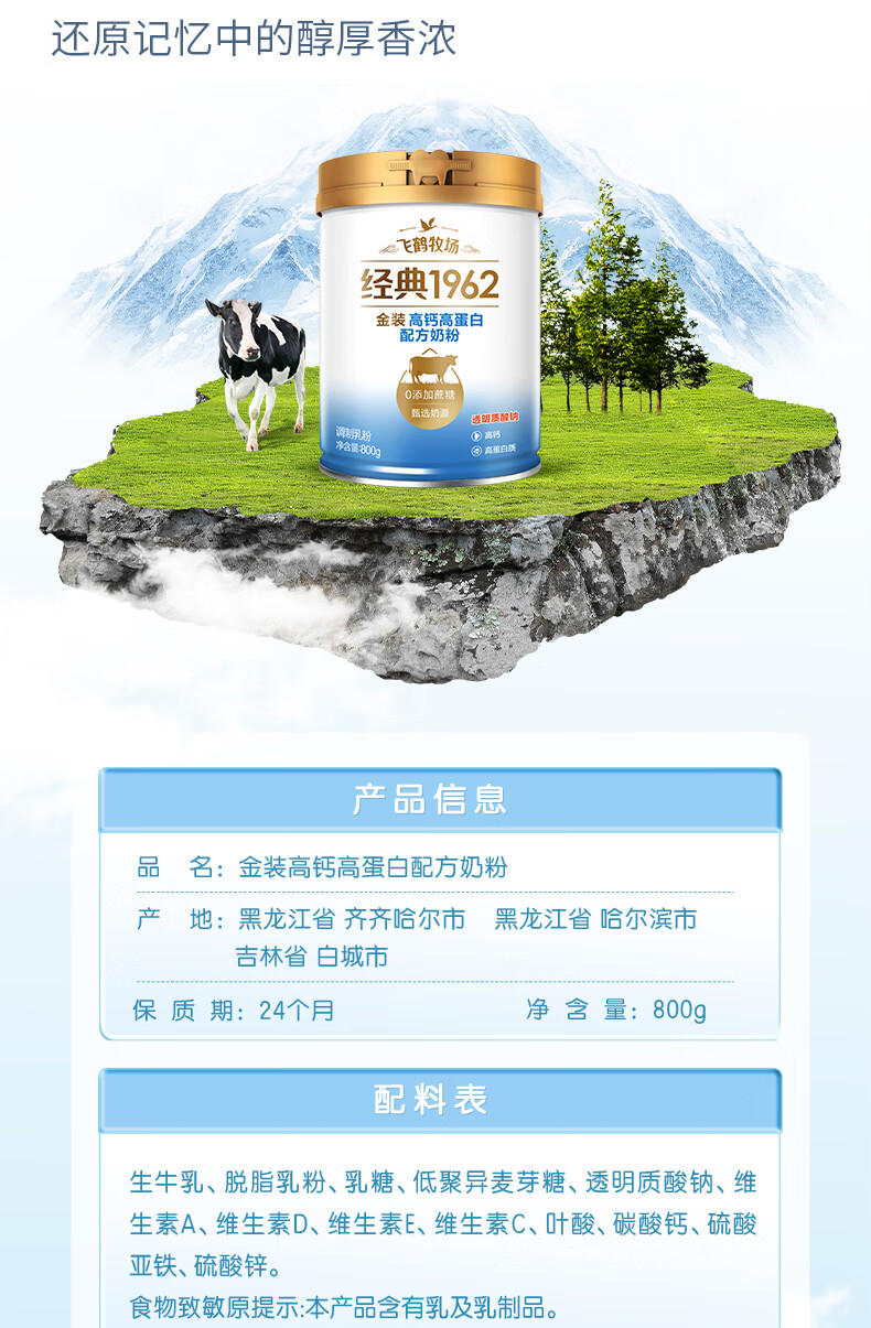 飞鹤金装高钙高蛋白配方奶粉中老年成人奶粉营养早餐年货送礼送父母 【新年贺礼】听装800g*2礼盒装