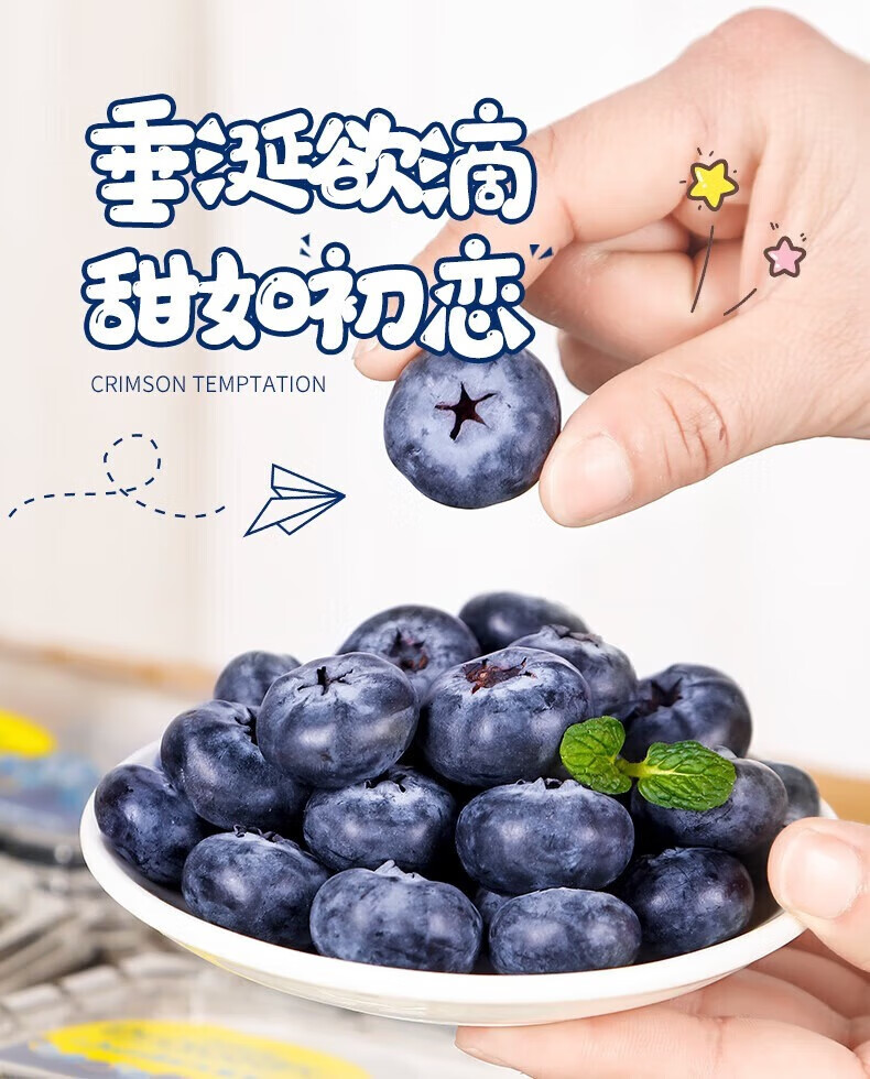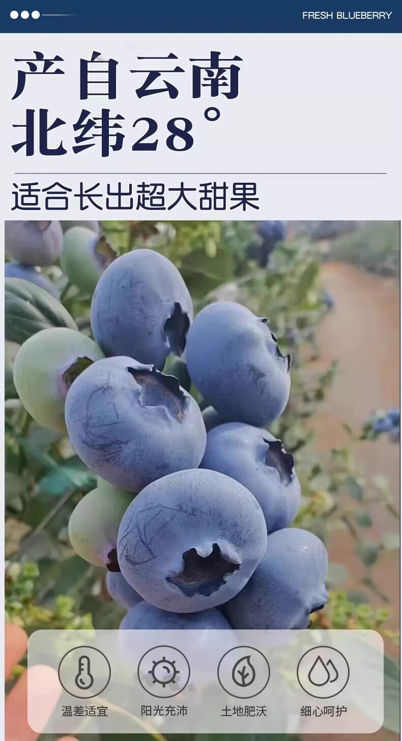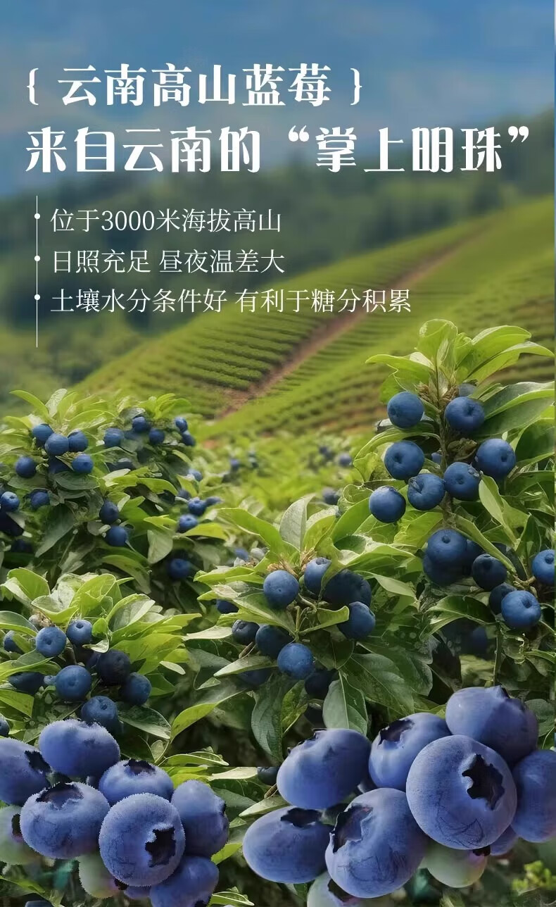 余悦云南花香蓝莓【多地次日达-JD/邮政空运】新鲜国产蓝莓超大果送礼 6盒【单果15mm+】125g/盒(净100g)