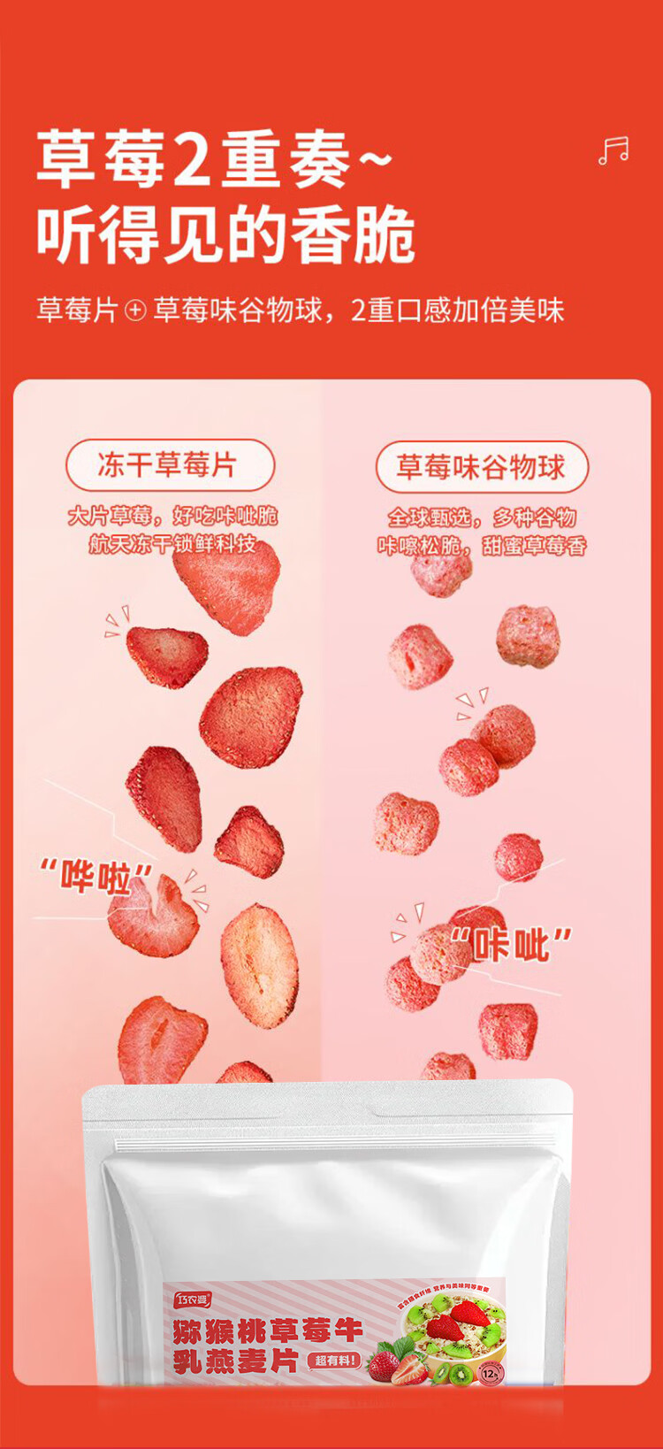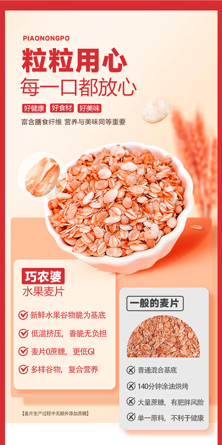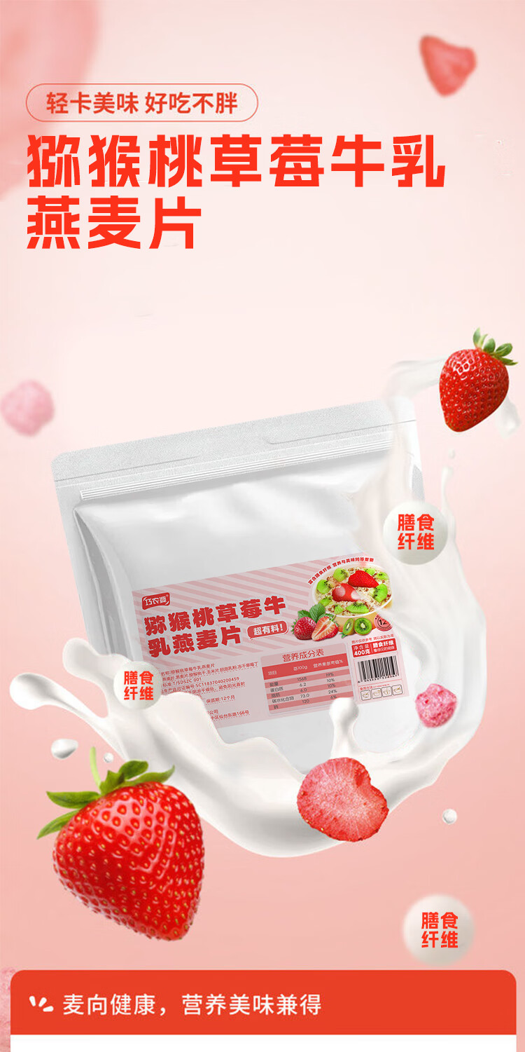 巧农婆水果麦片早餐冲饮谷物代餐营养减肥代餐无添加蔗糖冲泡即食燕麦片 买2送1【三大包】猕猴桃草莓燕麦片