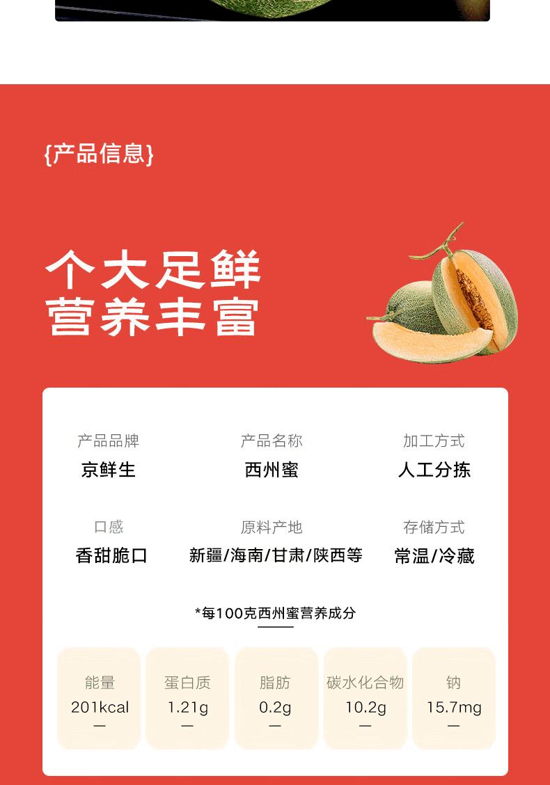 京鲜生海南脆甜哈密瓜 净重4.5-5斤 1-2粒装 单果2斤起 源头直发包邮