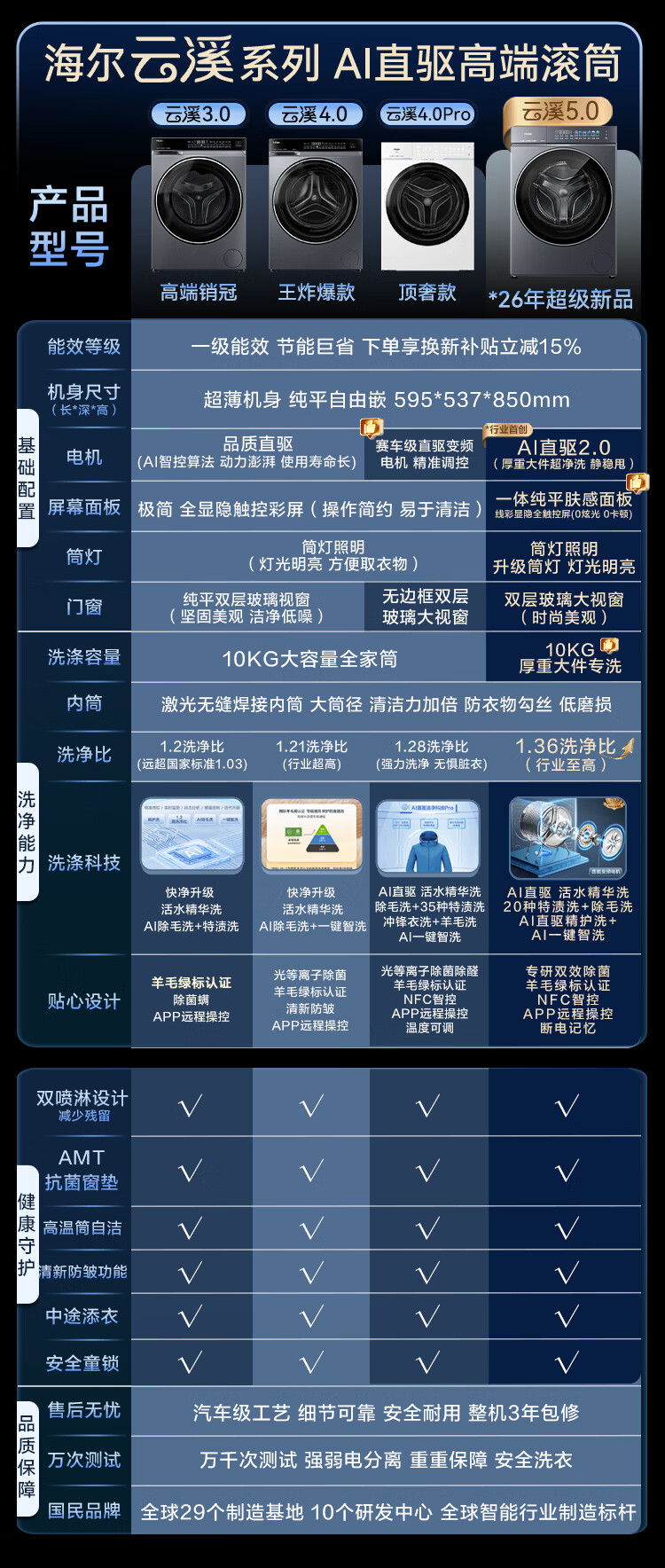 海尔(Haier)云溪5.0 AWE同款 10公斤全自动滚筒洗衣机单洗 家用大容量超薄 AI直驱洁净2.0双效除菌D1系列 重磅新品10KG单洗 滚筒