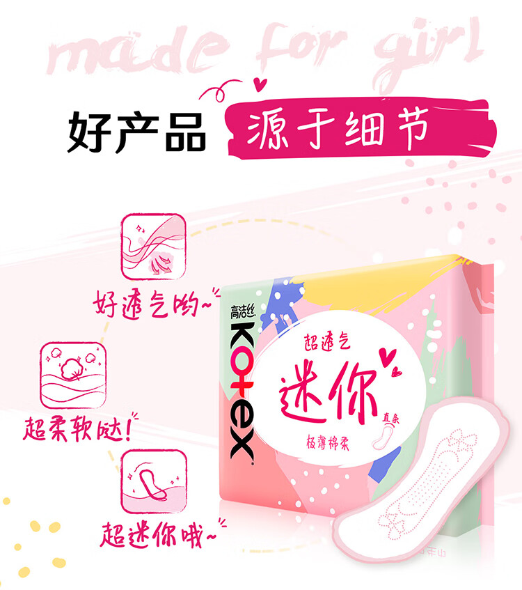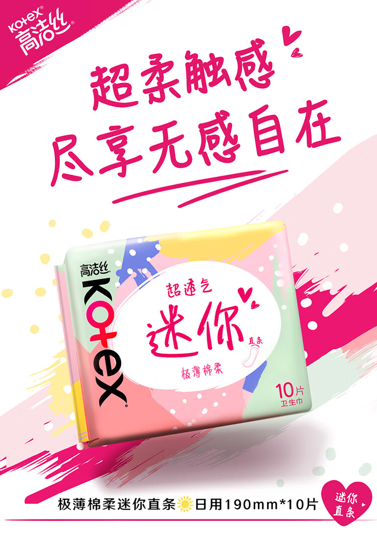 高洁丝【柔滑呵护】少女肌护垫190mm10片*6包日用迷你卫生巾京东自营