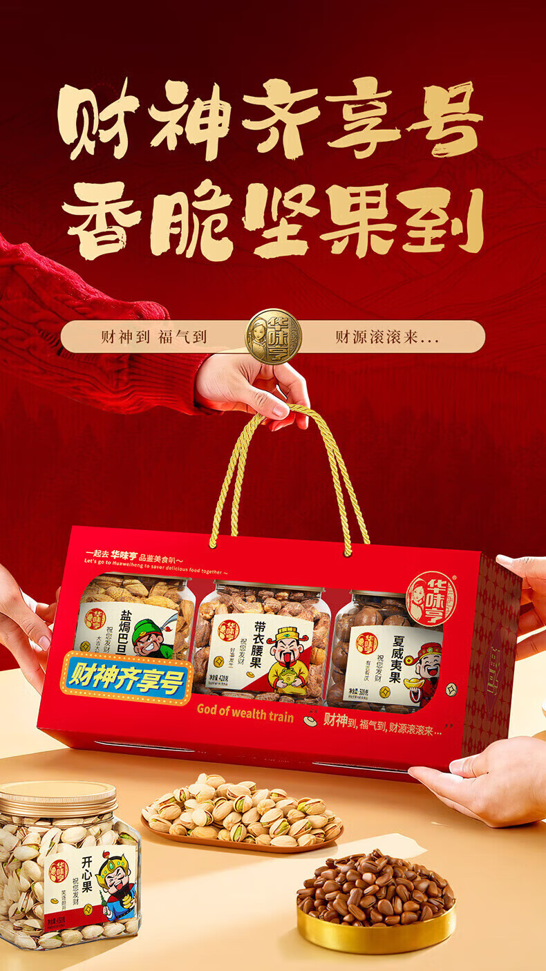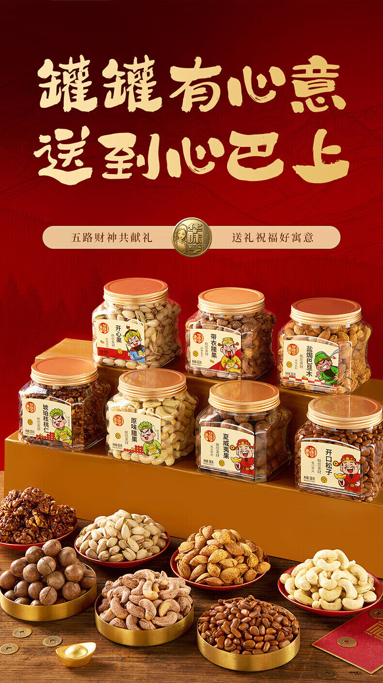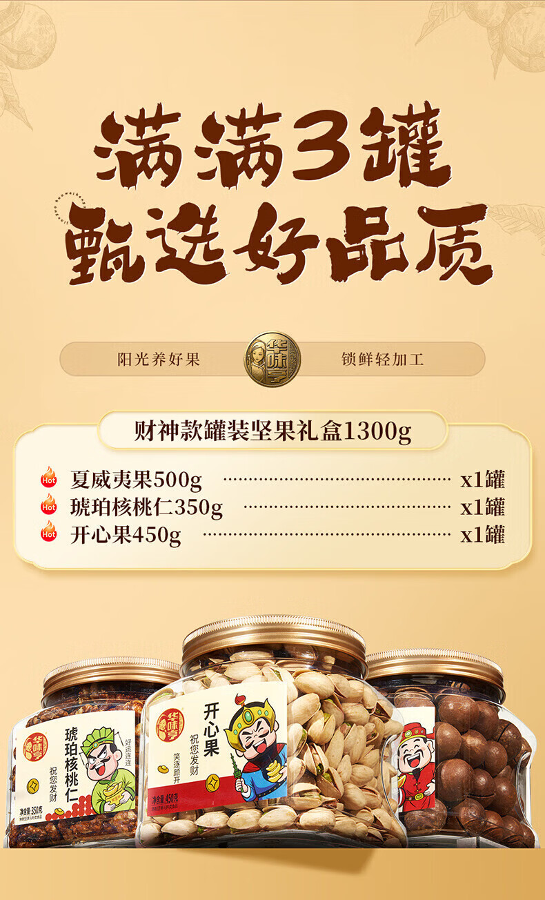 华味亨财神坚果1270g 企业团购罐装坚果腰果巴旦木贺岁年货送人礼品 【财神礼】1200g/3罐装