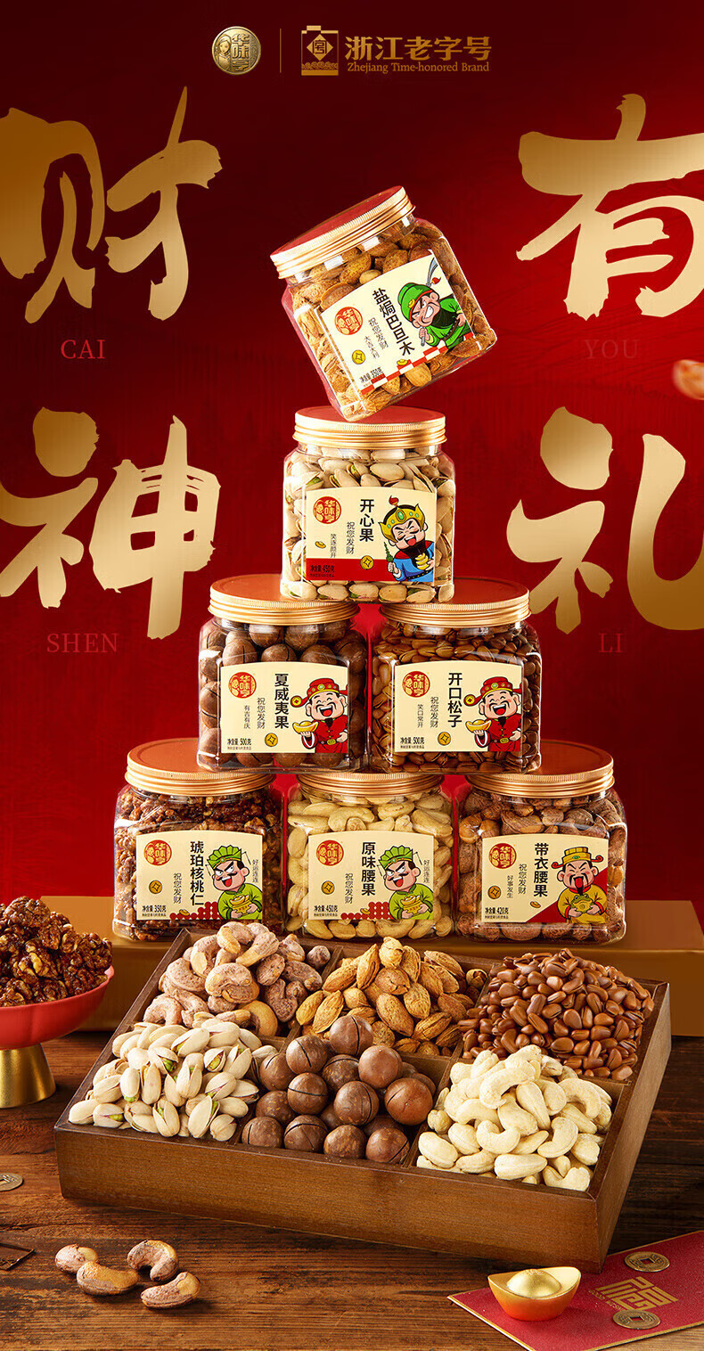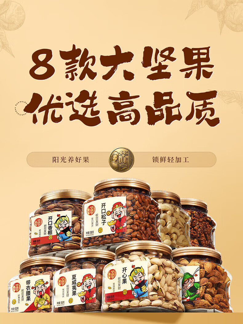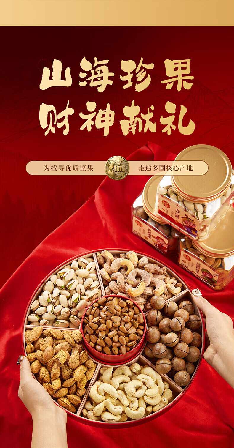 华味亨财神坚果1270g 企业团购罐装坚果腰果巴旦木贺岁年货送人礼品 【财神礼】1200g/3罐装