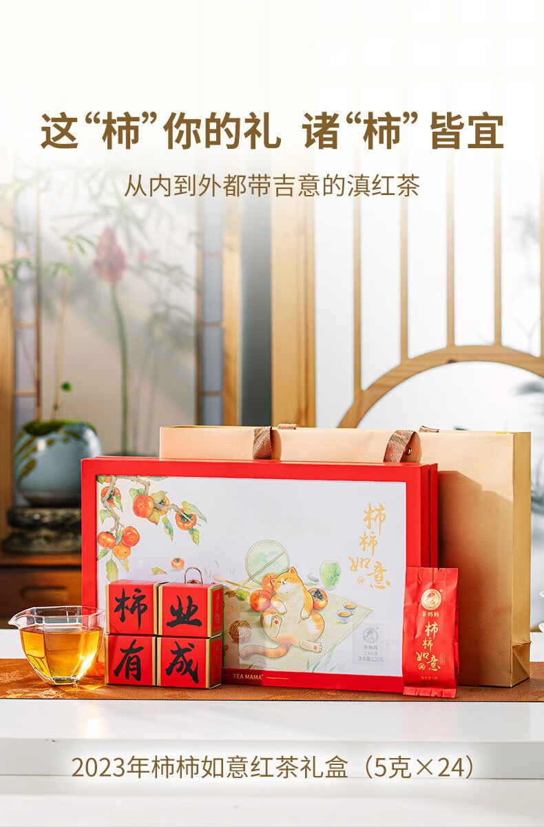 澜沧古茶红茶 2023年柿柿如意红茶礼盒装云南高山滇红茶叶礼盒 滇红礼盒120g