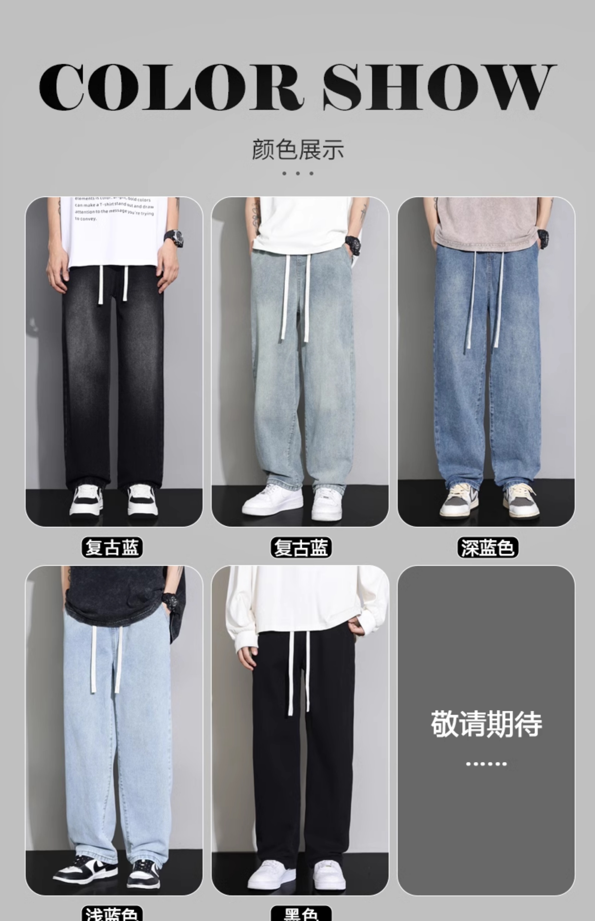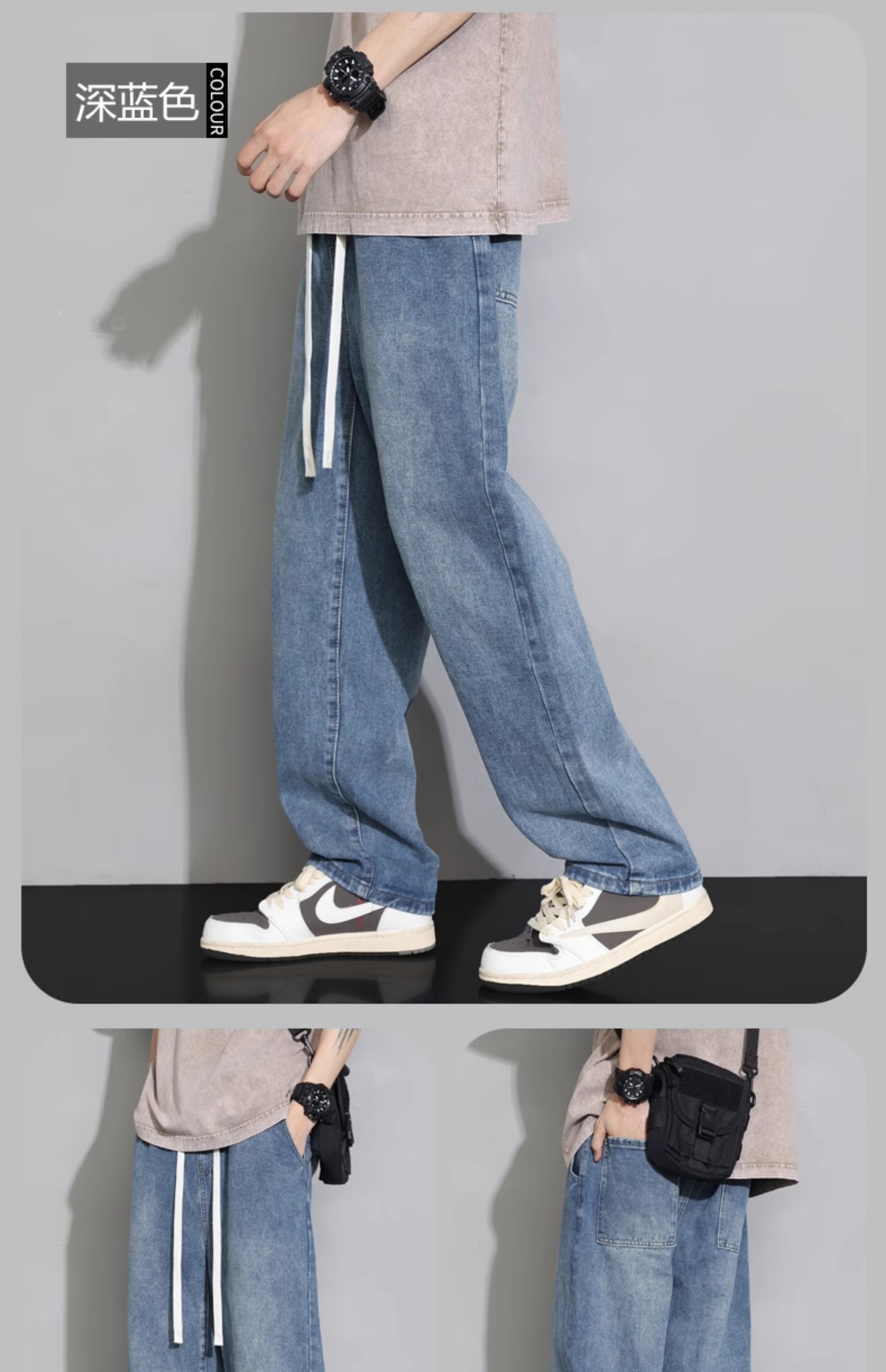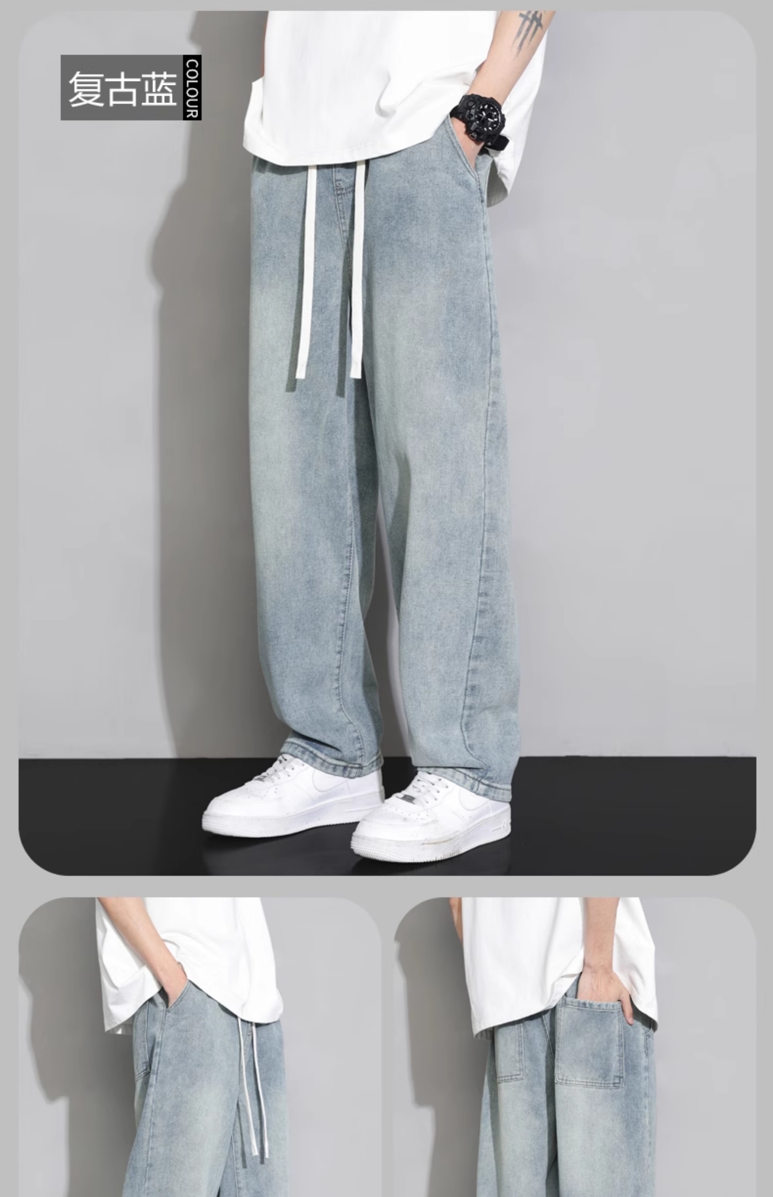 真维斯(Jeanswest)2026秋季新款男士休闲牛仔裤宽松直筒阔腿裤美式潮牌抽绳休闲长裤 H36复古蓝 S 【建议体重80-90】