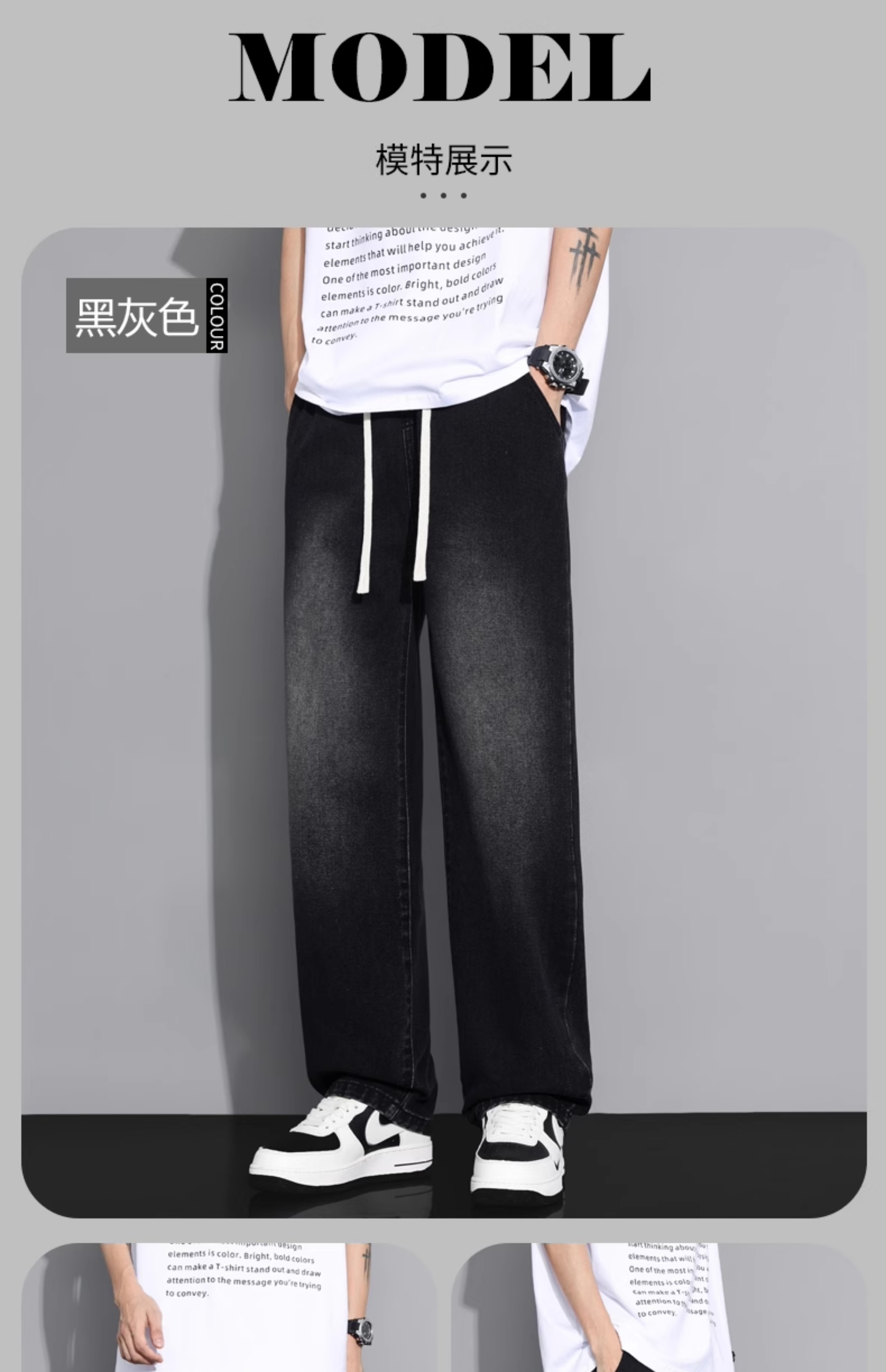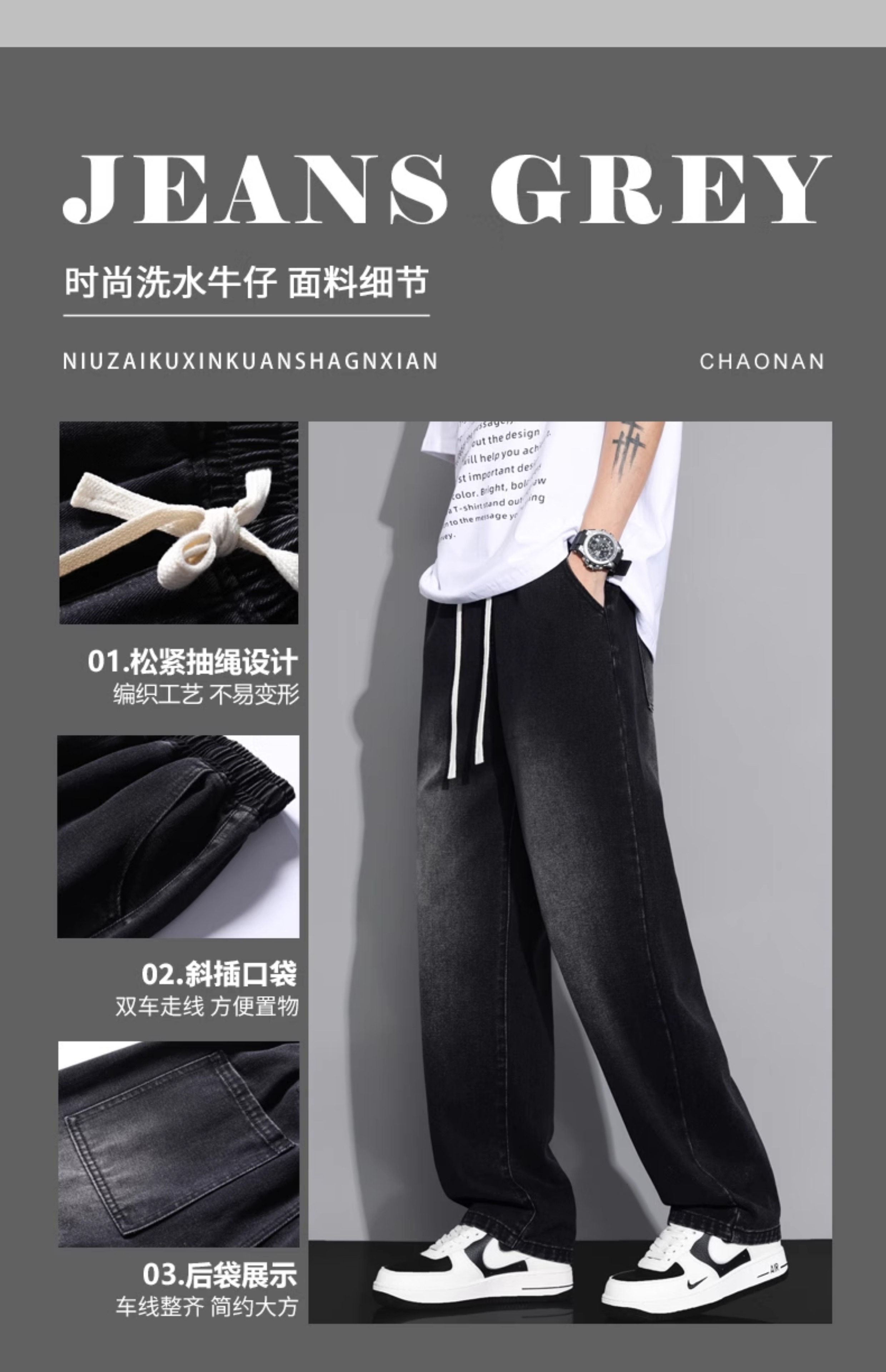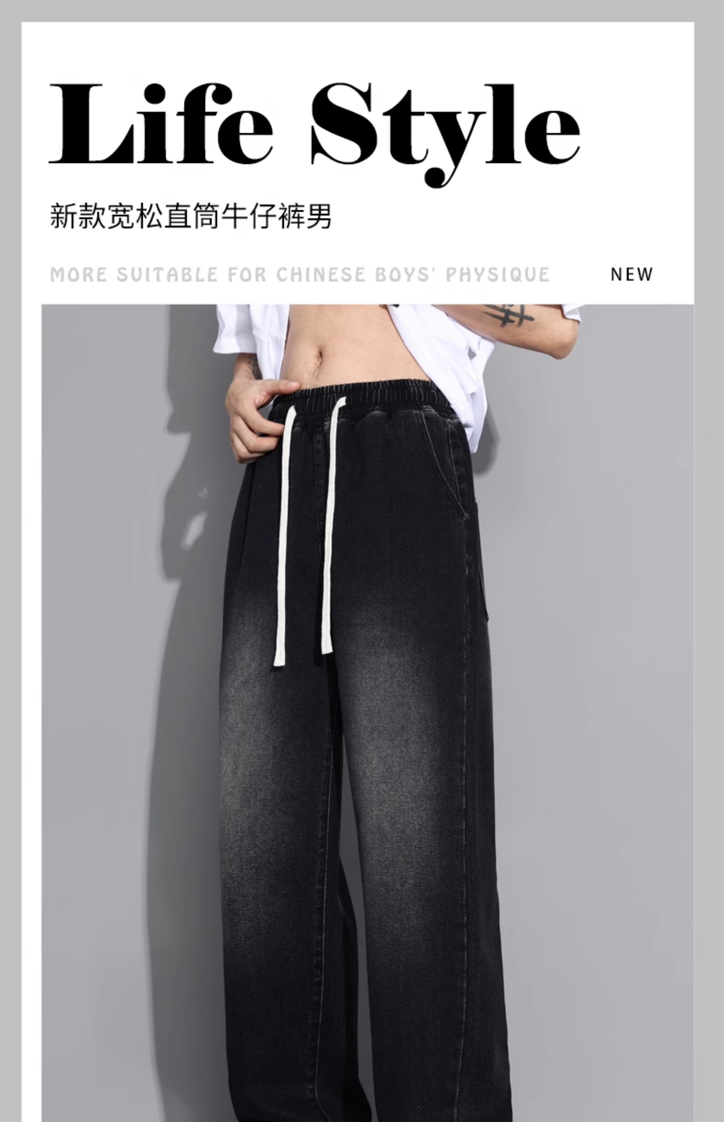 真维斯(Jeanswest)2026秋季新款男士休闲牛仔裤宽松直筒阔腿裤美式潮牌抽绳休闲长裤 H36复古蓝 S 【建议体重80-90】
