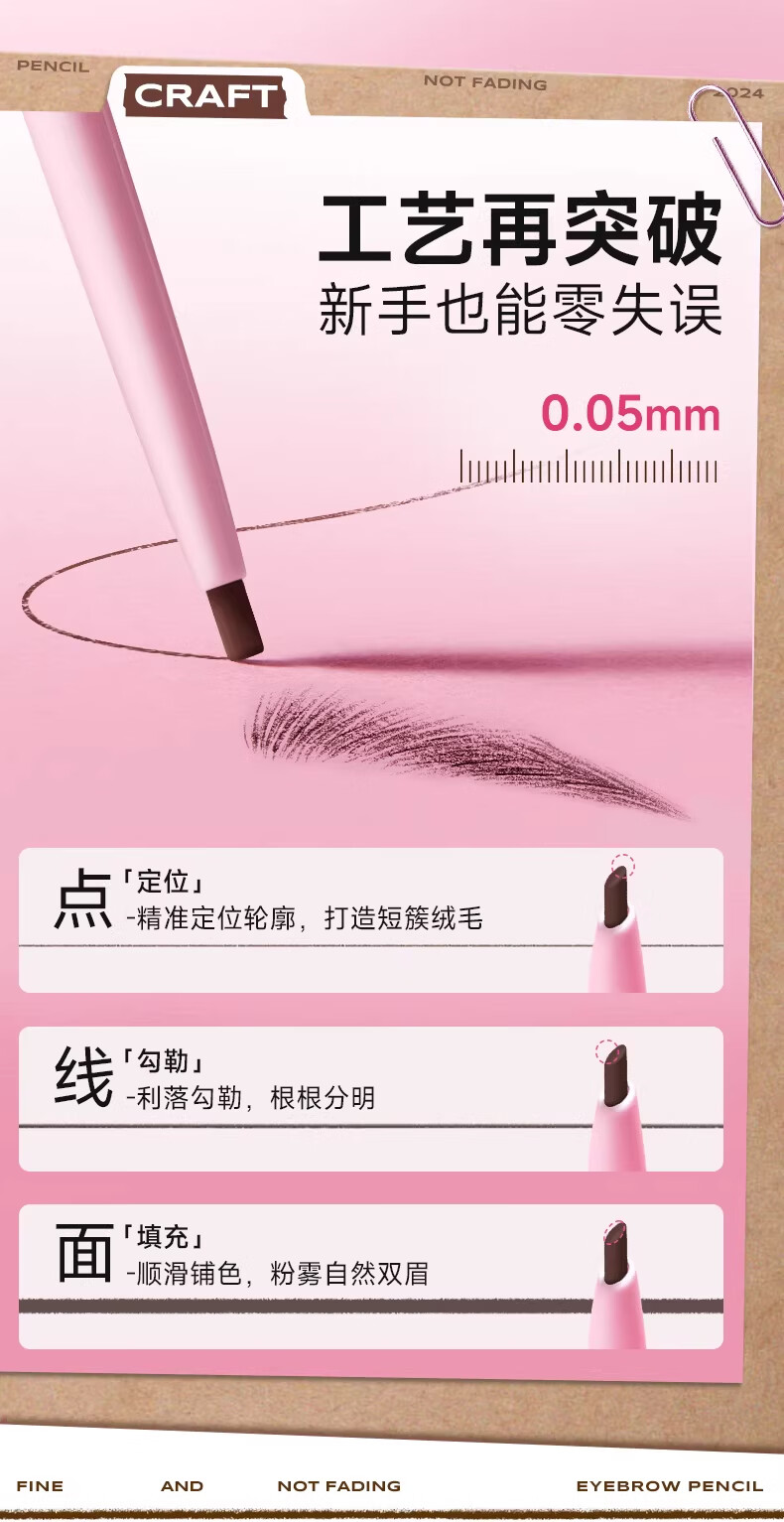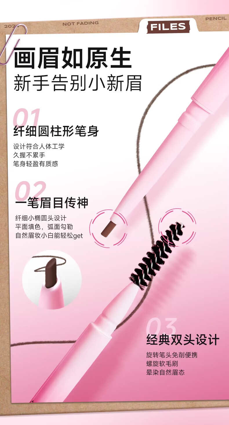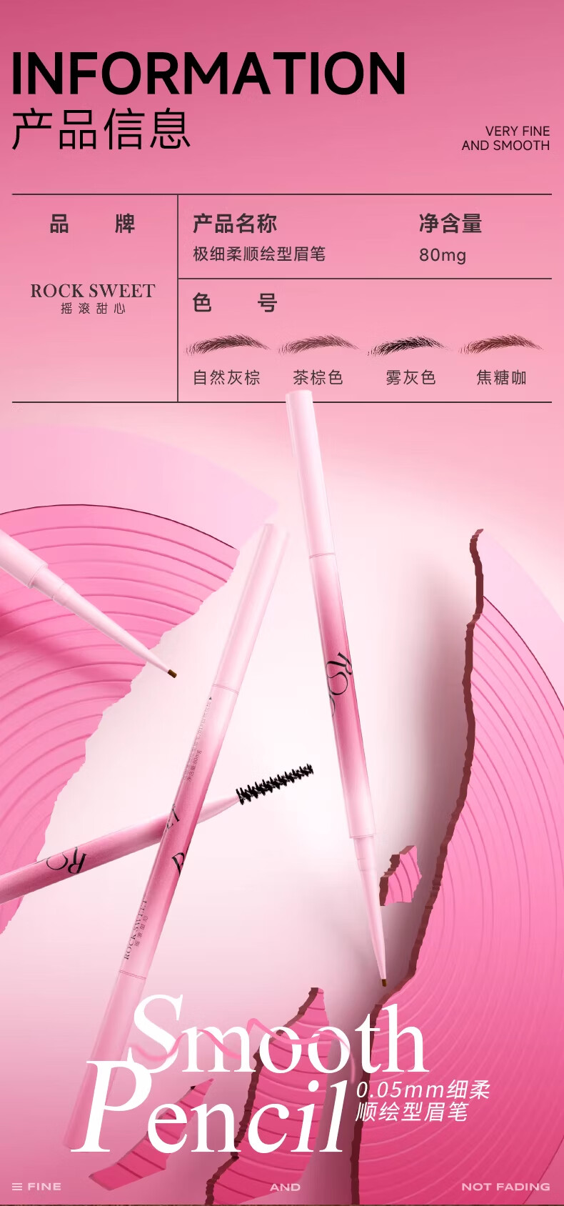 摇滚甜心 ROCK SWEET极细柔顺眉笔细头防水勾勒野生眉持妆根根分明不掉色送女友礼物 【三支】04#焦糖咖【适合栗色偏红棕发】