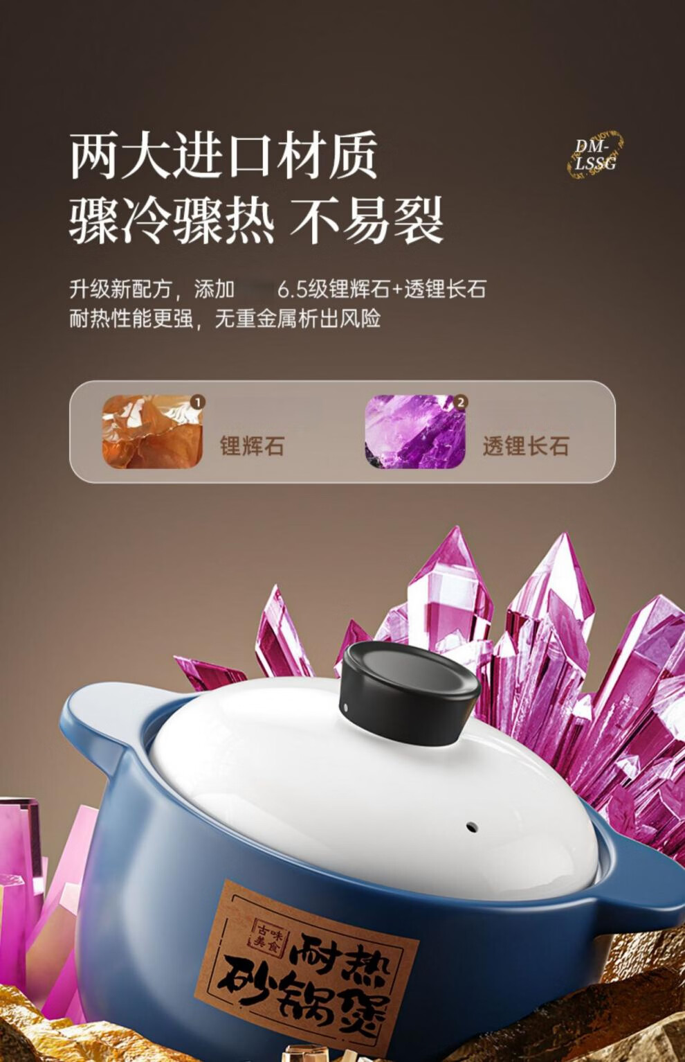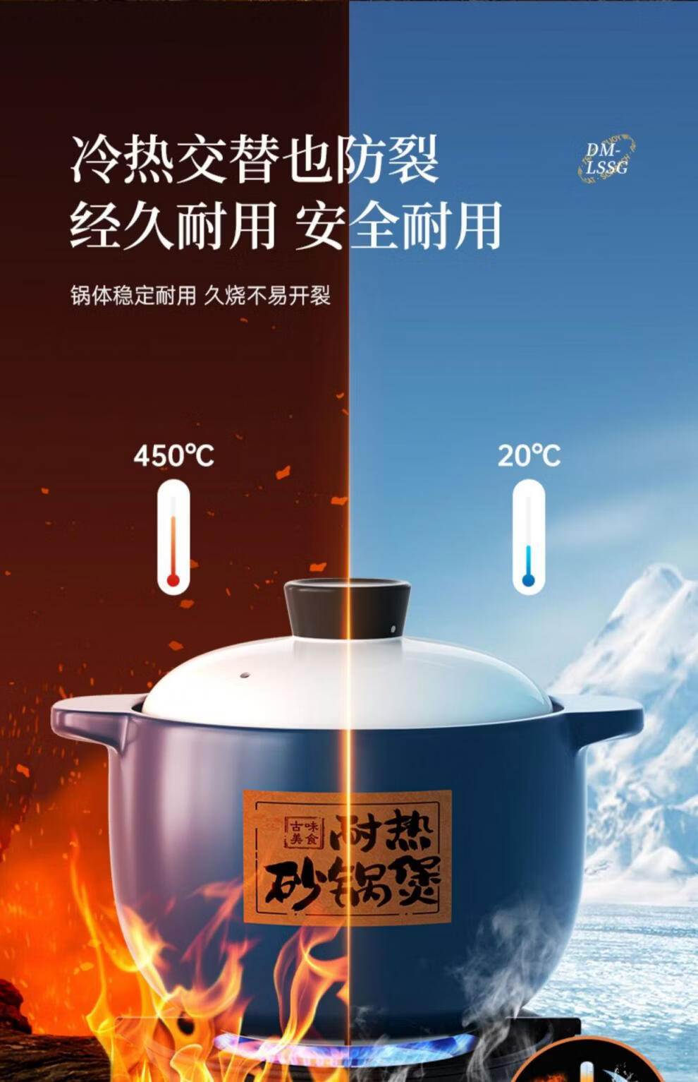 MMOTRO日本品牌砂锅家用养生煲陶瓷煲汤汤煲煲仔饭烧锅燃气煤气灶专用 养生煲【双倍平方抗裂】(适用4-8人) 4.5L