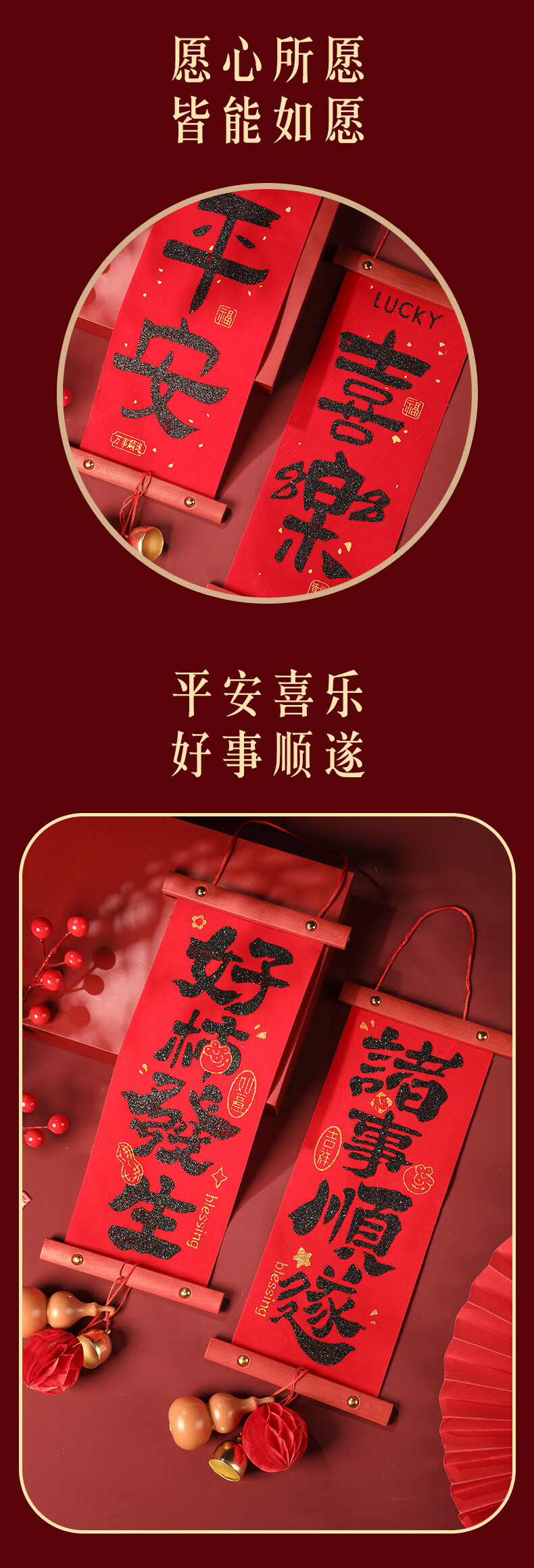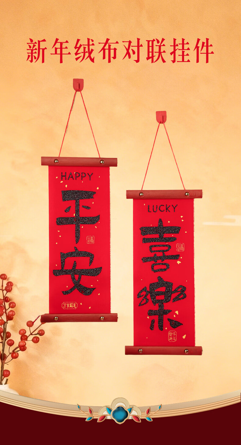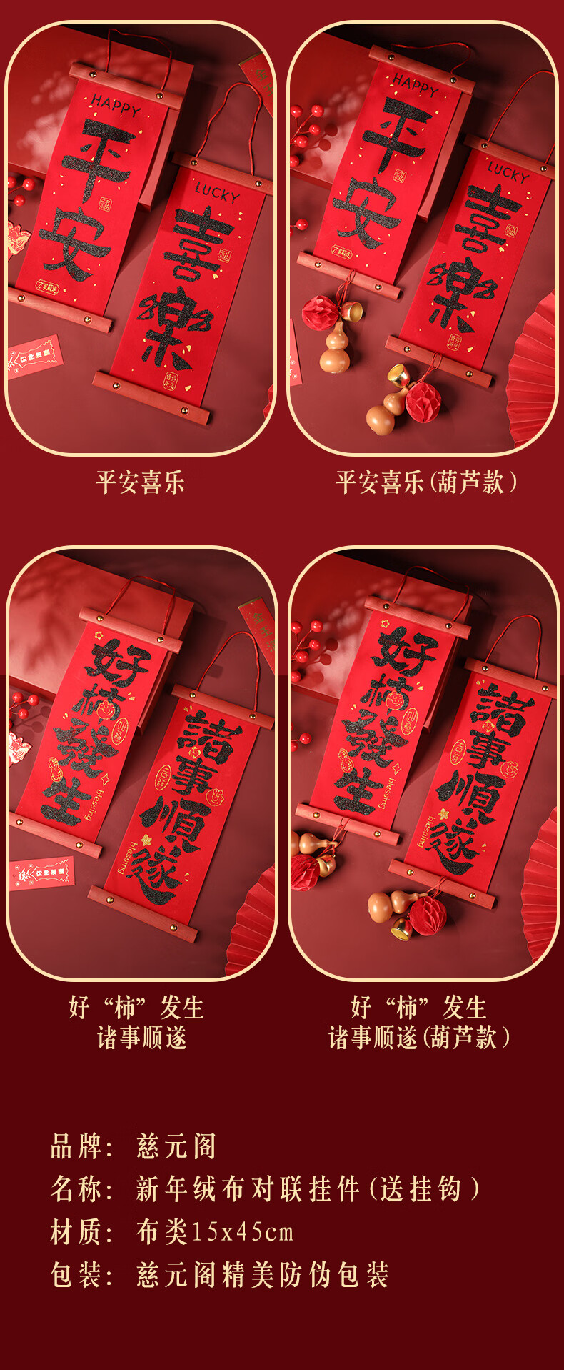慈元阁新年绒布对联挂件大红色家居挂饰客厅房门乔迁搬新家氛围春节装饰 平安喜乐