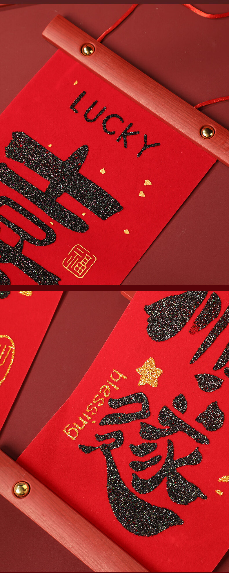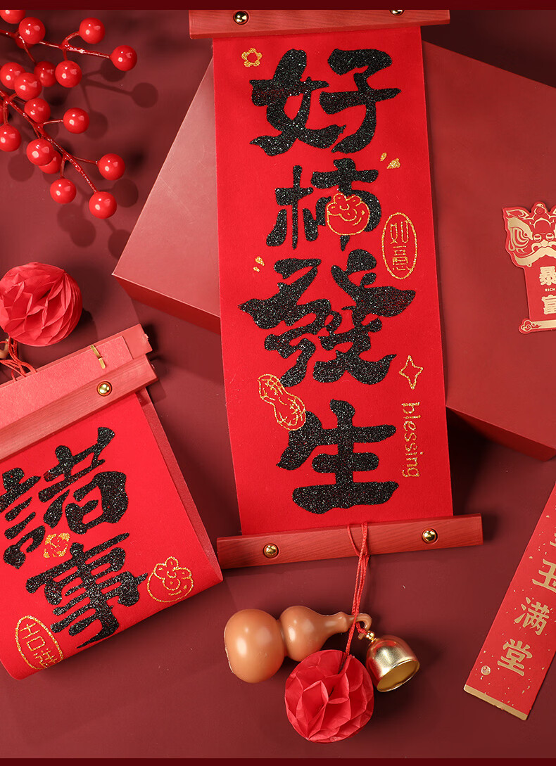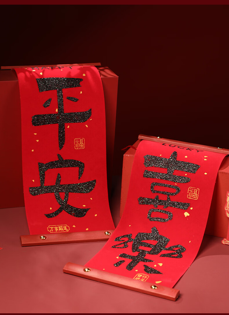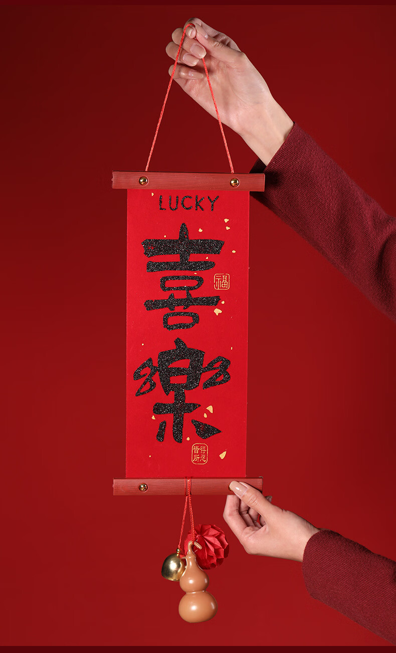 慈元阁新年绒布对联挂件大红色家居挂饰客厅房门乔迁搬新家氛围春节装饰 平安喜乐