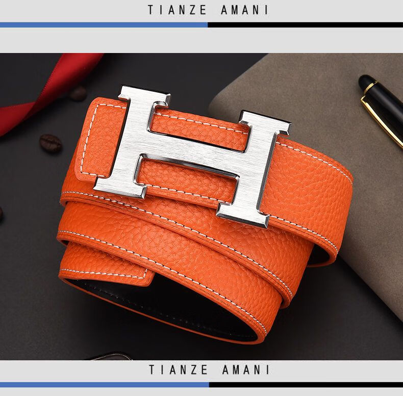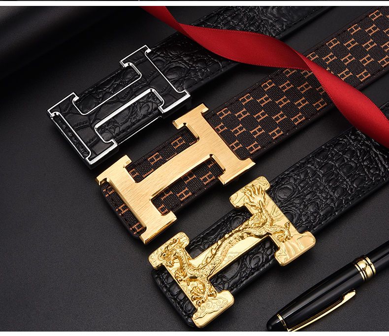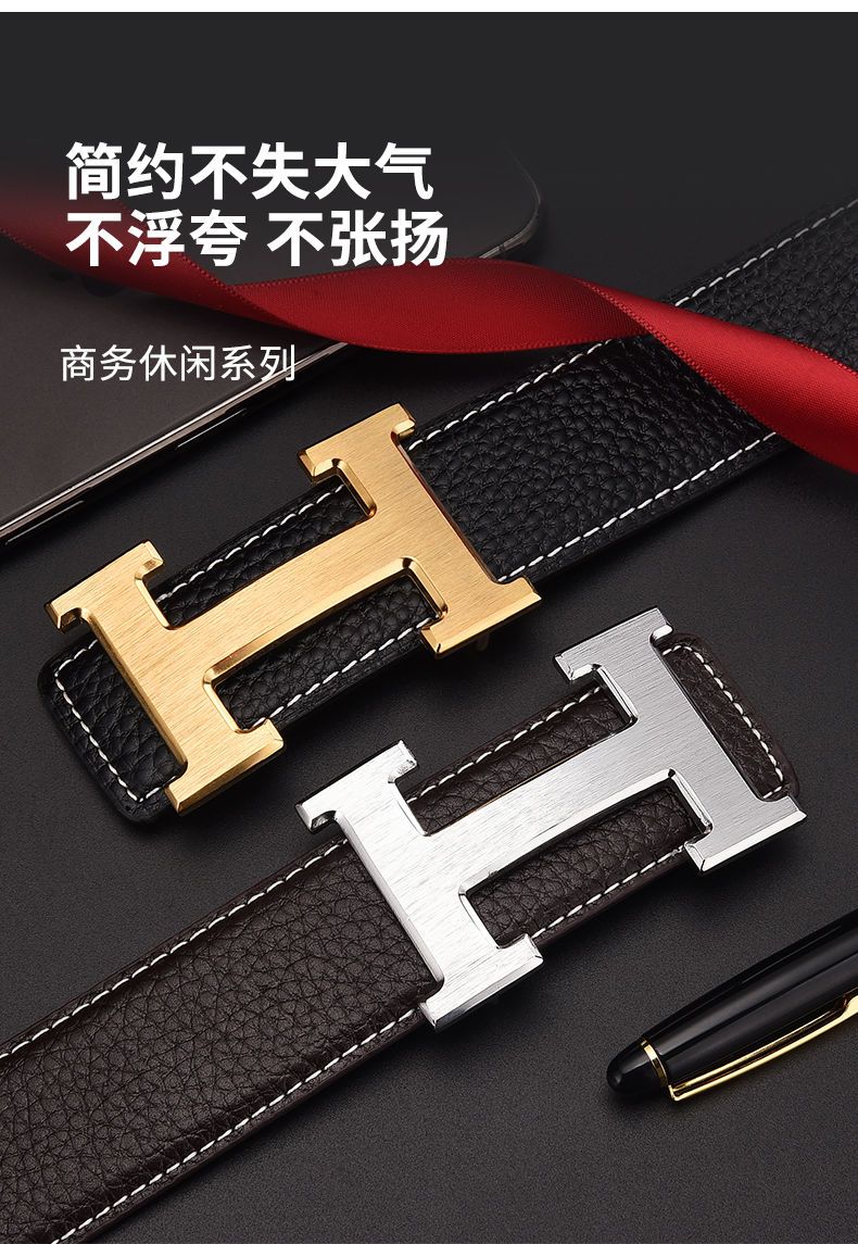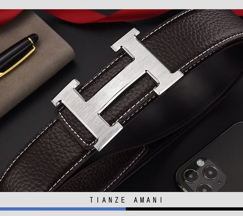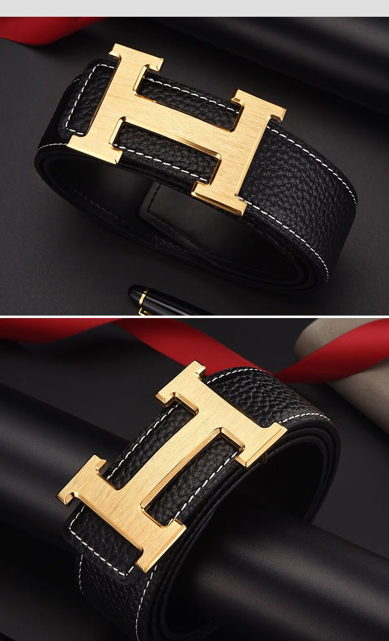 酷奇袋鼠男士皮带真牛皮时尚百搭H铜扣工字扣真皮休闲青中年腰带男 H黑色+银扣 3.8宽 105cm