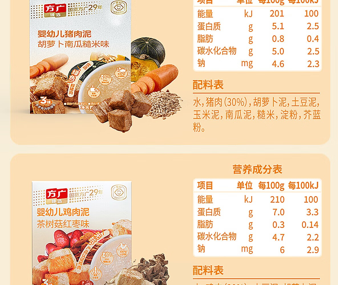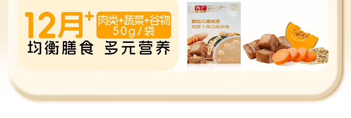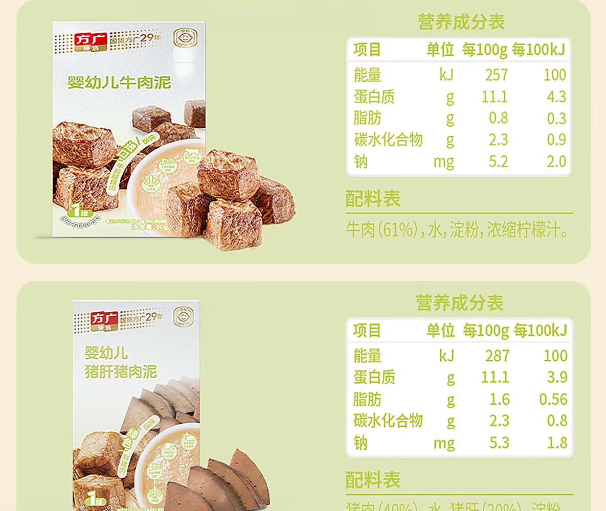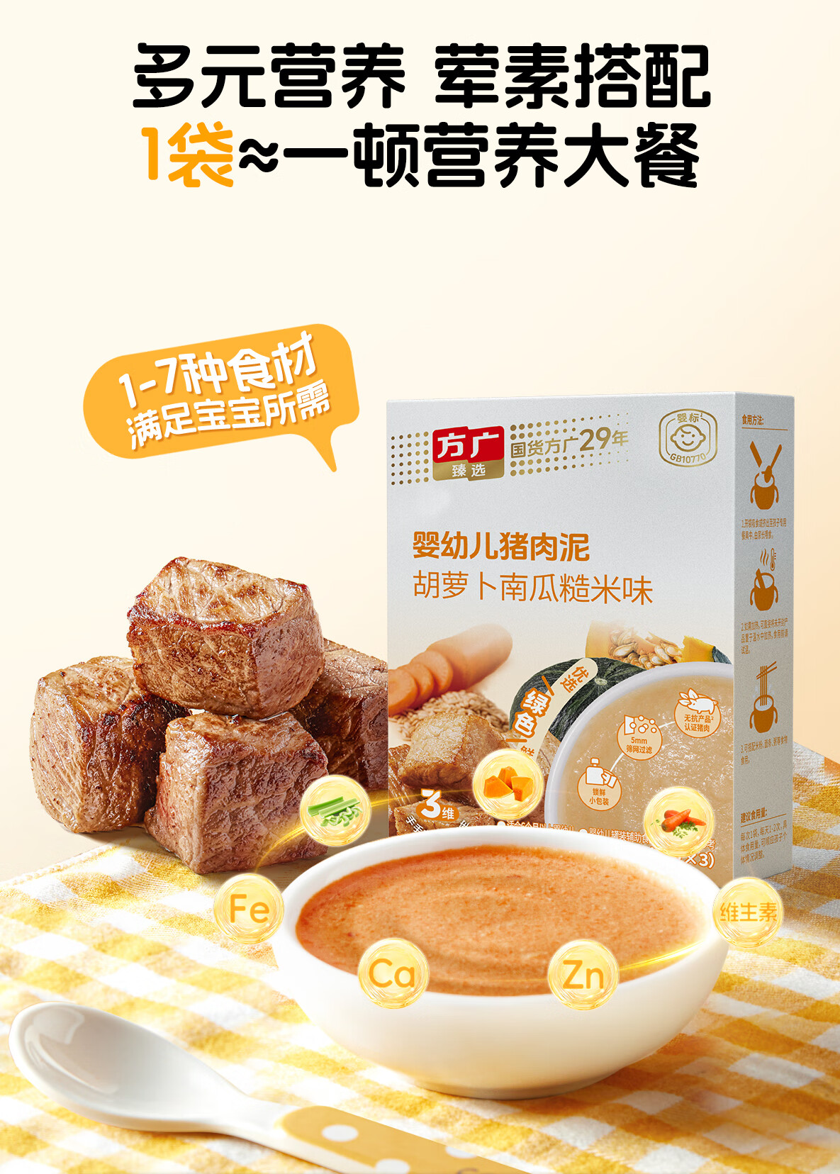 方广婴幼儿高铁猪肉牛肉鸡肉泥80g6个月+宝宝婴儿辅食肉泥多口味 猪肉泥+牛肉泥+鸡肉泥 80g*3盒