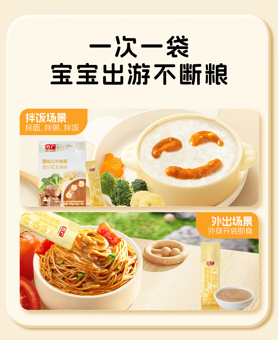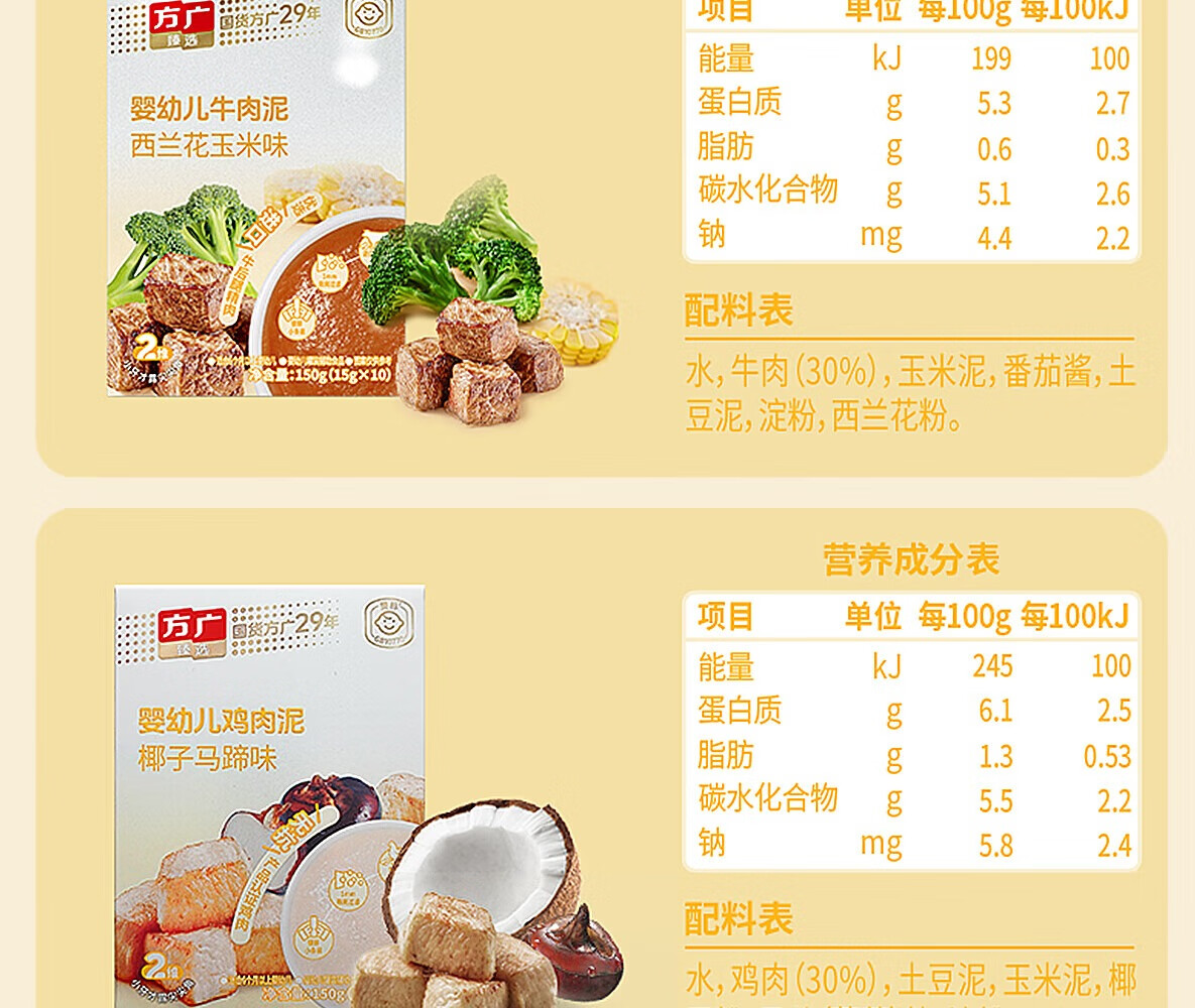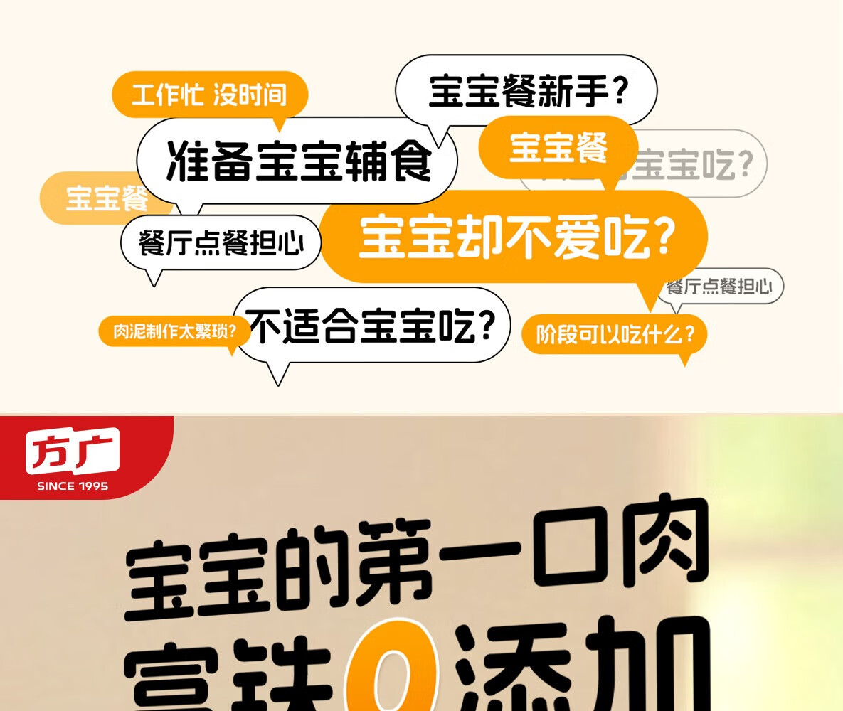 方广婴幼儿高铁猪肉牛肉鸡肉泥80g6个月+宝宝婴儿辅食肉泥多口味 猪肉泥+牛肉泥+鸡肉泥 80g*3盒