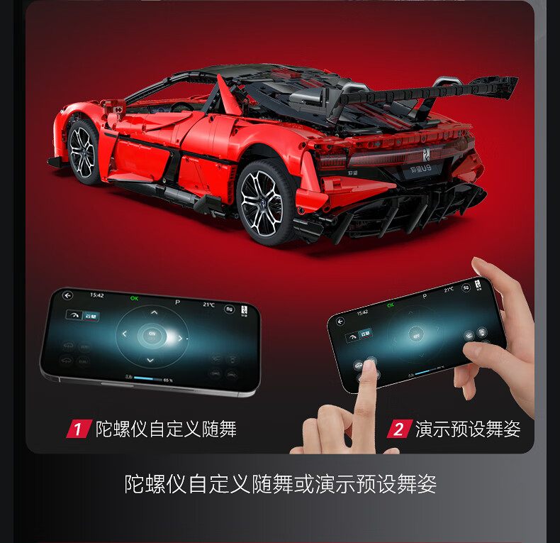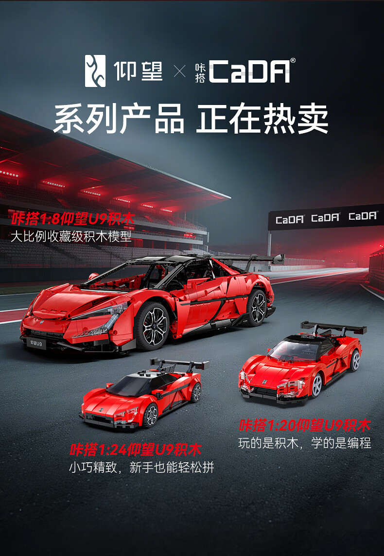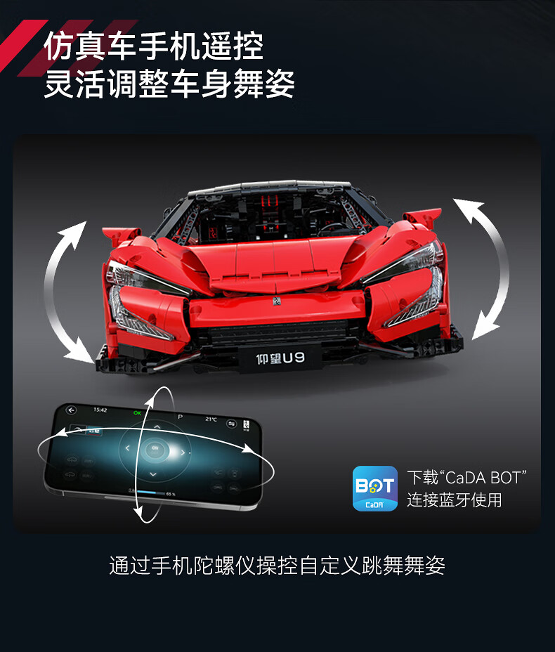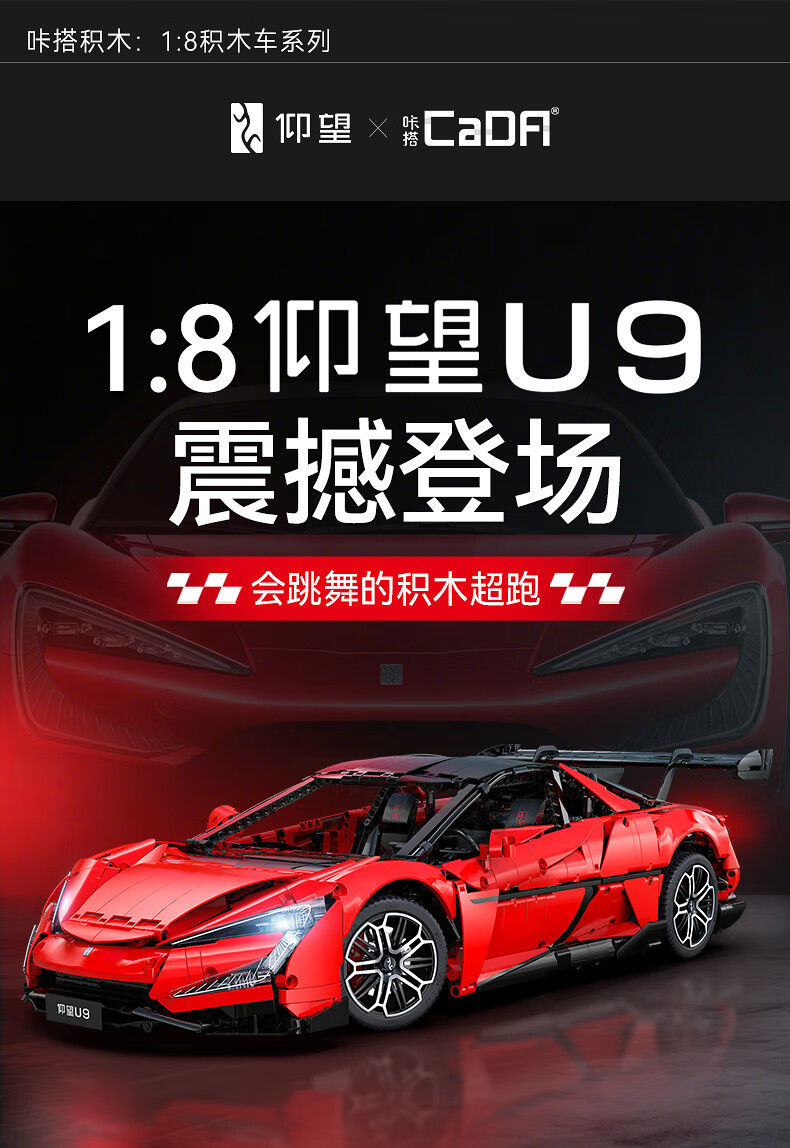 咔搭 比亚迪仰望U9联名授权1:8积木跑车遥控拼装跑车模型摆件生日礼物 1:20仰望u9遥控+APP操作