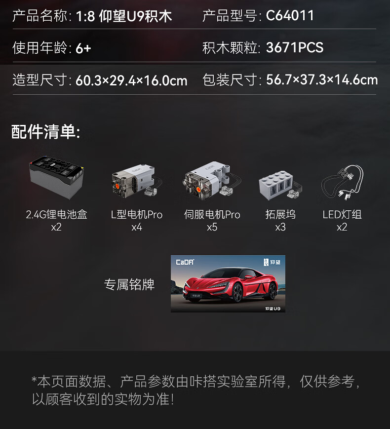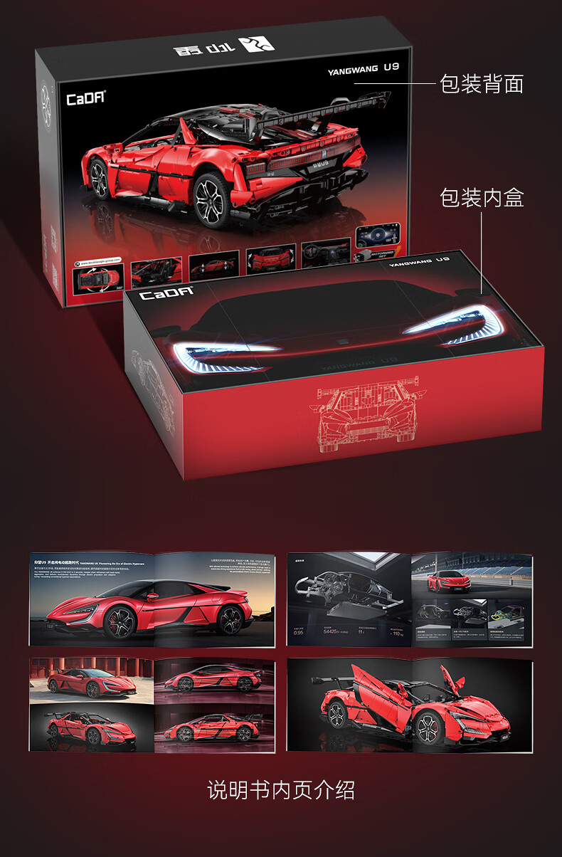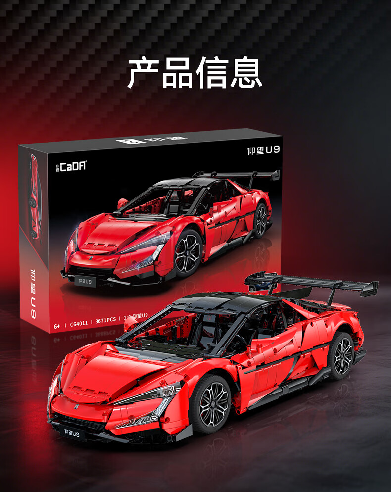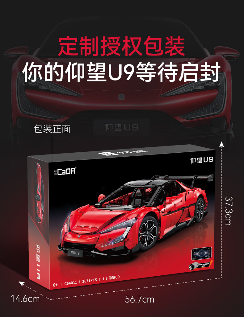 咔搭 比亚迪仰望U9联名授权1:8积木跑车遥控拼装跑车模型摆件生日礼物 1:20仰望u9遥控+APP操作