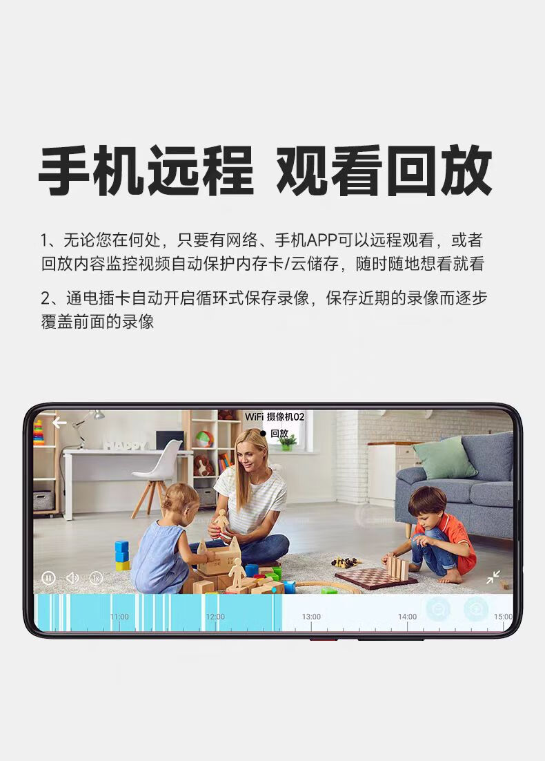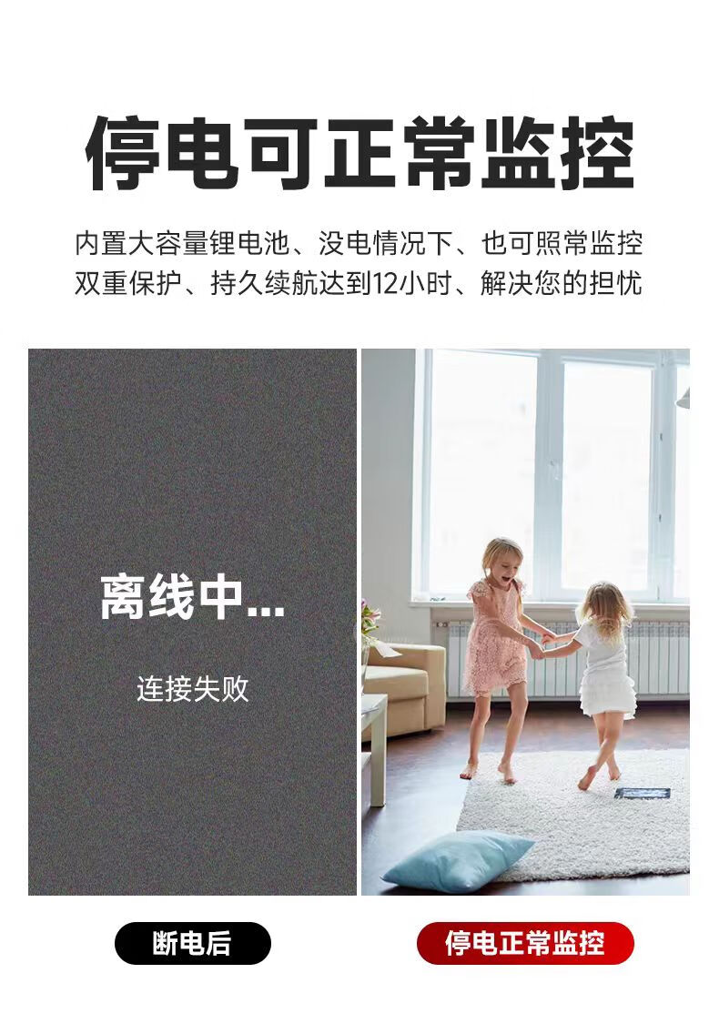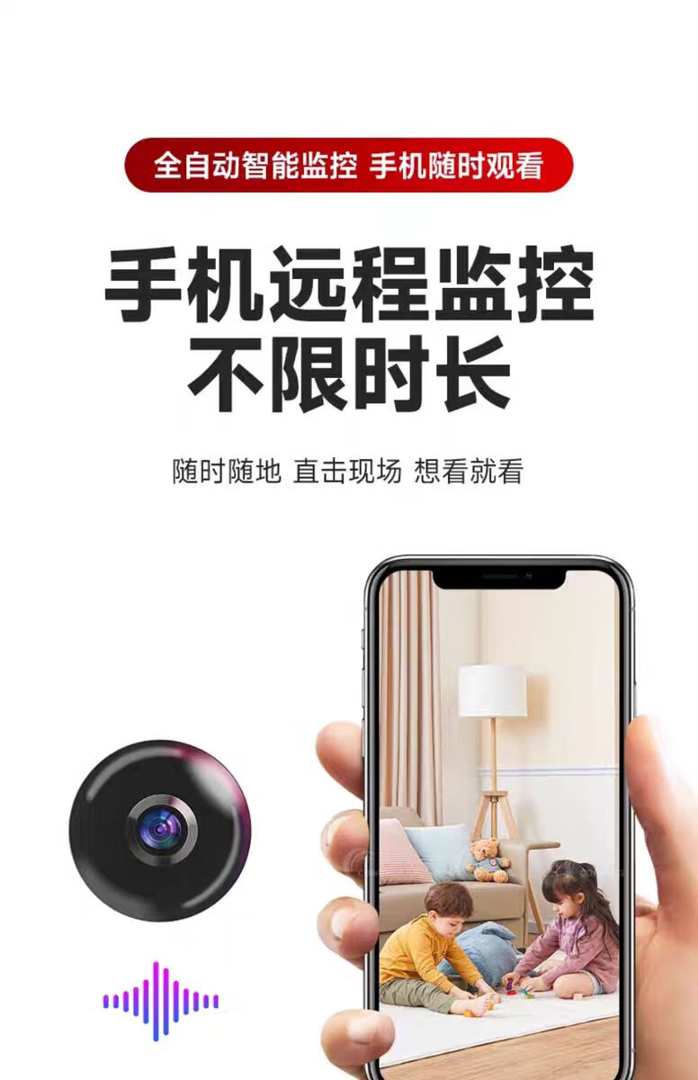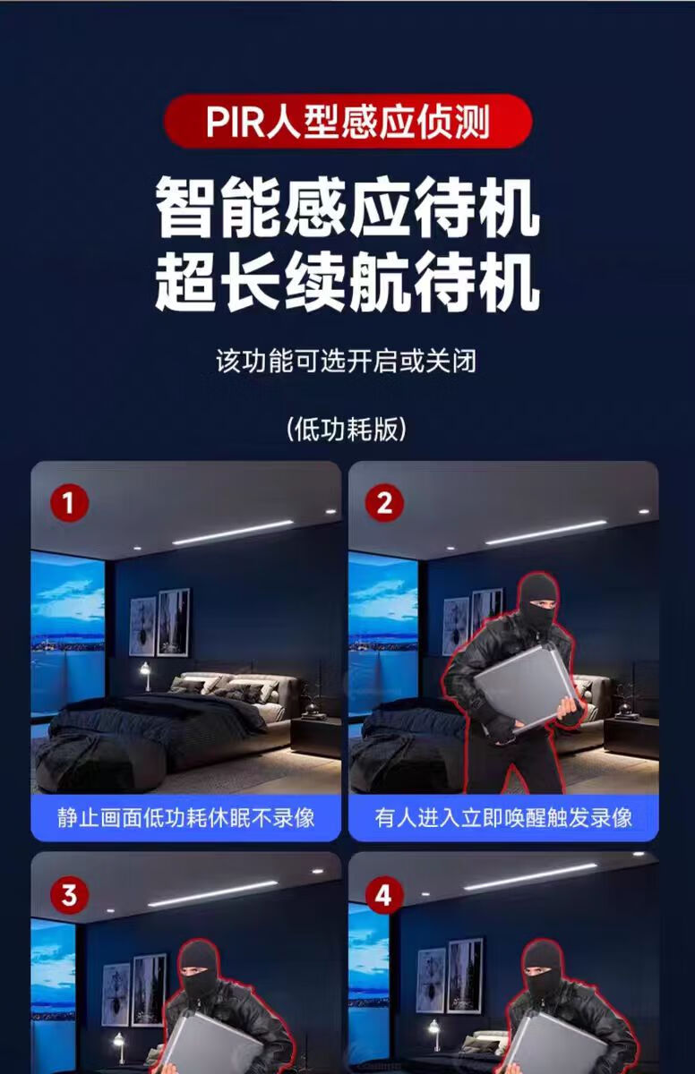 无需插电监控摄像头连手机远程超清夜视360度无死角循环录像无光 黑色【24小时手机随时观看】 256g循环录像