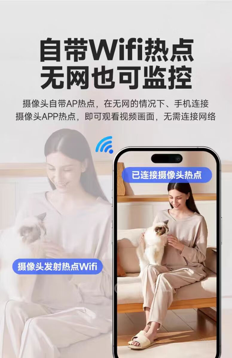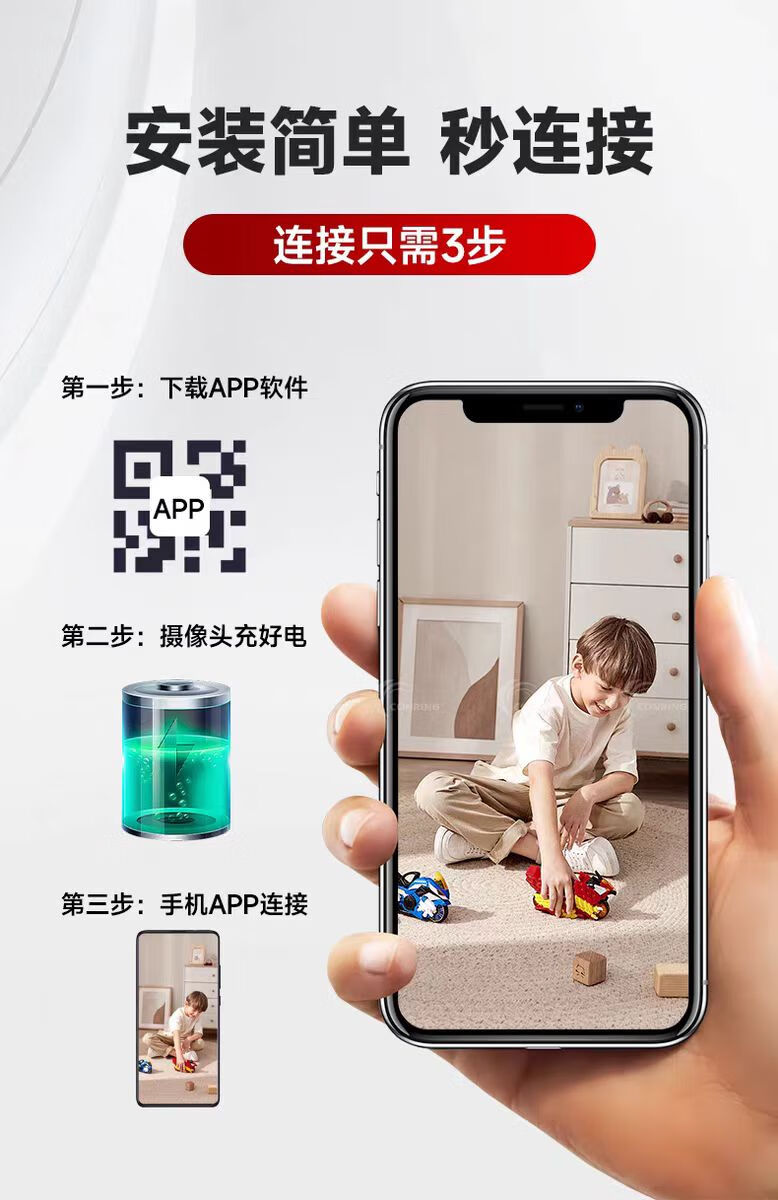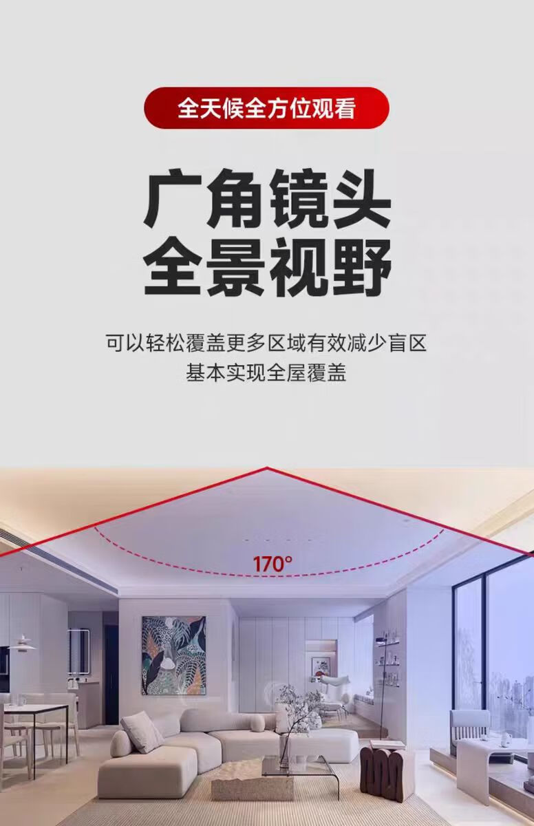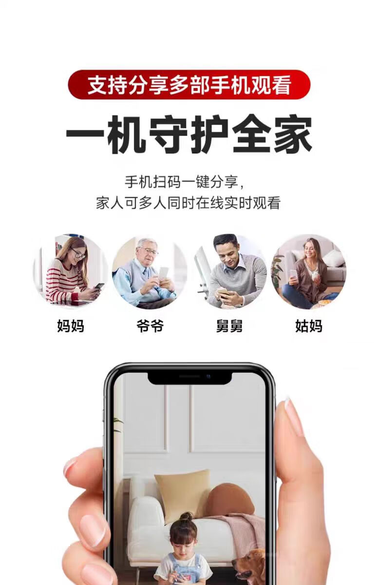 无需插电监控摄像头连手机远程超清夜视360度无死角循环录像无光 黑色【24小时手机随时观看】 256g循环录像