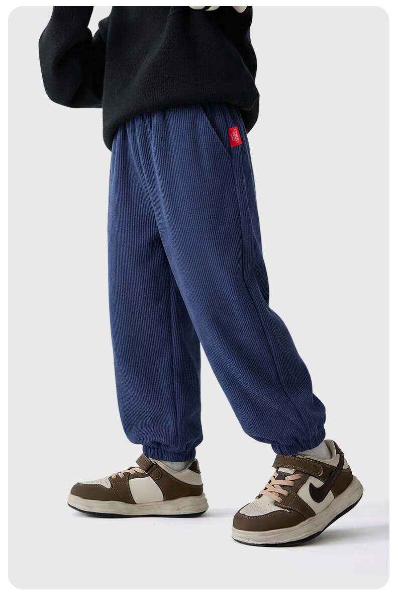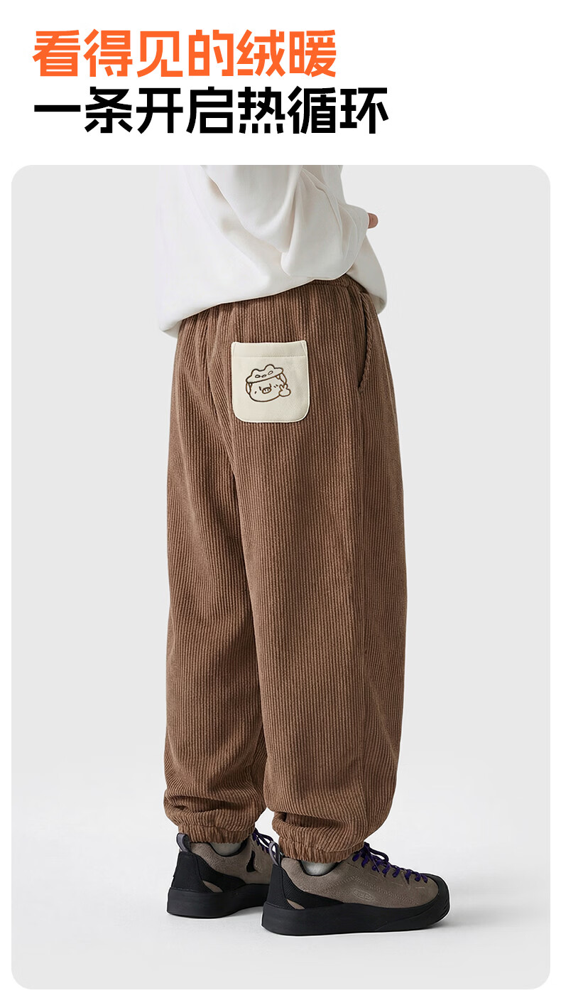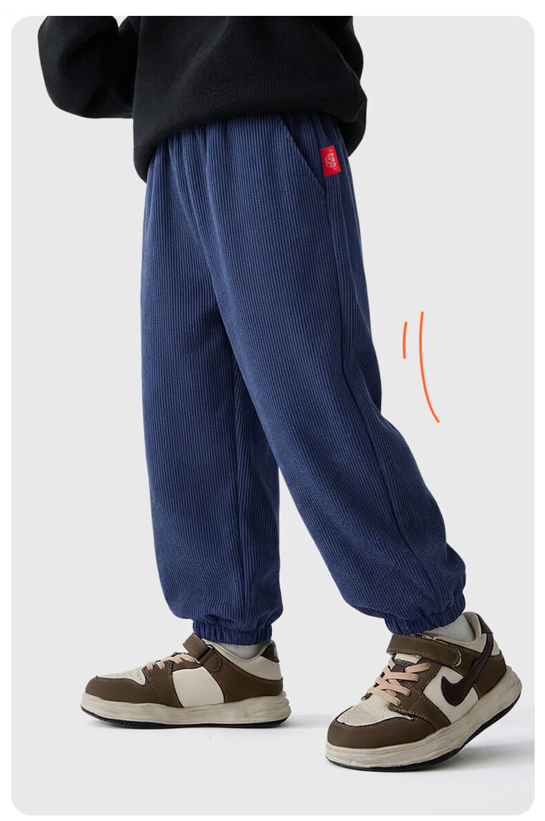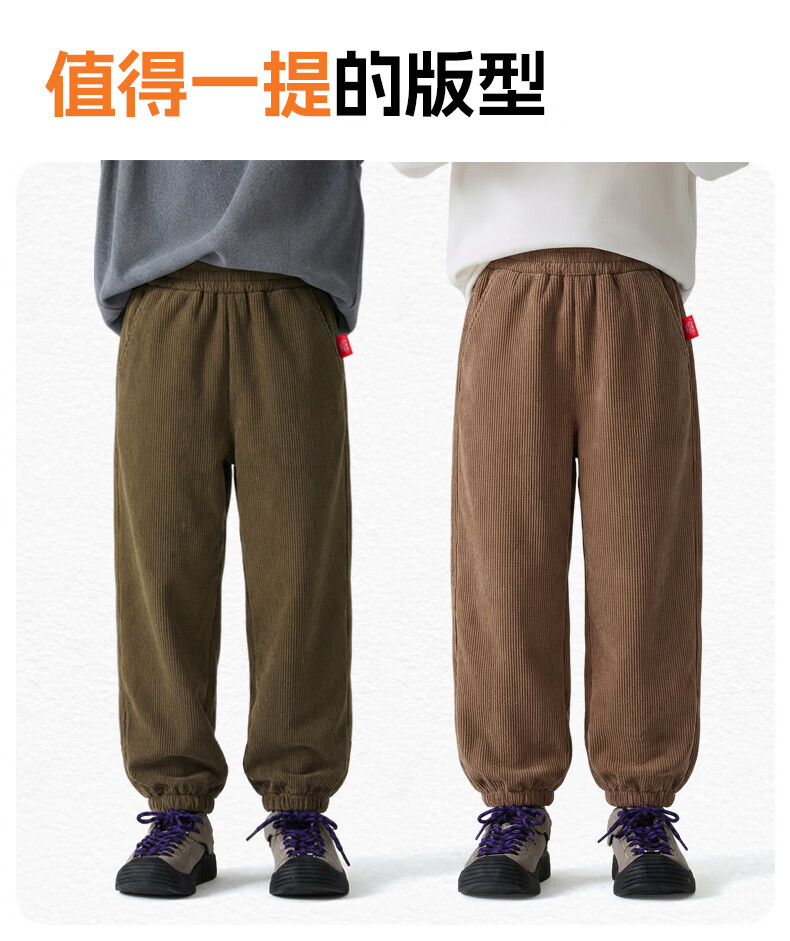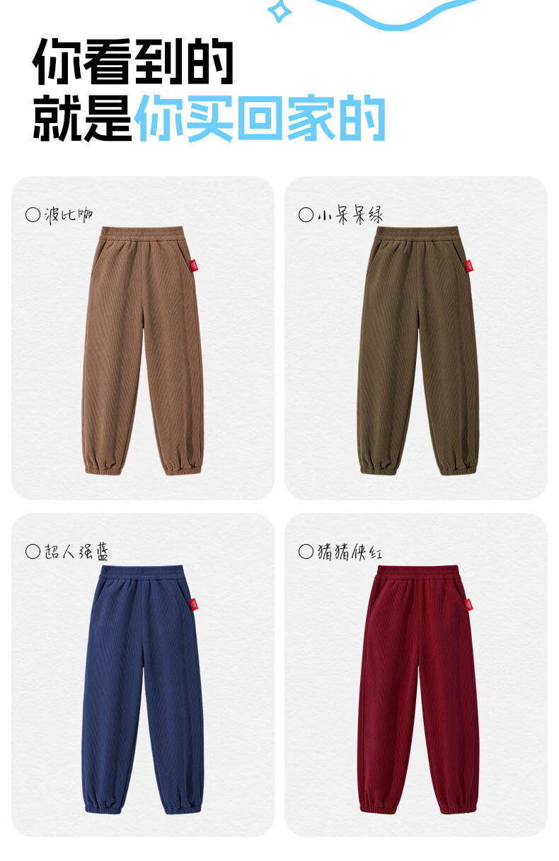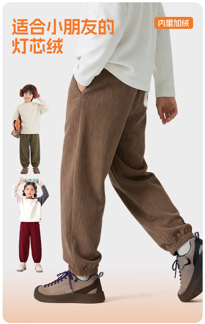 猪猪侠(GG·BOND)儿童加绒灯芯绒冬季加厚女童红色一体绒保暖裤男童运动休闲长裤 猪猪侠红 90