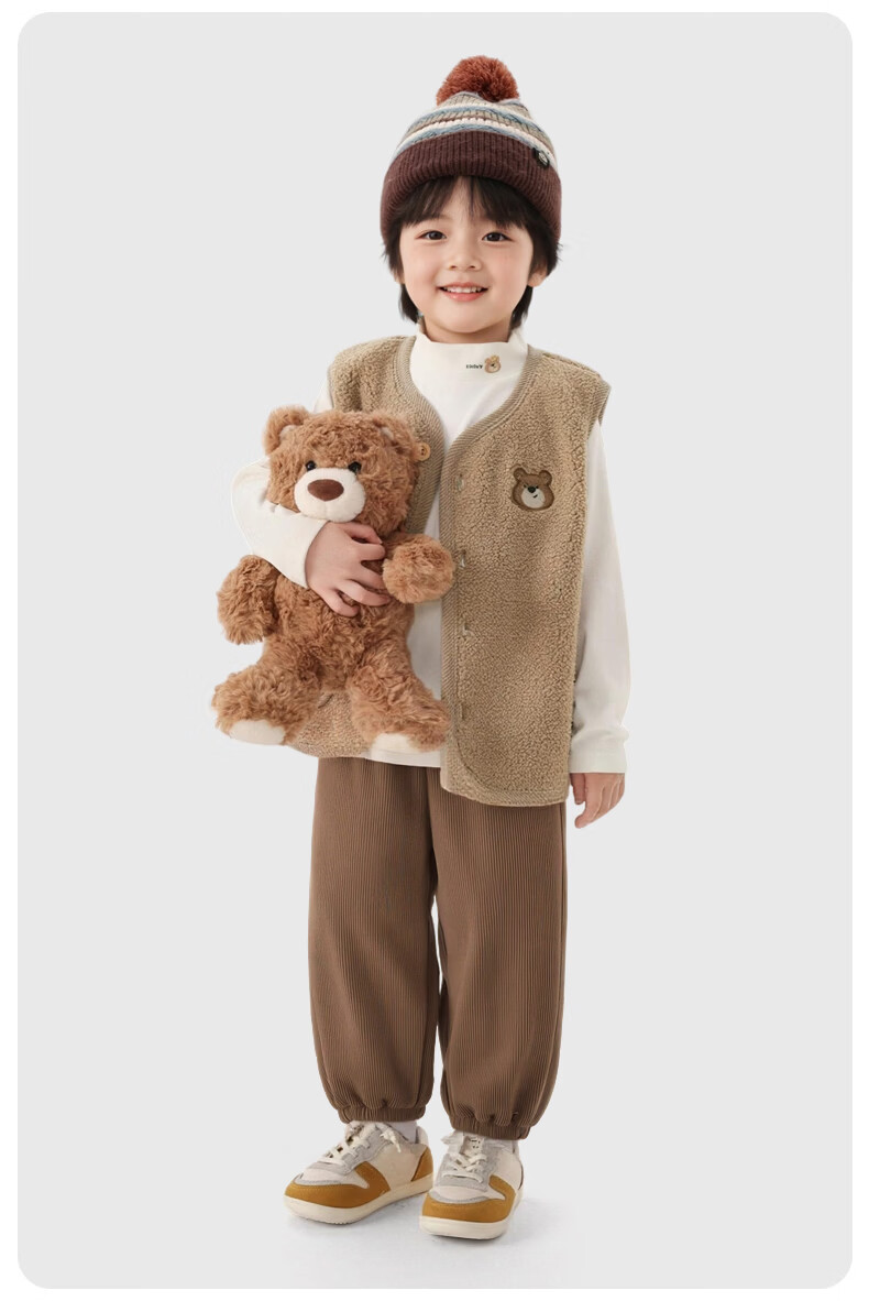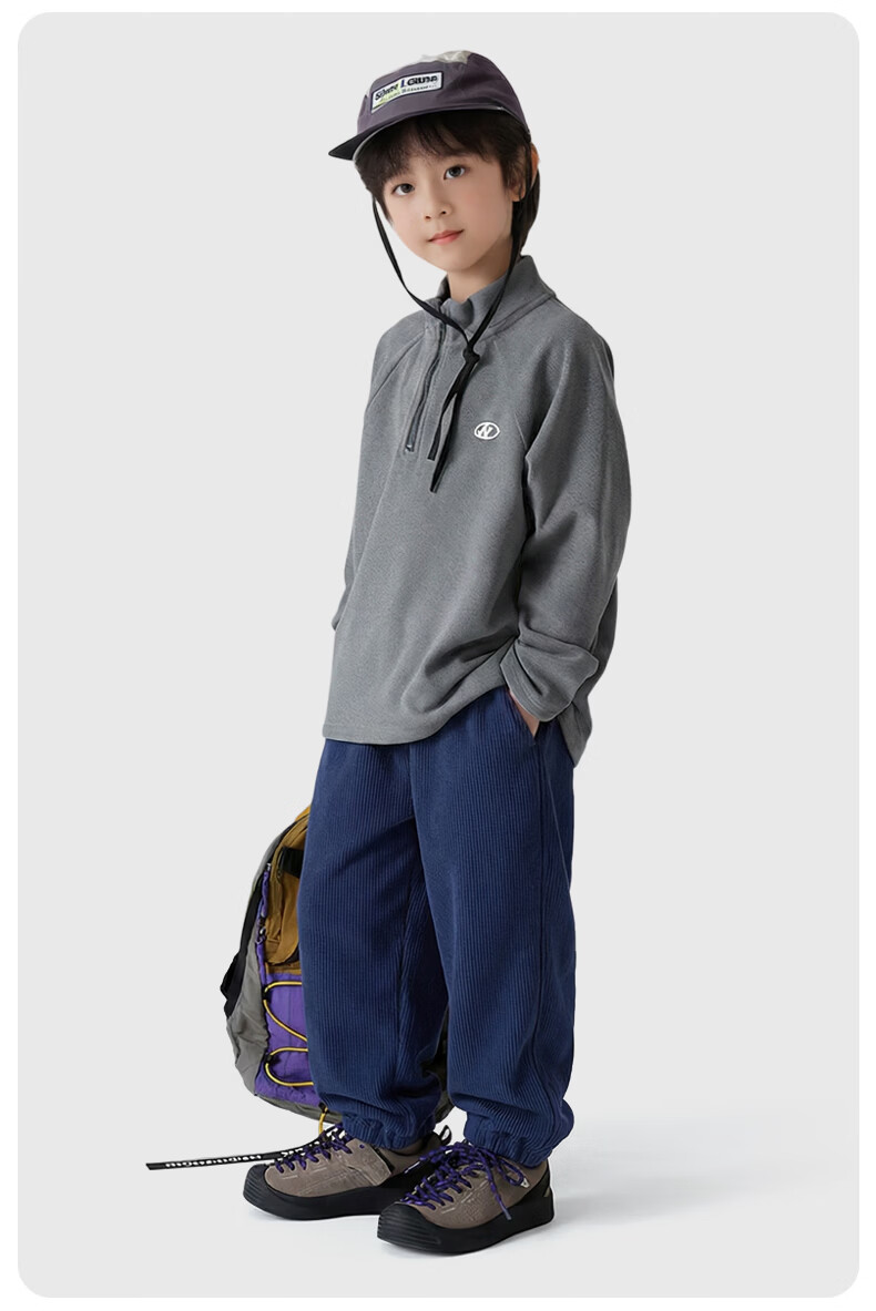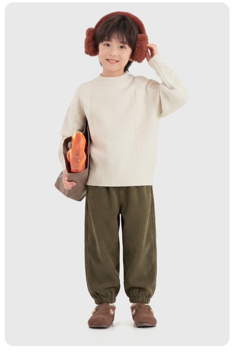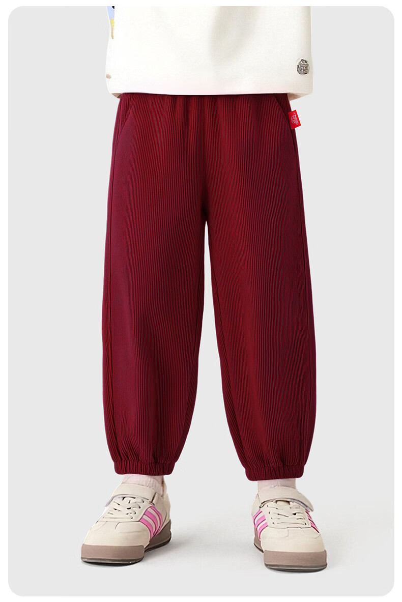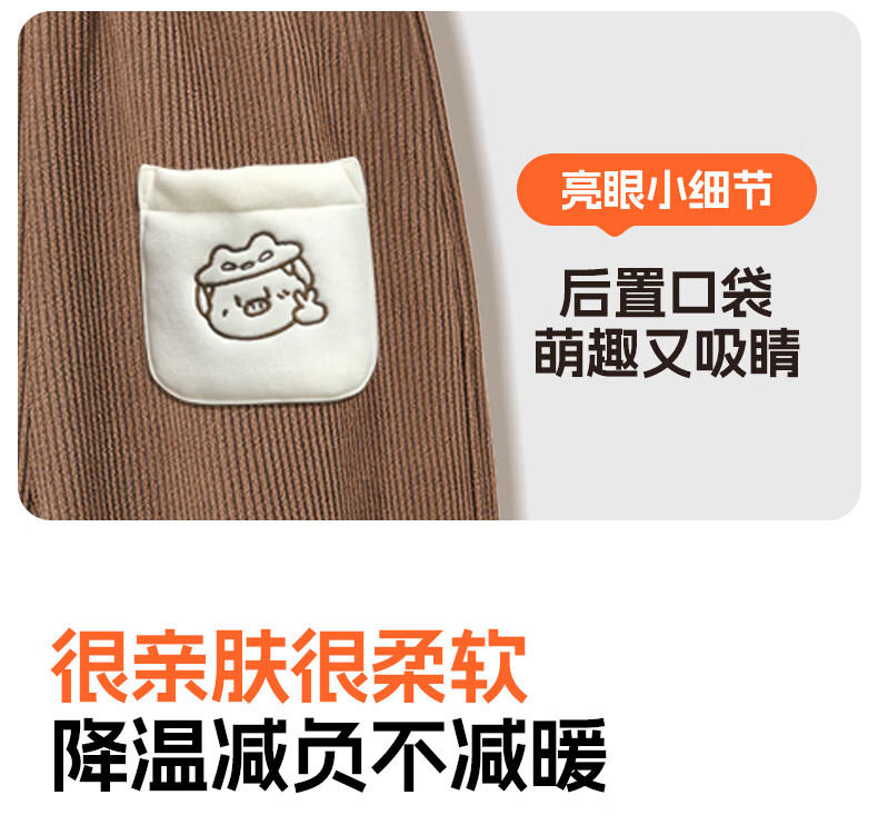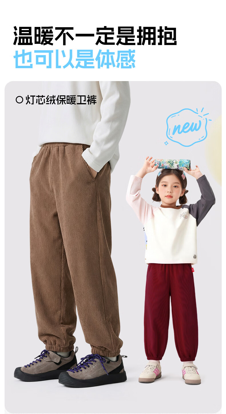 猪猪侠(GG·BOND)儿童加绒灯芯绒冬季加厚女童红色一体绒保暖裤男童运动休闲长裤 猪猪侠红 90