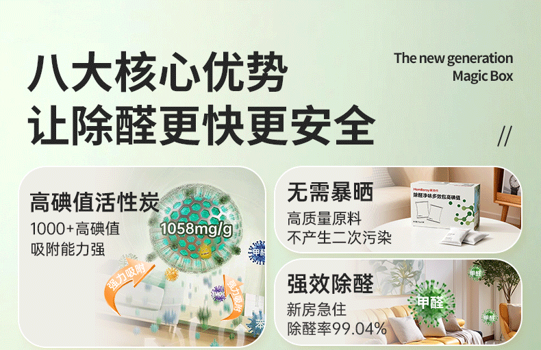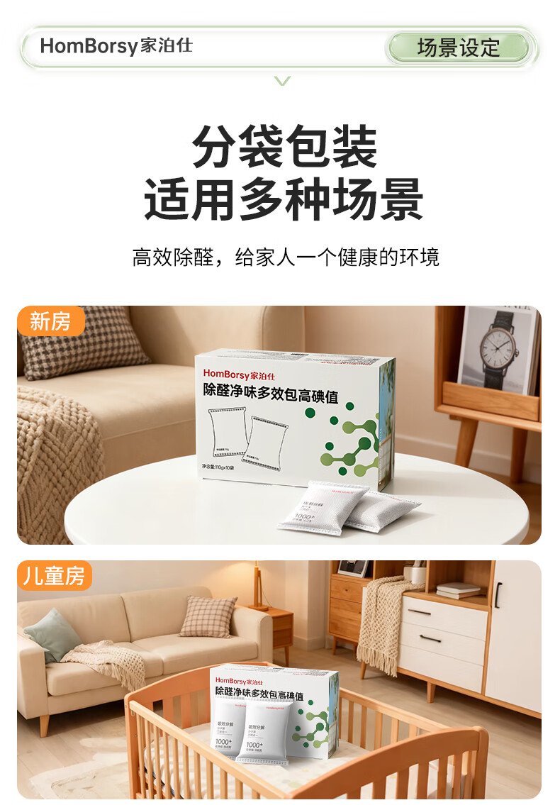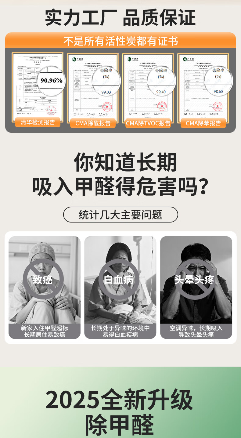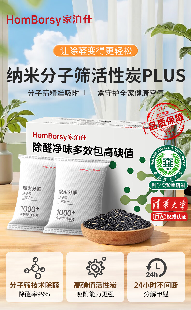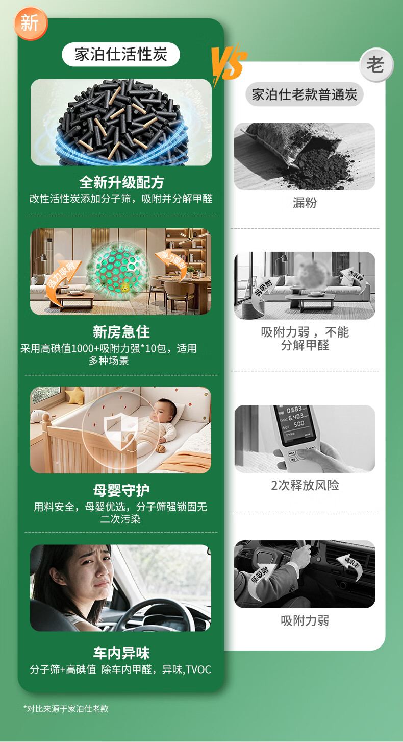 家泊仕除甲醛活性炭吸附分子筛去甲醛新房急入住家用装修除异味大牌炭包 10盒-100包|分子筛安心除醛40㎡|1000+碘值