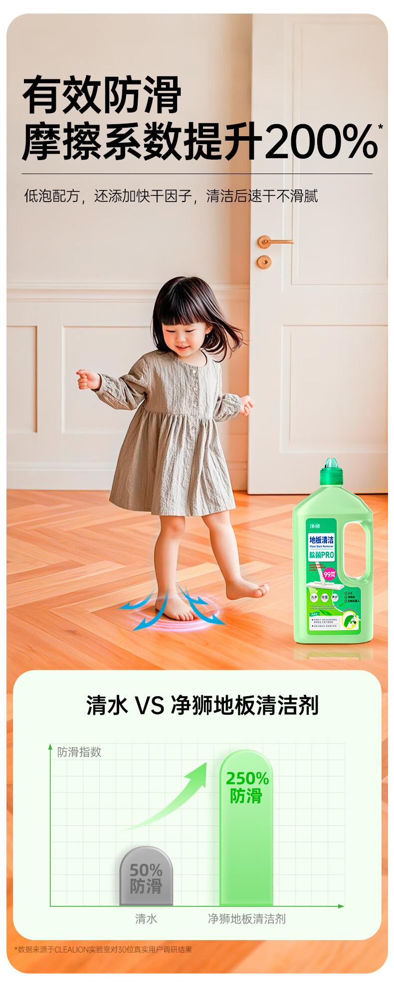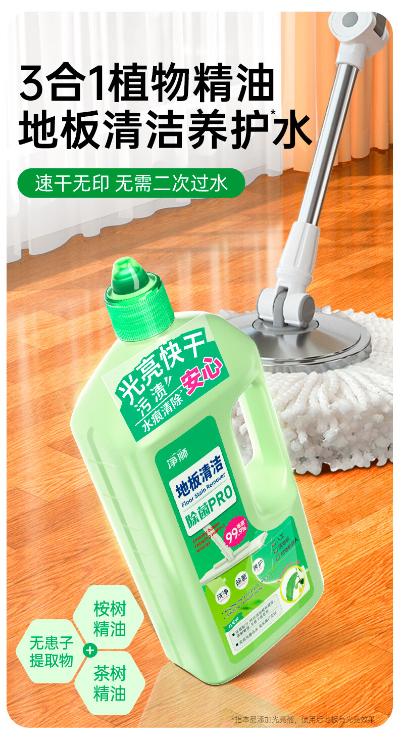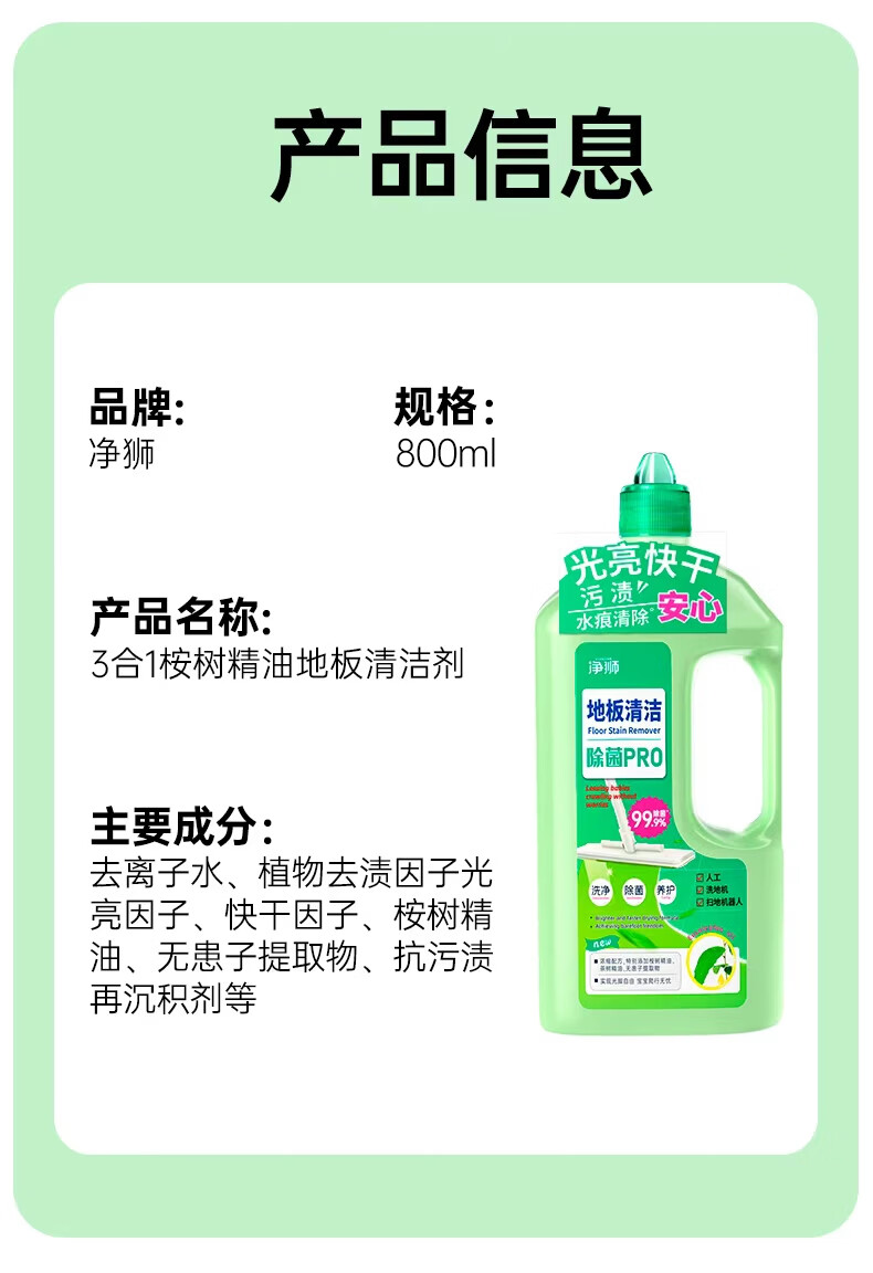 净狮(CLEALION)地板清洁剂木地板瓷砖地板强力去污剂家居去污去油清洁光亮保养 3瓶 800ml*3