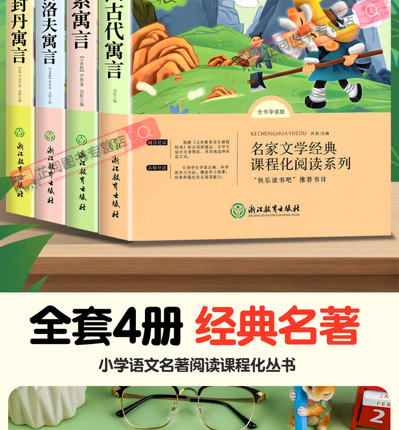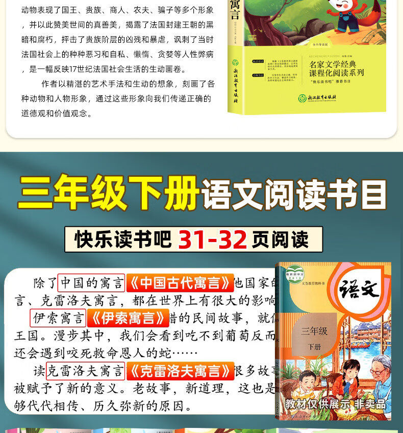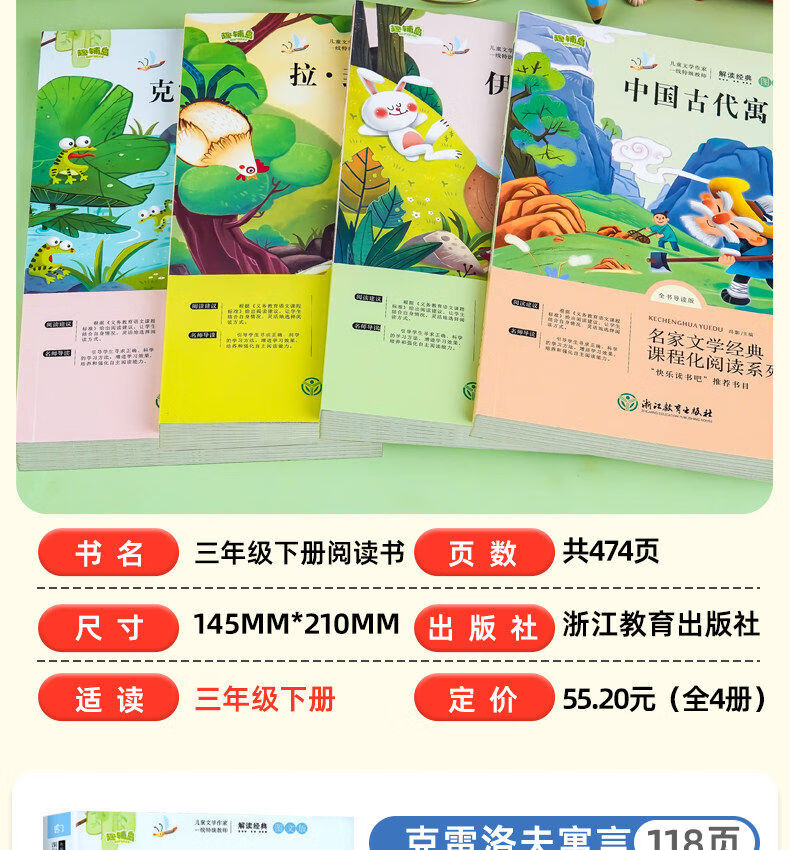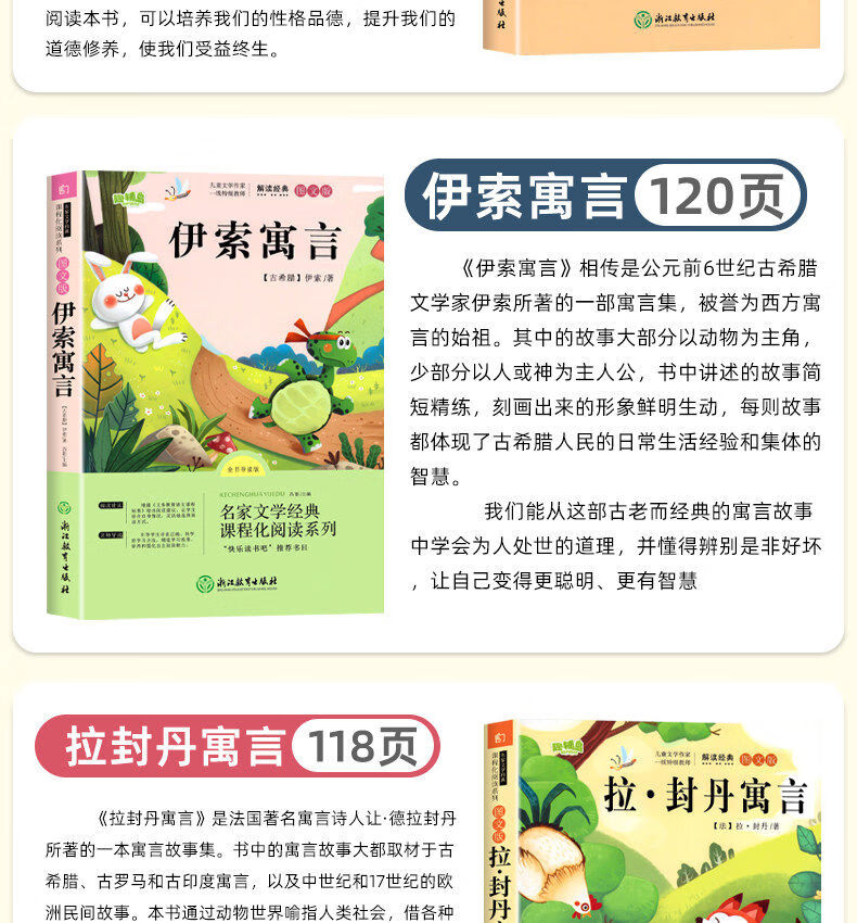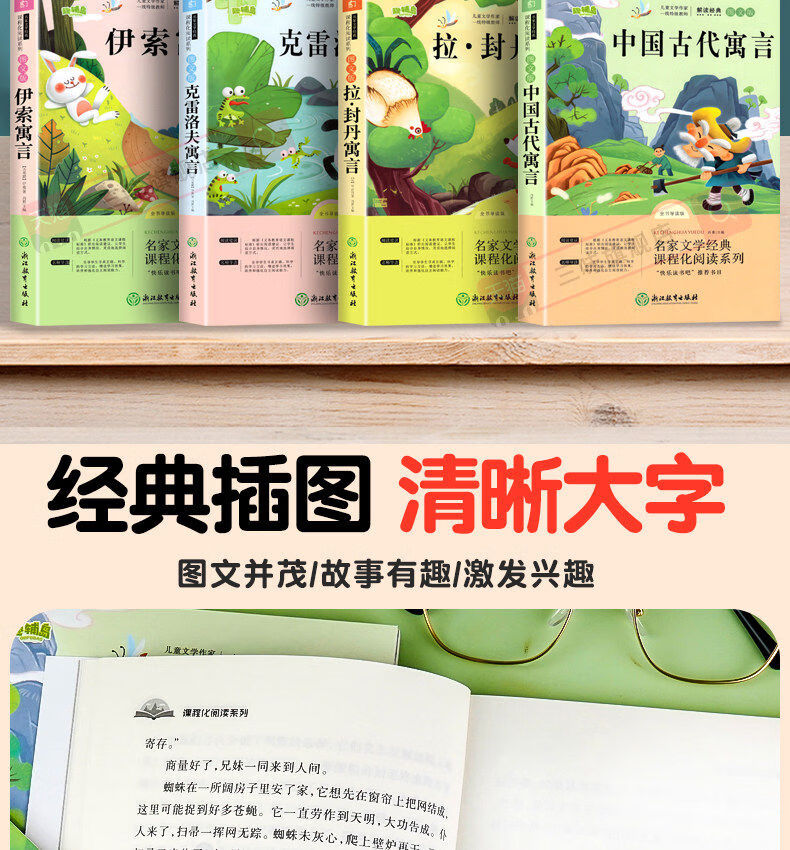 伊索寓言快乐读书吧三年级下册中国古代寓言故事克雷洛夫寓言拉封丹寓言学生必读经典书目 【全4册】快乐读书吧三年级下册
