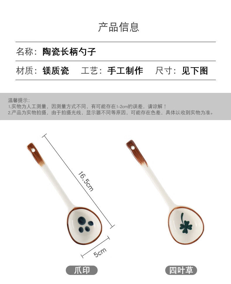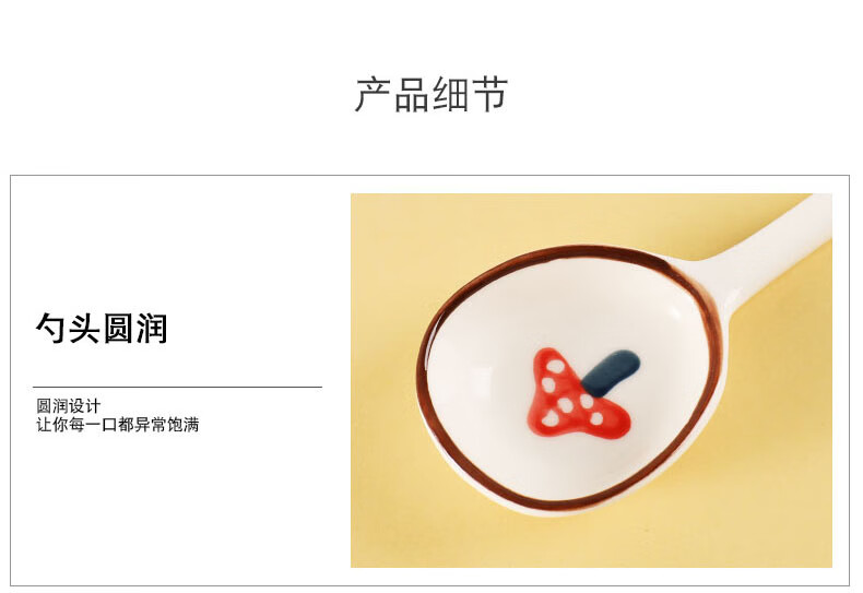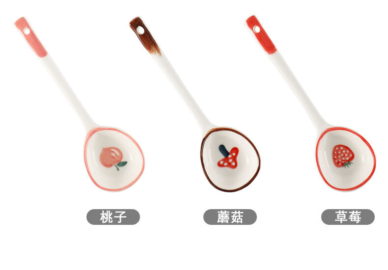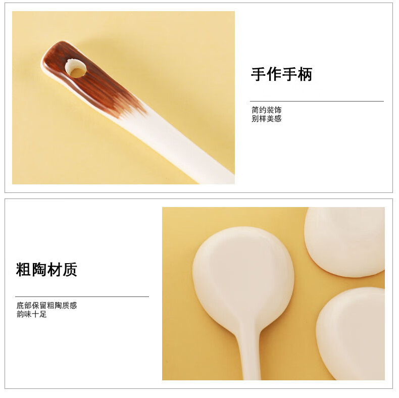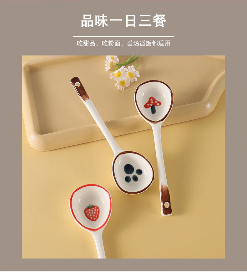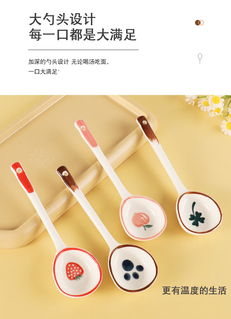 PJ陶瓷勺子家用小汤勺长柄日式高颜值喝汤专用圆头盛汤舀粥调羹勺 混色5个装