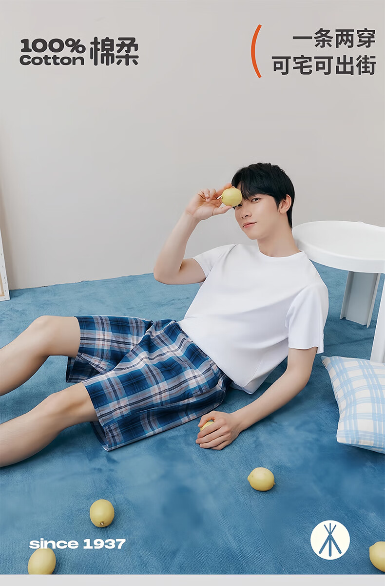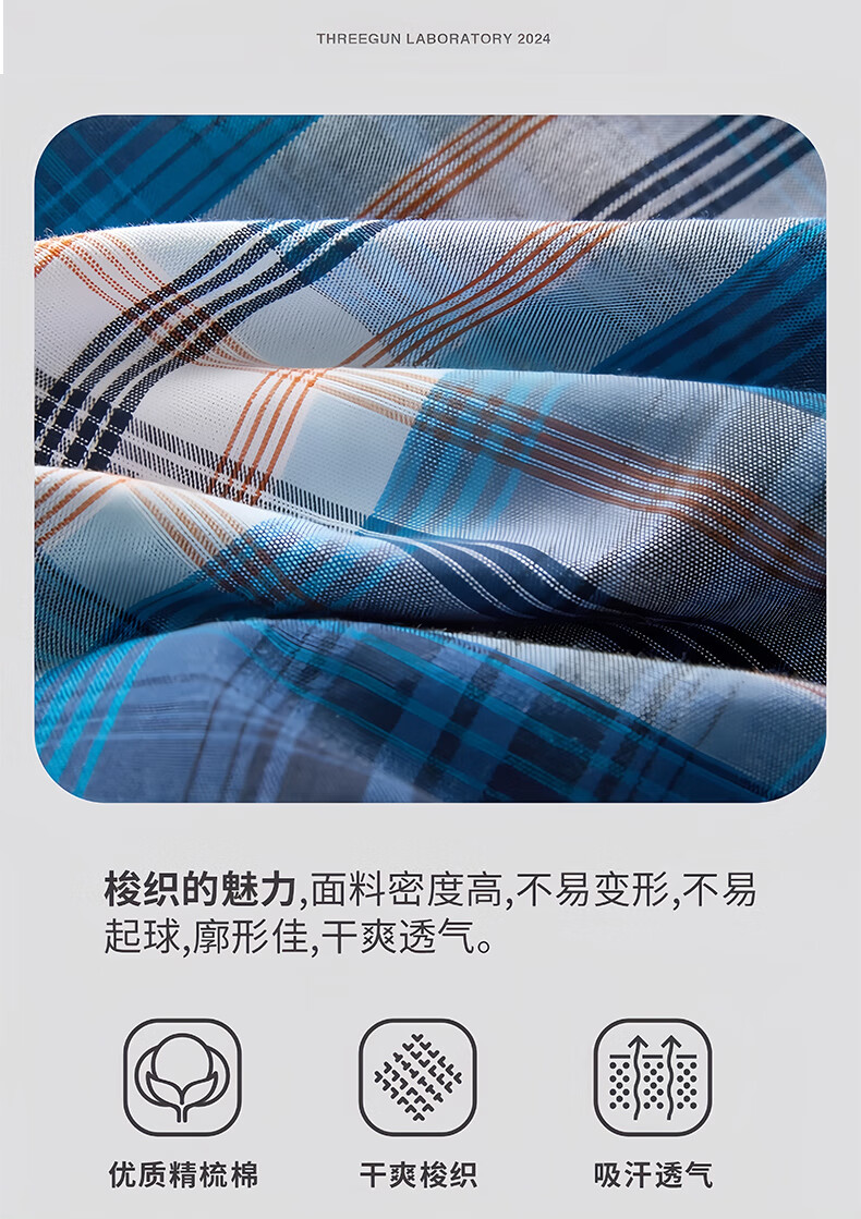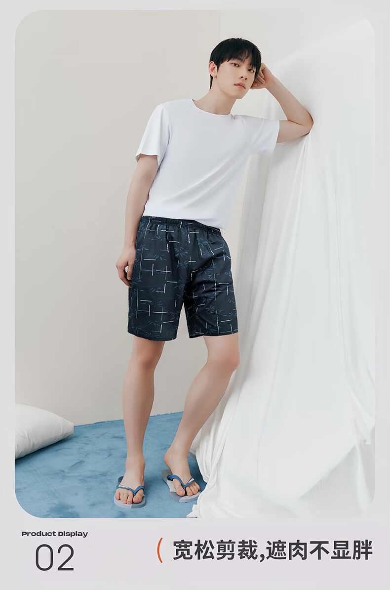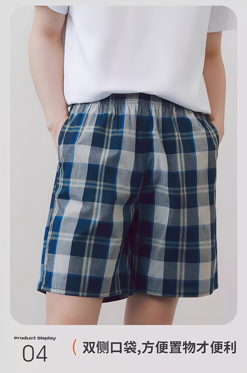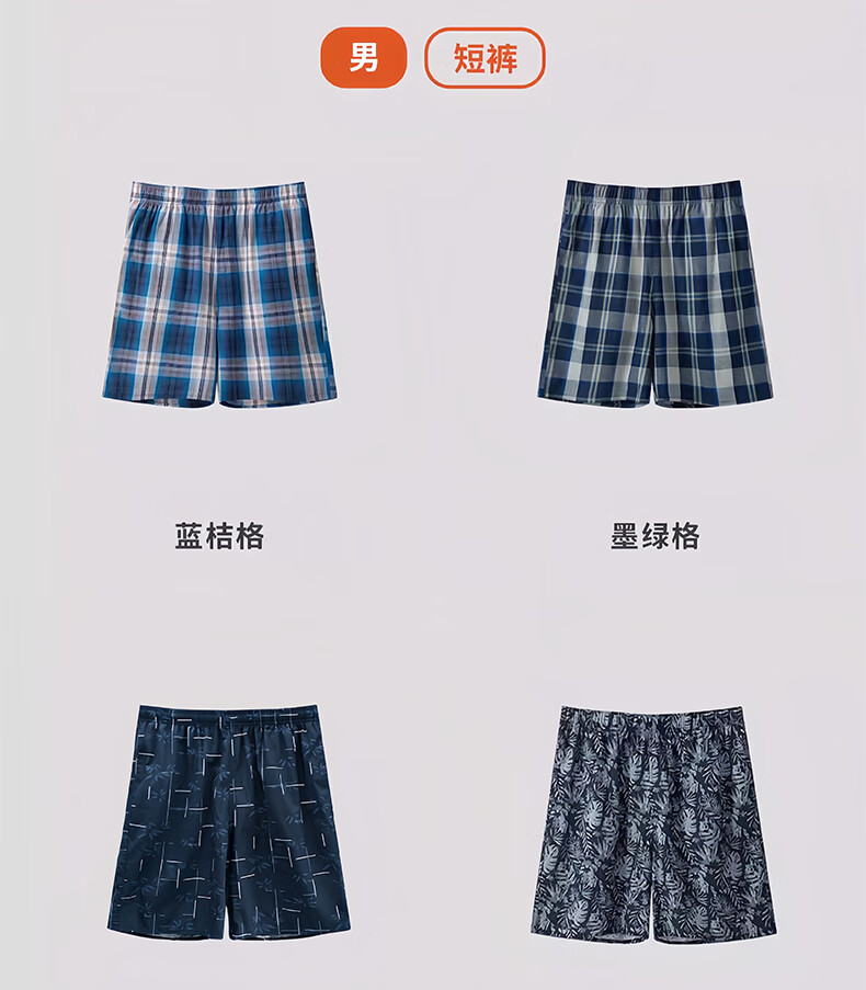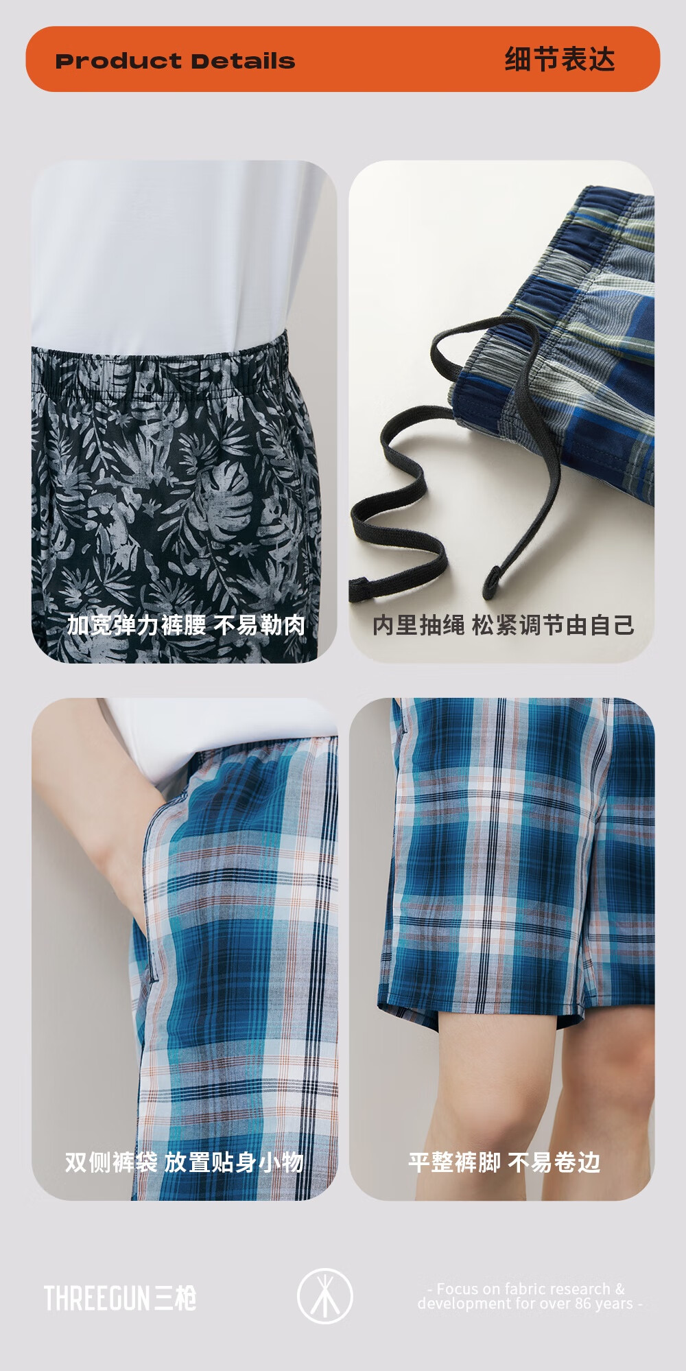 三枪夏季棉质机织布宽松中腰大码男士休闲短裤家居短裤大裤衩沙滩裤 迷幻几何 4XL /190