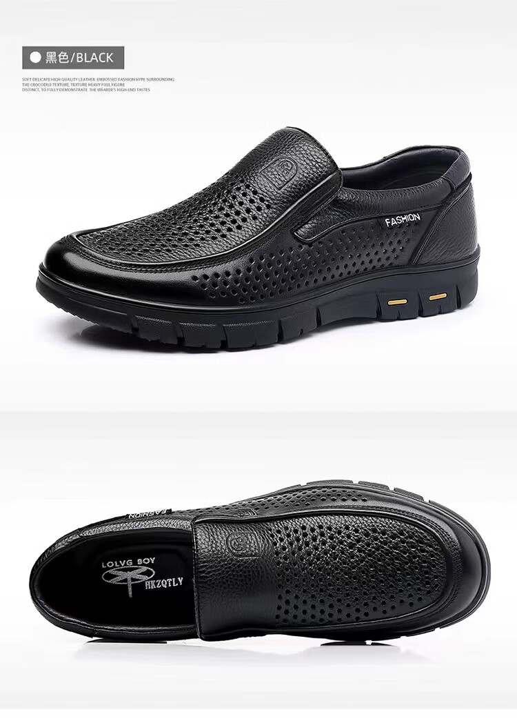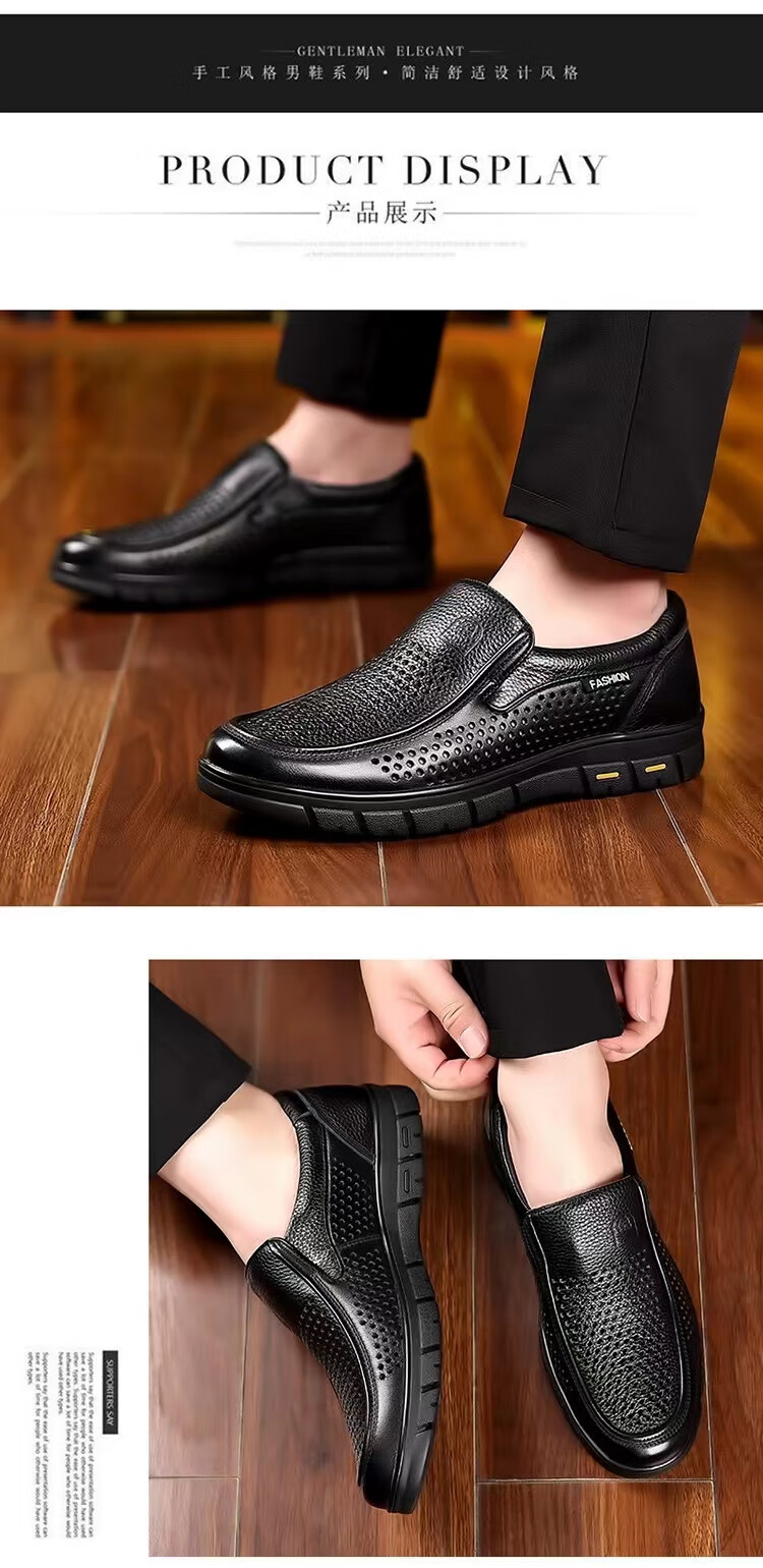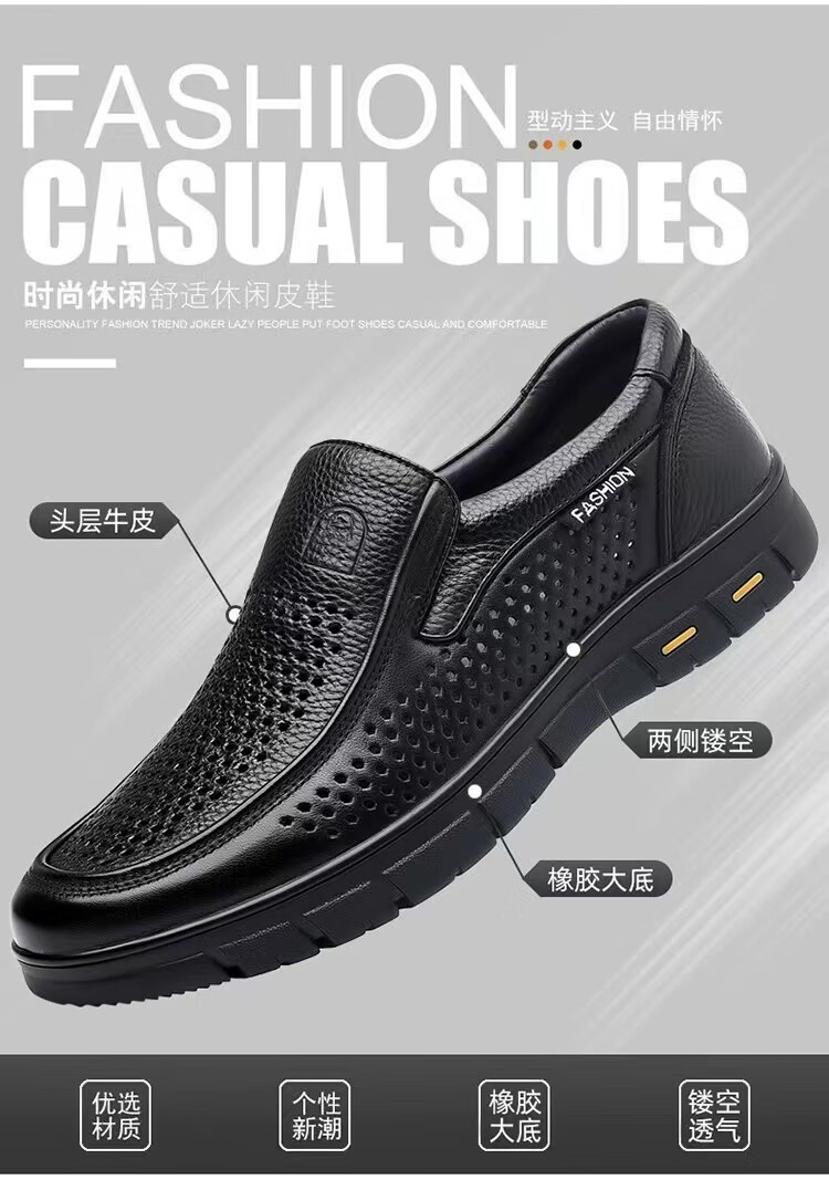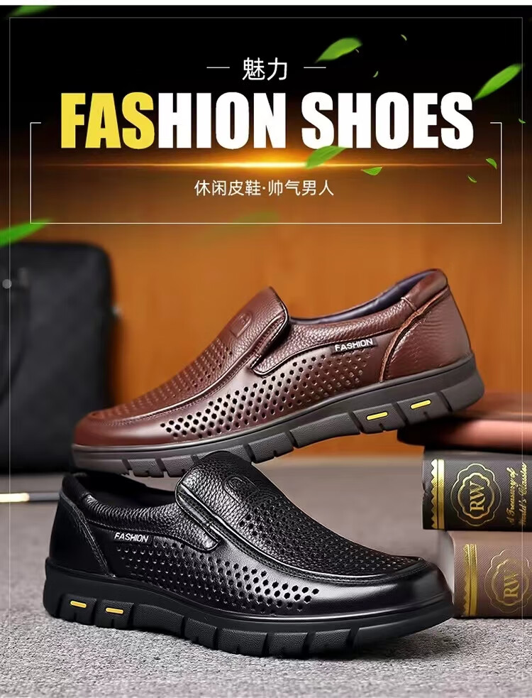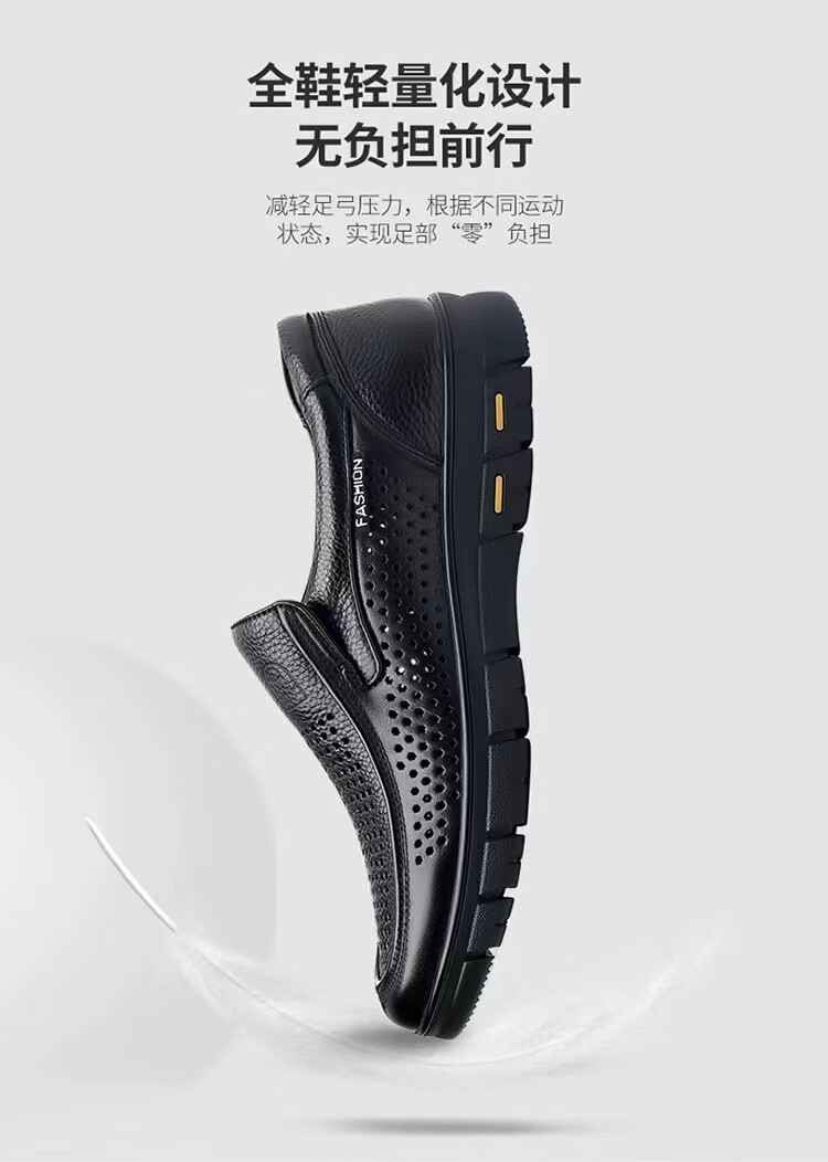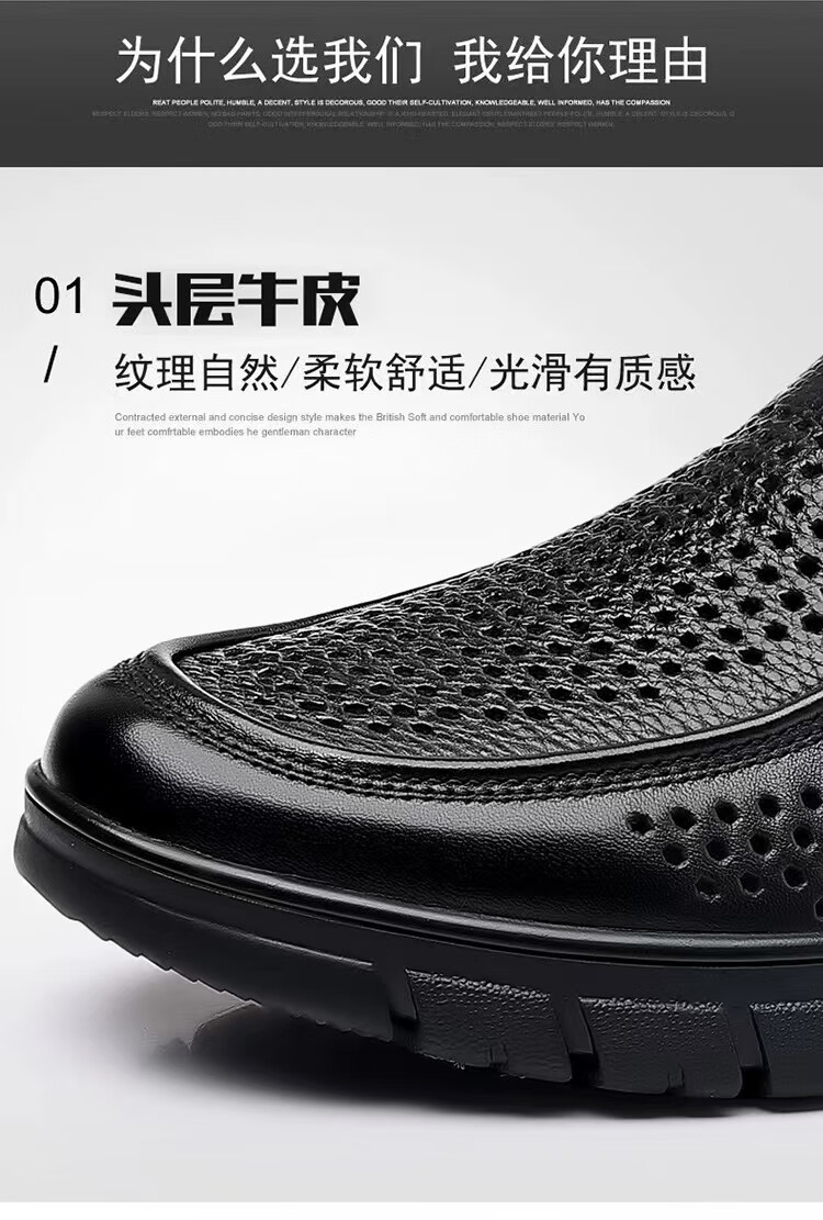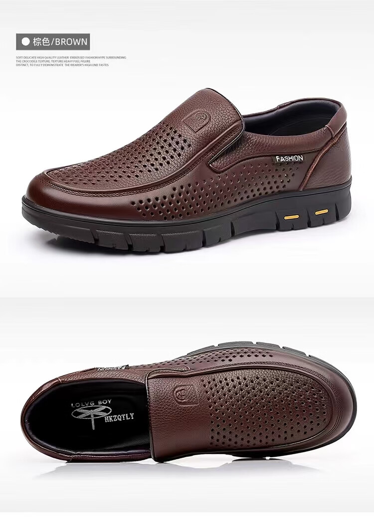 皮鞋男士夏季凉鞋镂空透气休闲鞋商务软底真皮牛皮洞洞爸爸防滑鞋 棕色 48 (290mm)