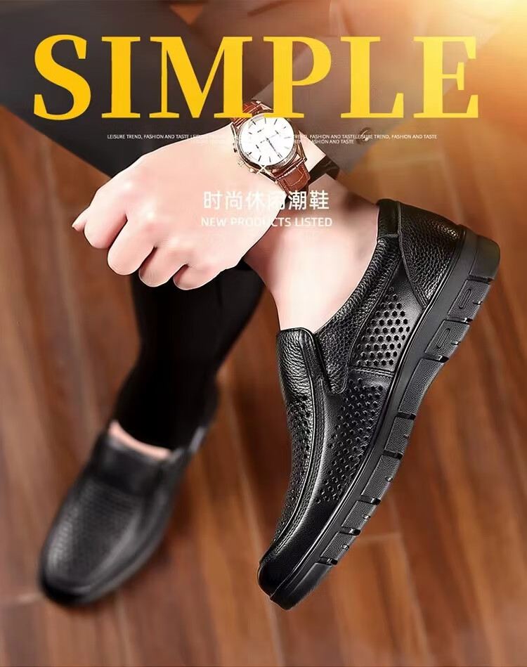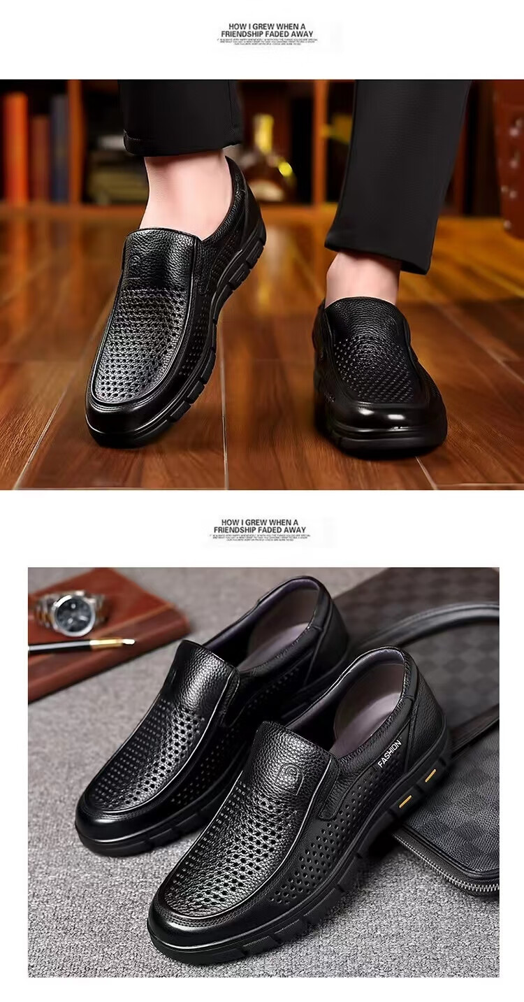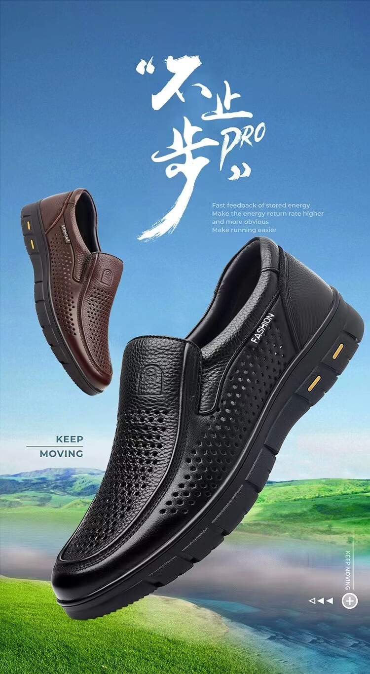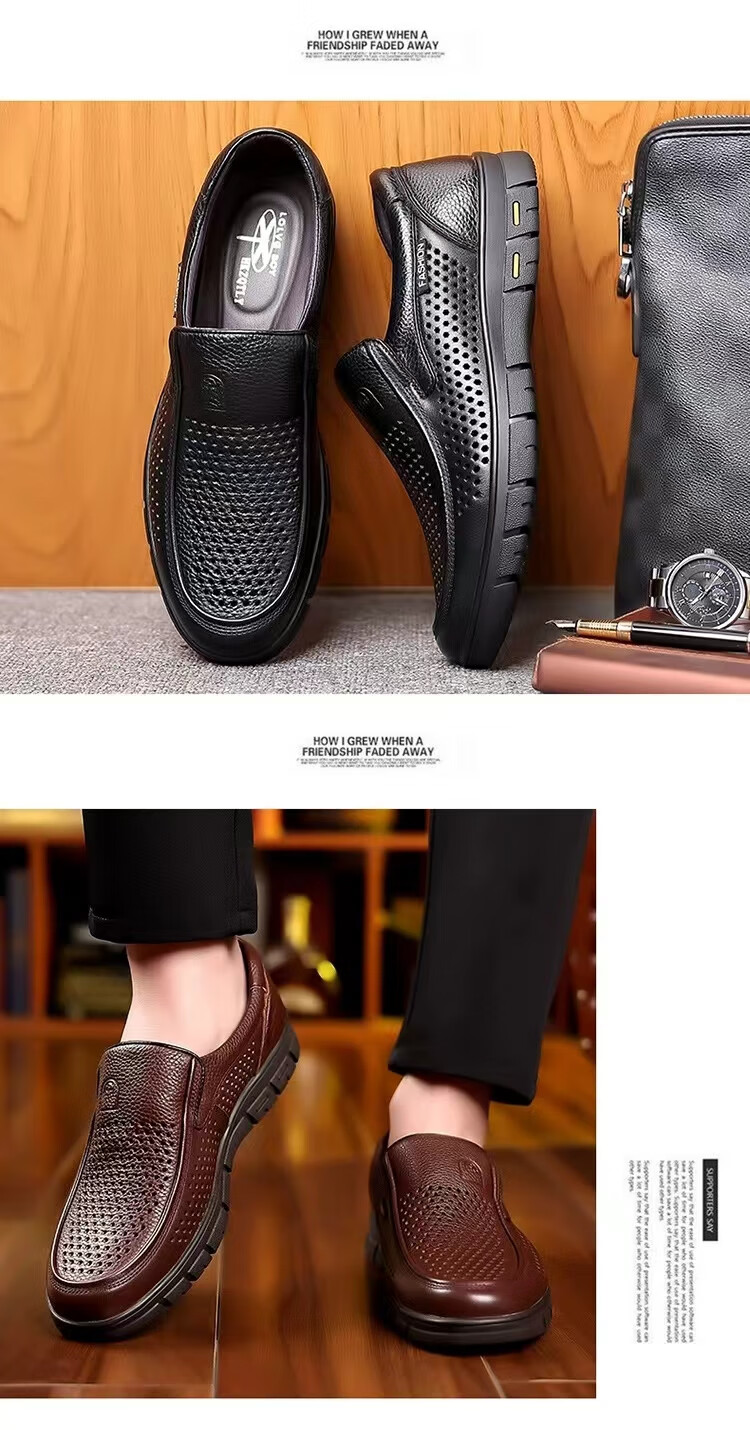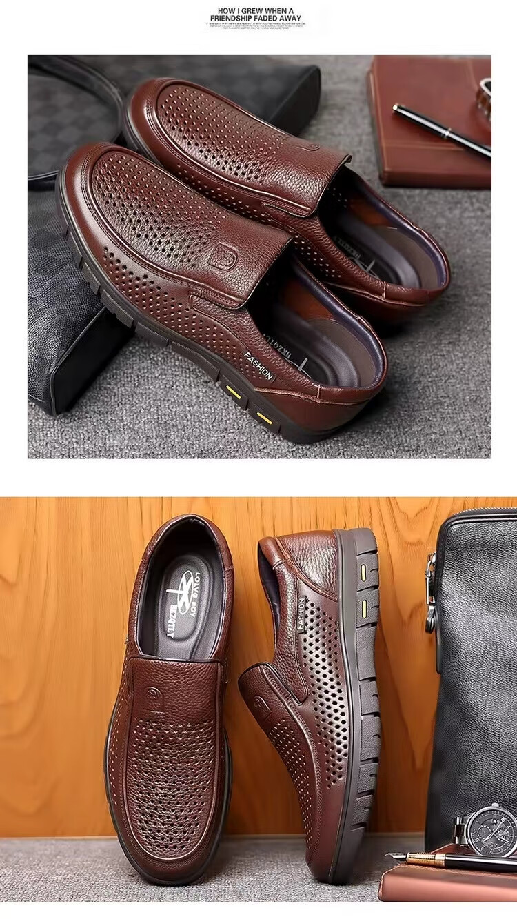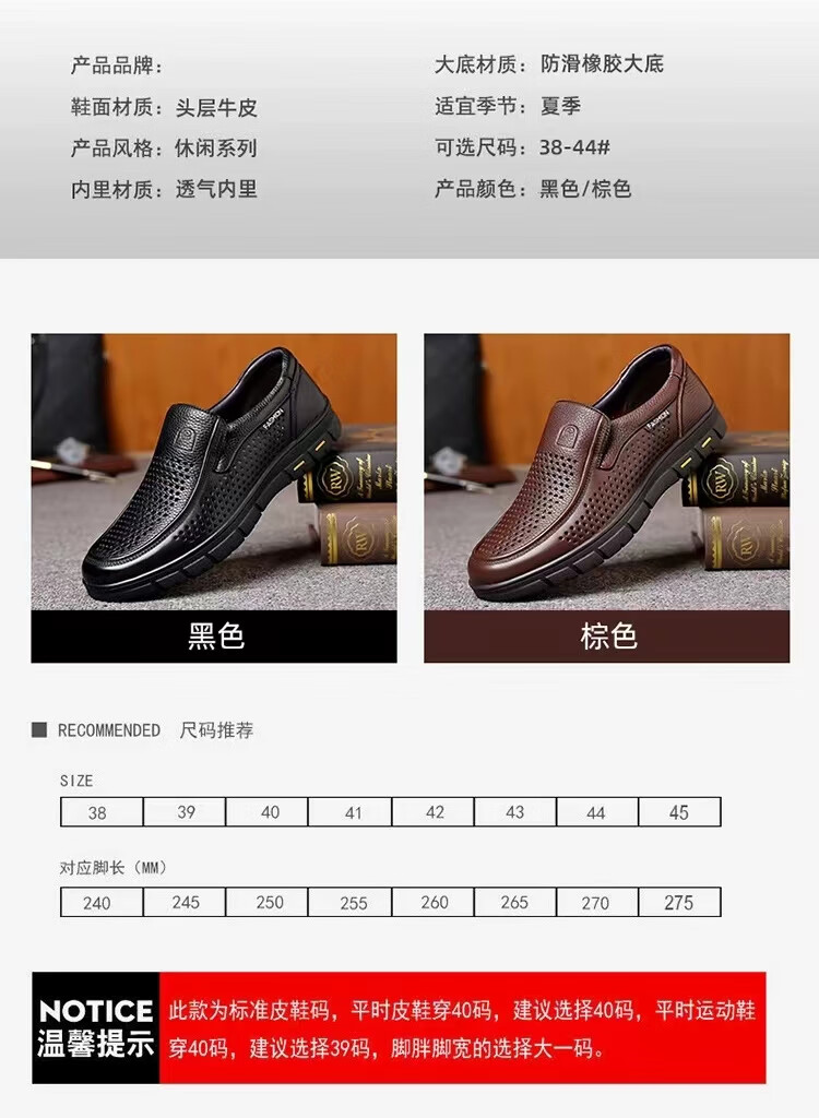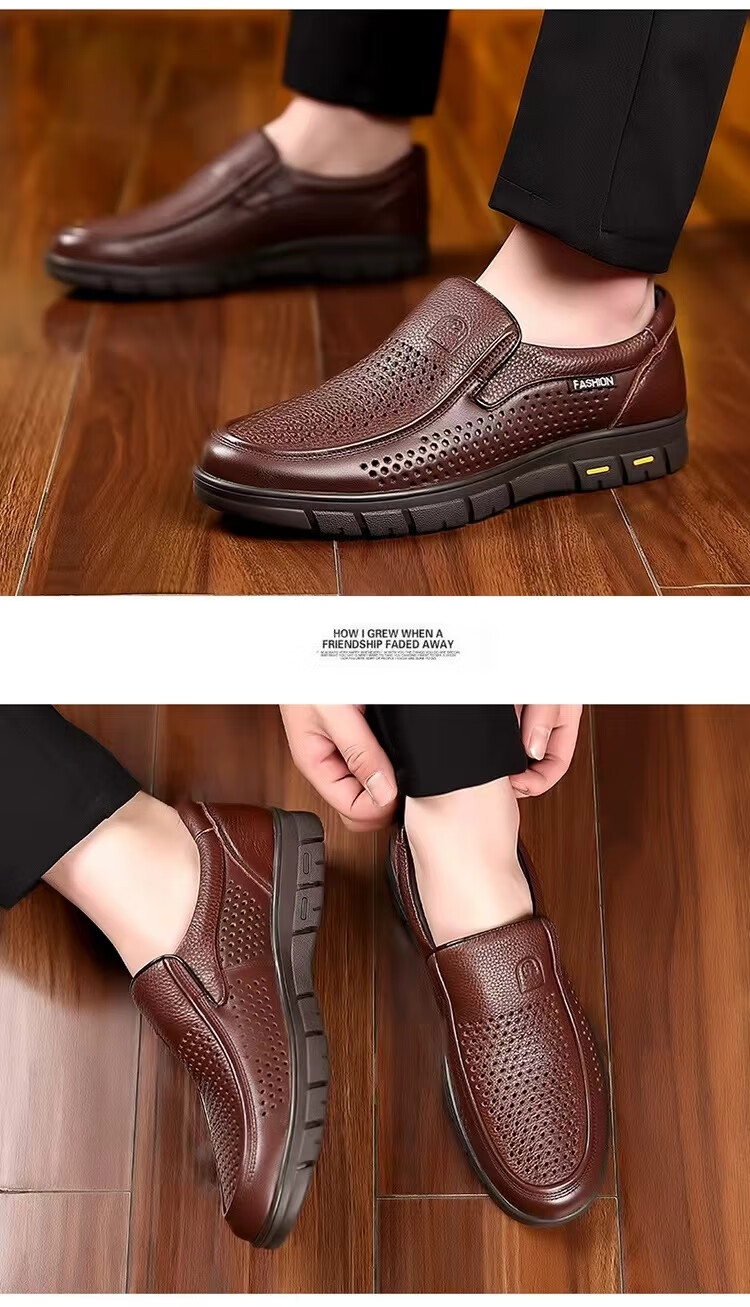 皮鞋男士夏季凉鞋镂空透气休闲鞋商务软底真皮牛皮洞洞爸爸防滑鞋 棕色 48 (290mm)