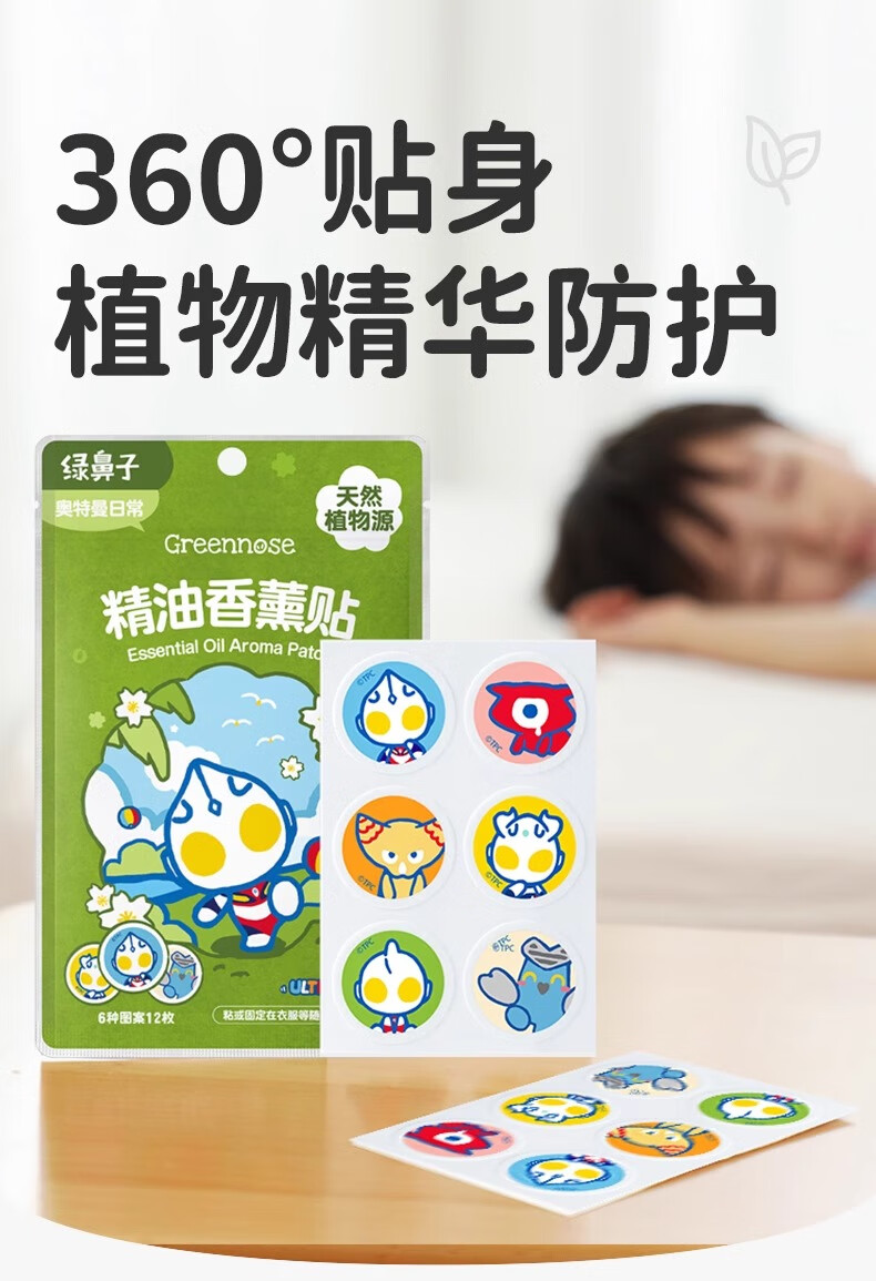 绿鼻子(green nose)植物精油防护贴儿童宝宝天然防护贴夏季户外防护送驱蚊贴驱蚊神器 梦幻独角兽 12贴 4包 12枚/包