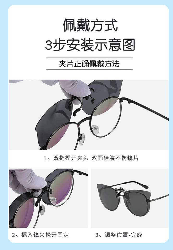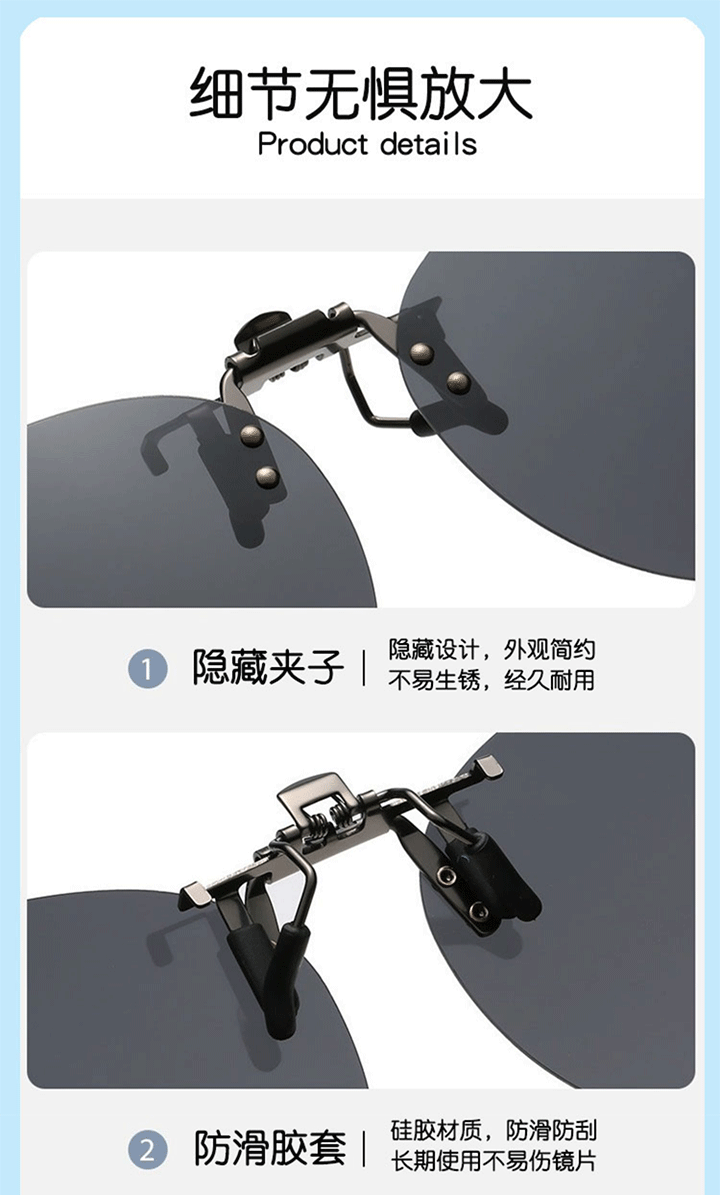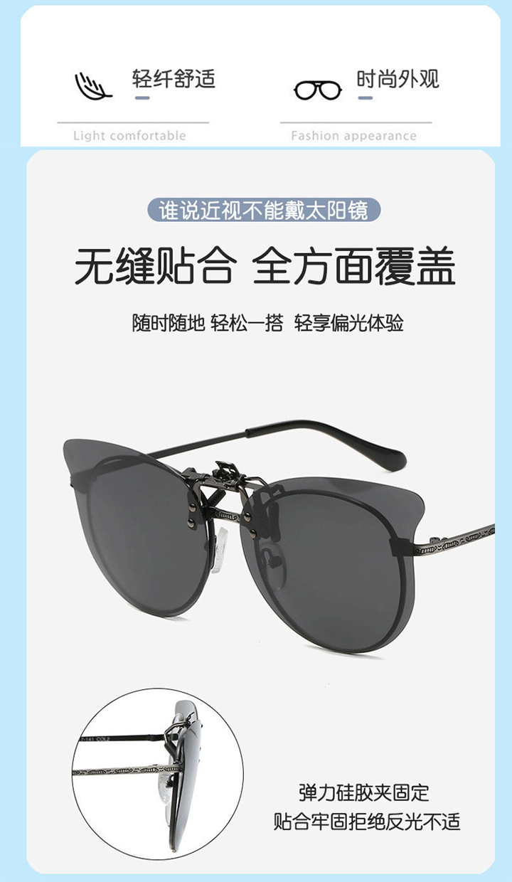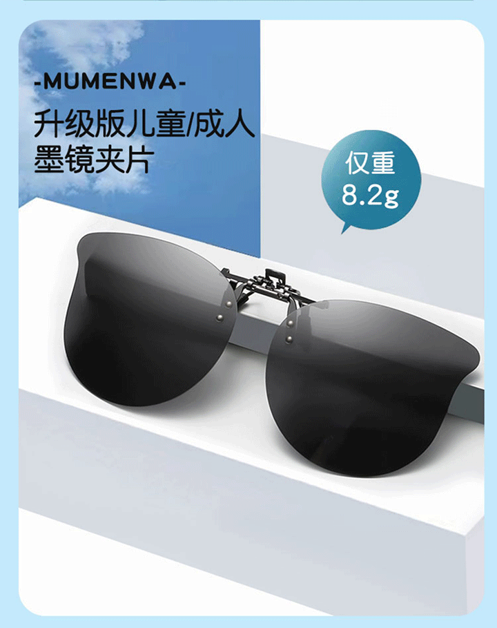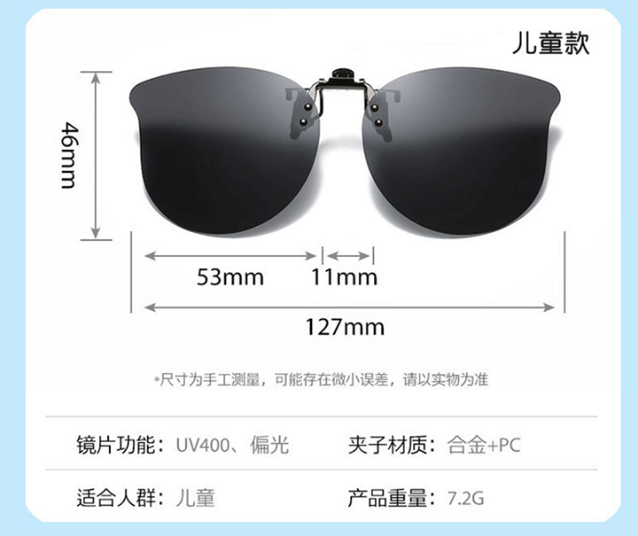 班杰尼儿童炫彩墨镜偏光防强光紫外线夹片式太阳镜遮阳近视夹片可上翻 灰色